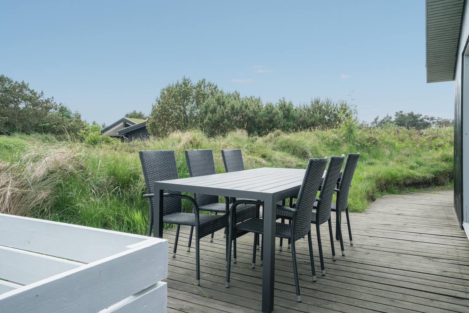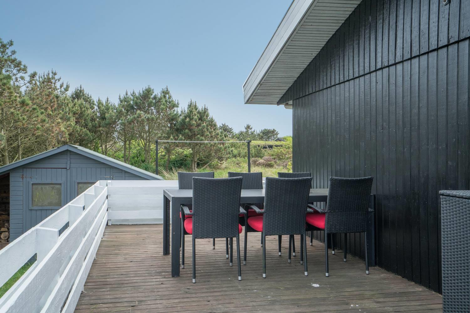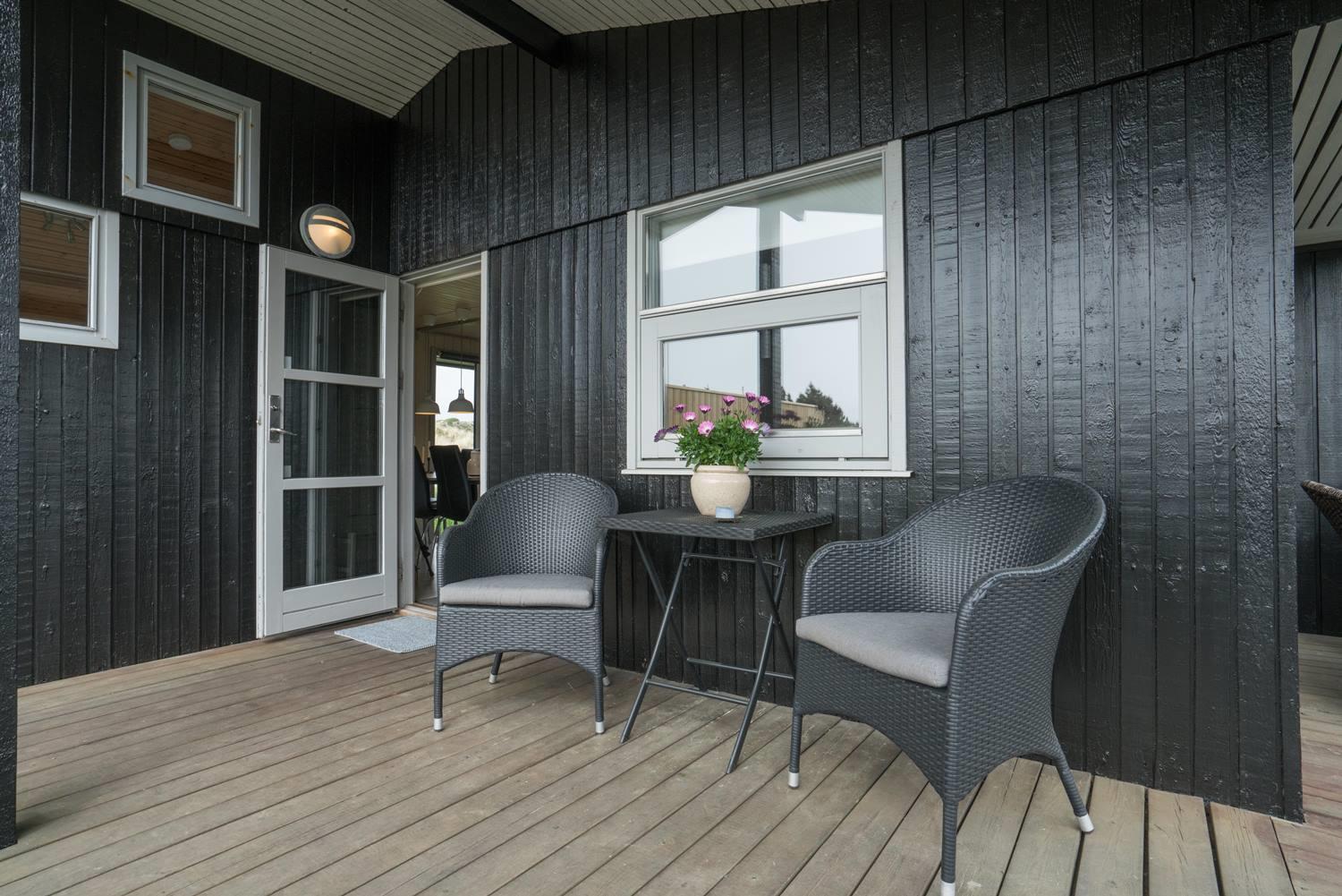 Husets træterrasser indbyder til solbadning eller man kan nyde aftensmaden på den overdækkede terrasse. 3 gode soveværelser med 6 sovepladser.