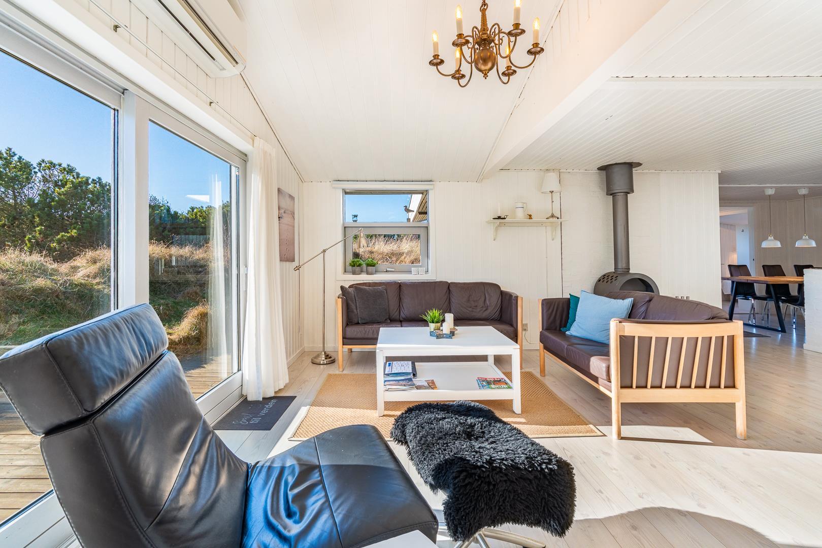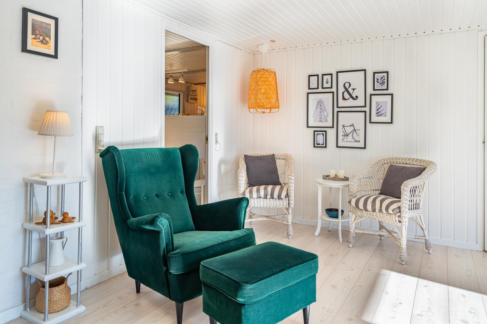 Dette feriehus på Storkenæbsvej 1 Henne Strand er stilfuld, personligt indrettet og emmer af rigtig sommerhus hygge.