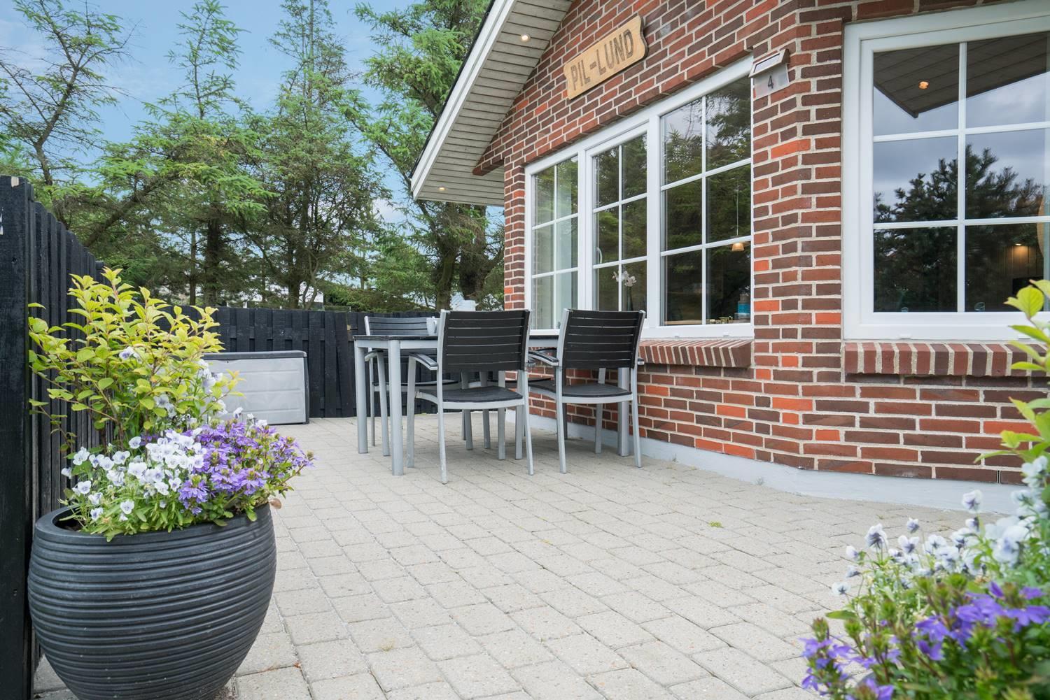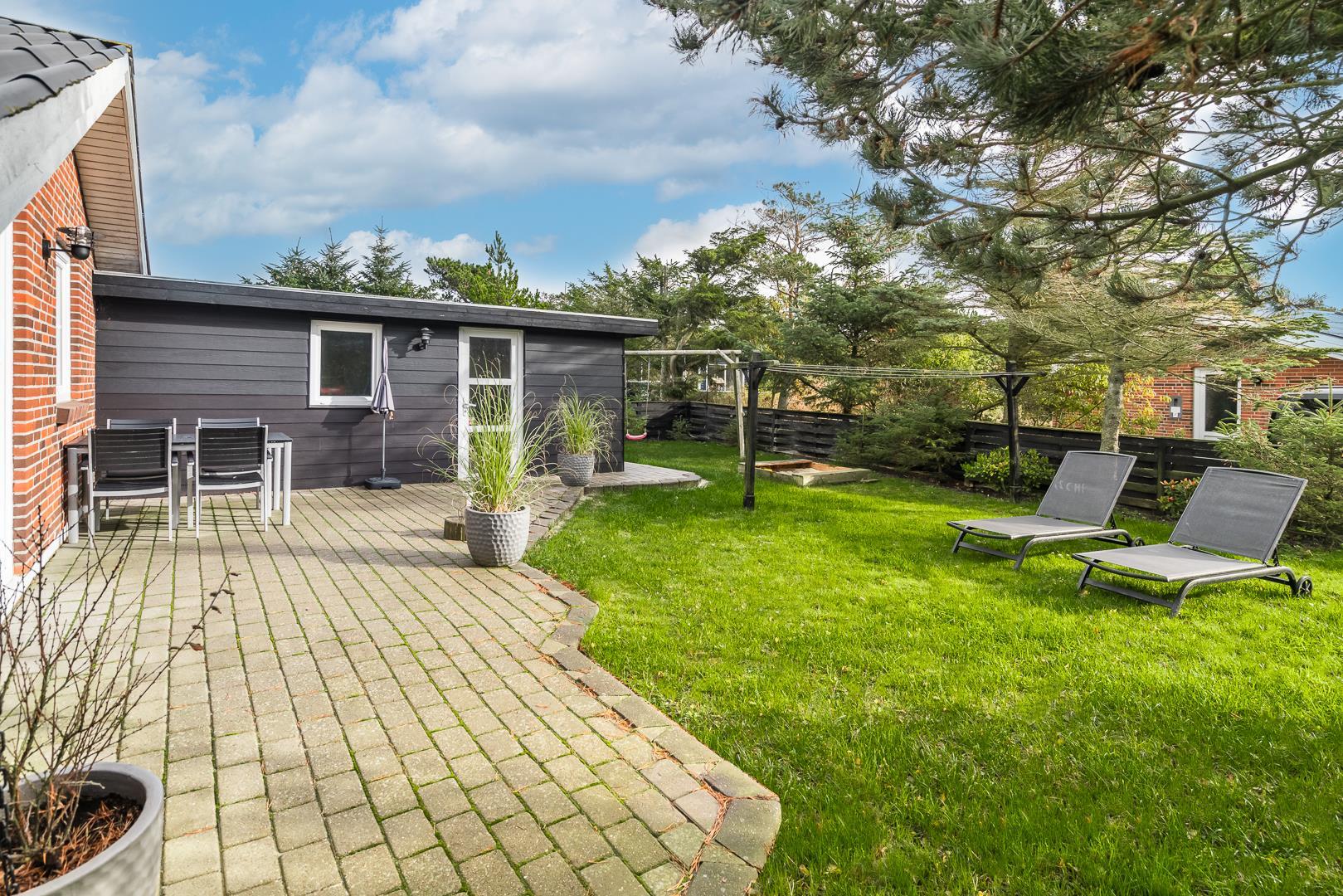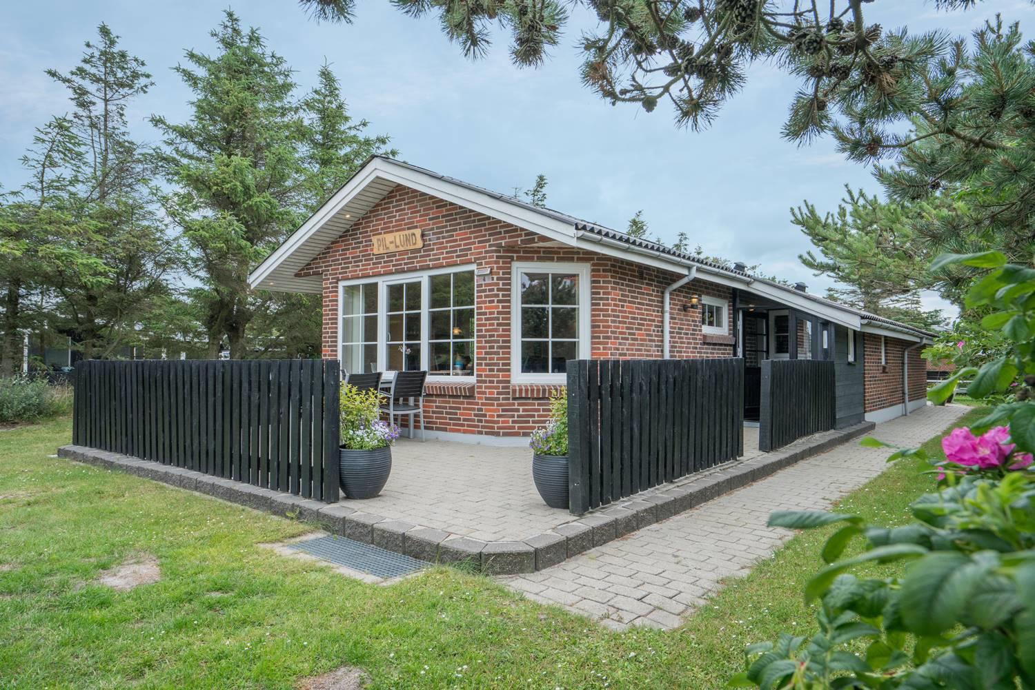 Hyggeligt feriehus nær Henne Strands centrum med spa, terrasse og moderne faciliteter for en afslappende ferie.