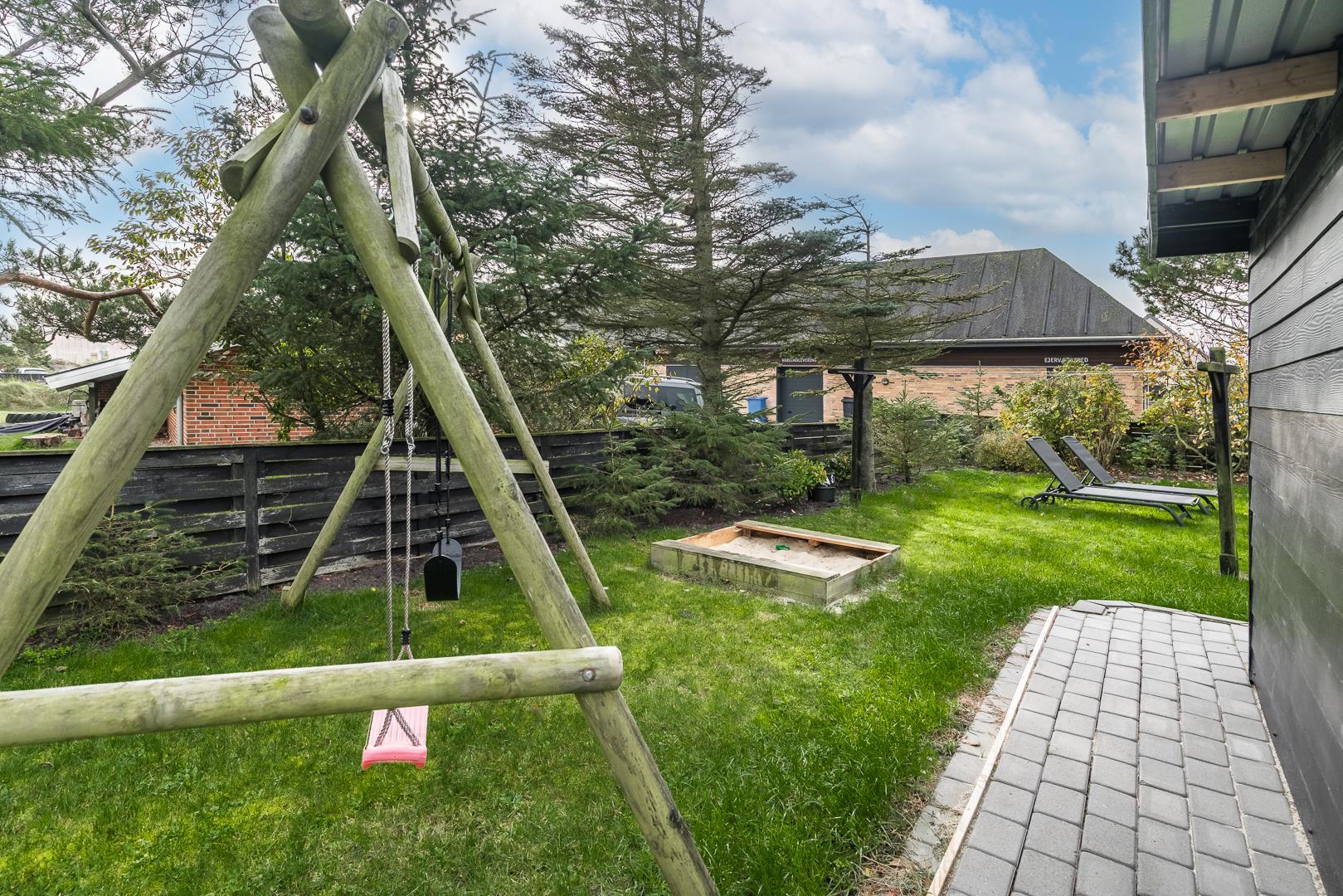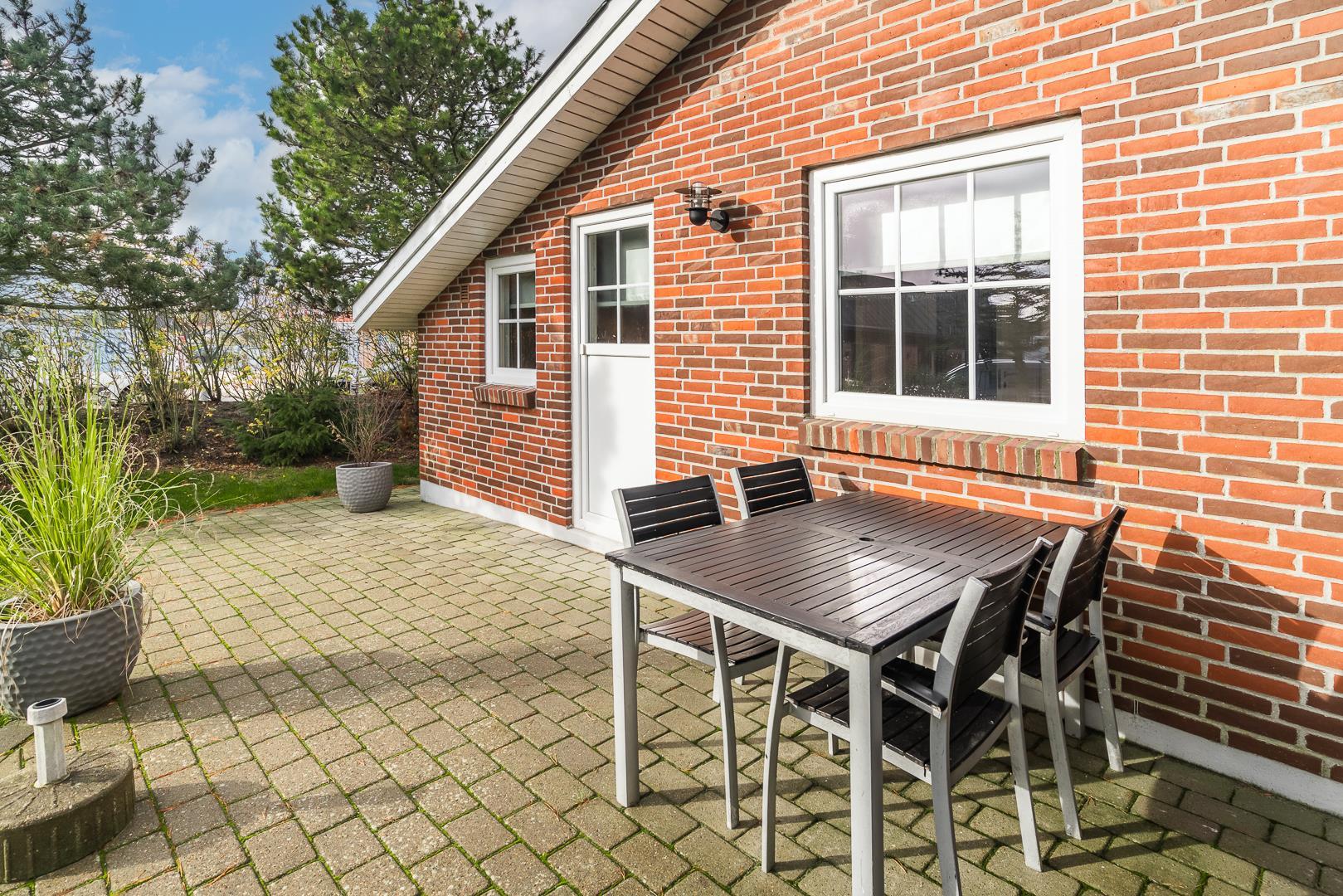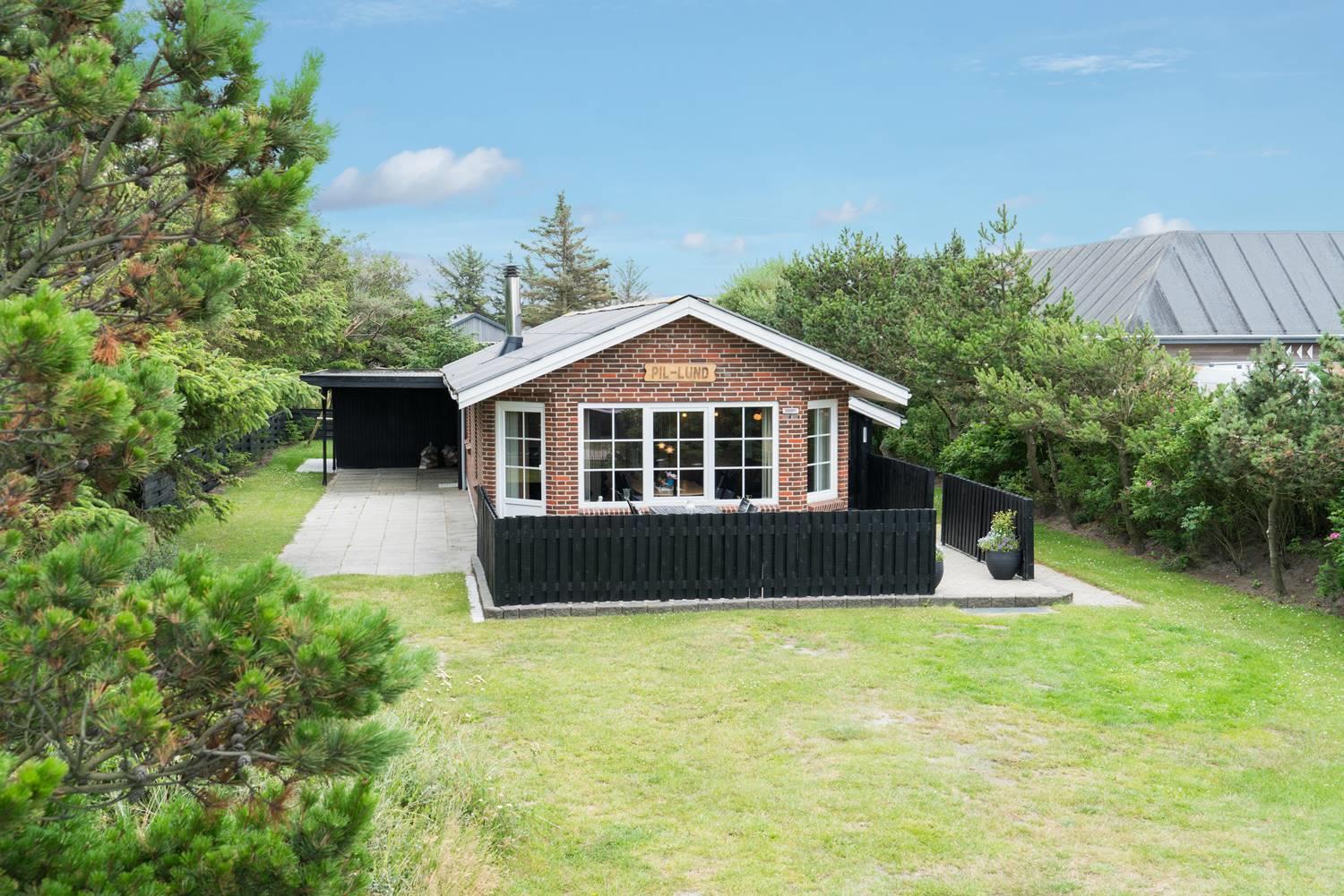 Hyggeligt feriehus nær Henne Strands centrum med spa, terrasse og moderne faciliteter for en afslappende ferie.