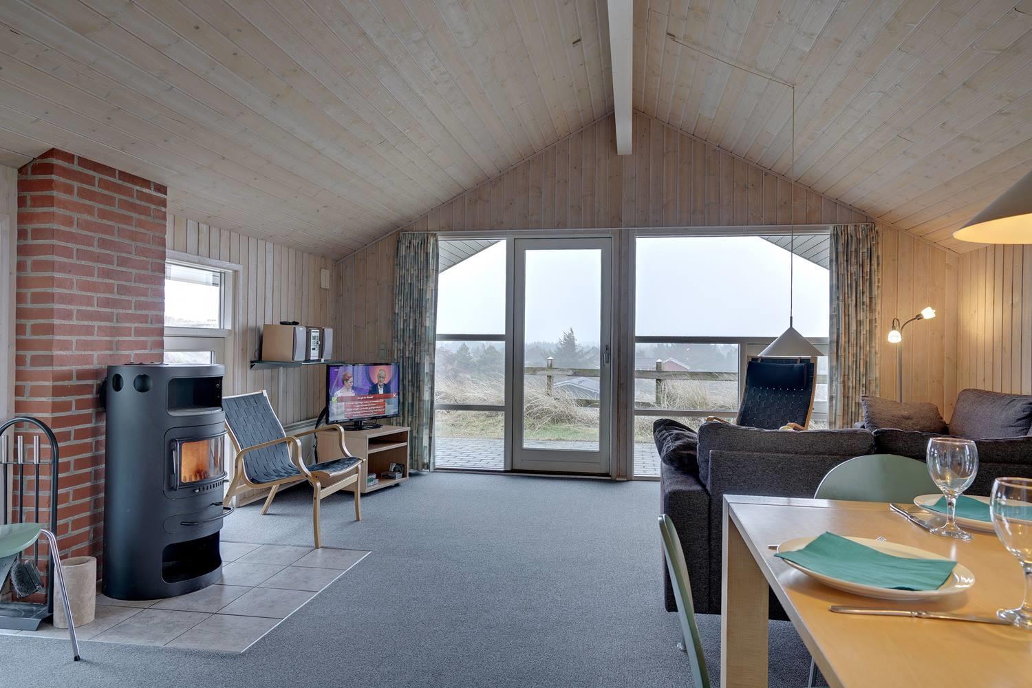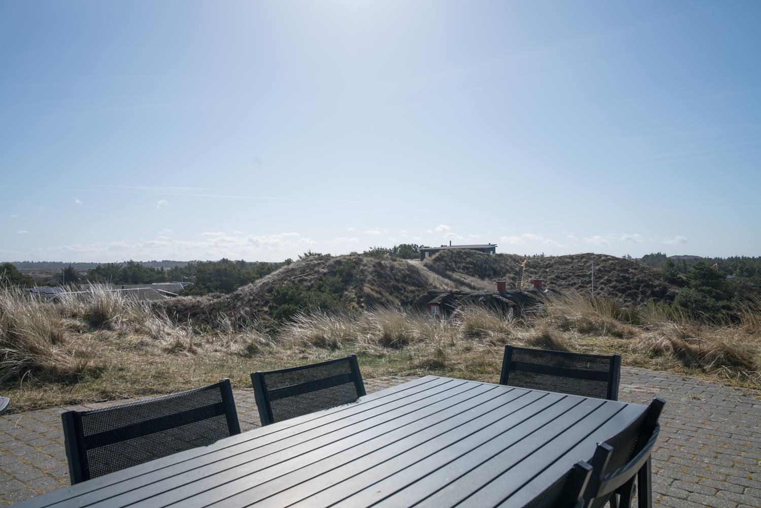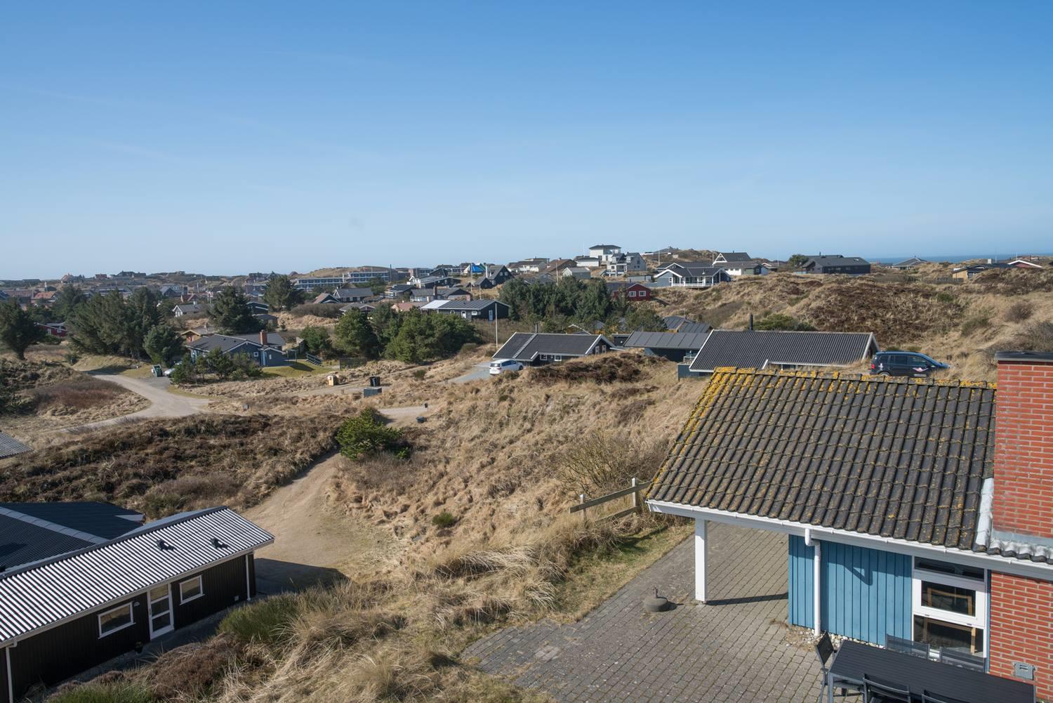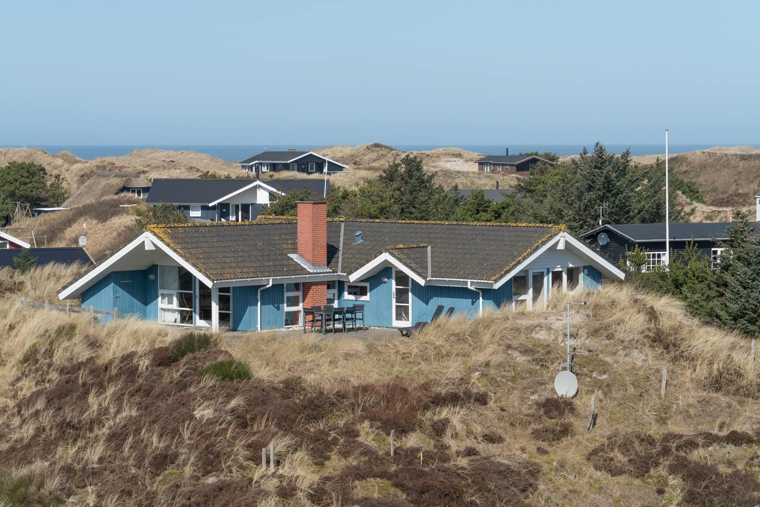 På en klittop med pragtfuld udsigt over byen og Lyngbo's Hede mod Blåbjerg plantage ligger dette dejlige feriehus. Ligemeget om man sidder på terrassen eller i stuen kan den fantastiske udsigt nydes. Huset har en stor stue, som ligger i åben forbindelse med køkkenet. Huset er indrettet med gode møbler dejligt badeværelse med spa og sauna.