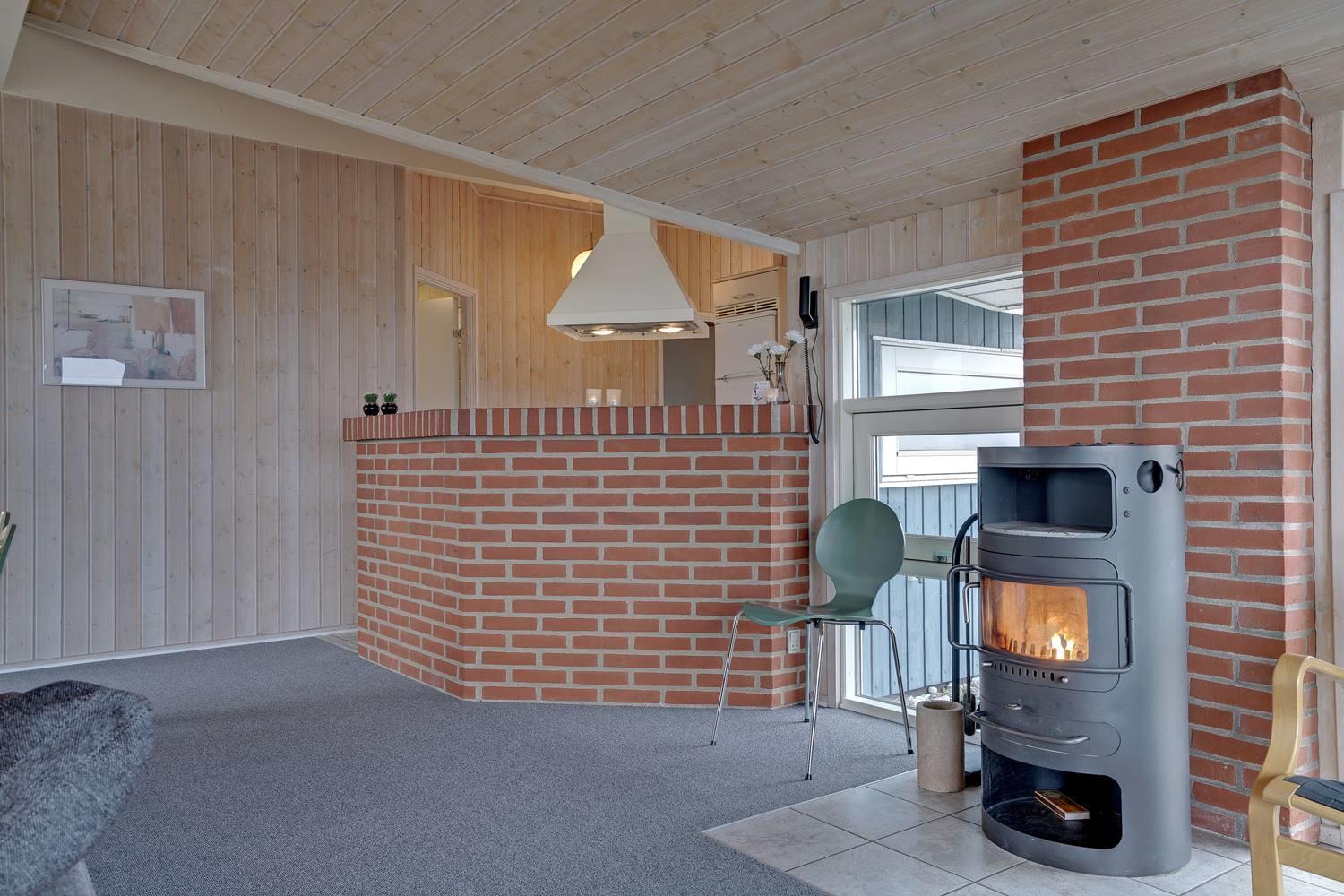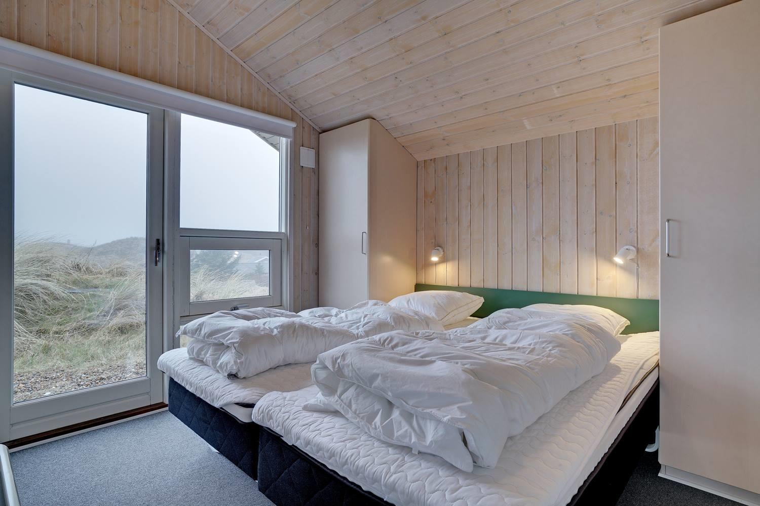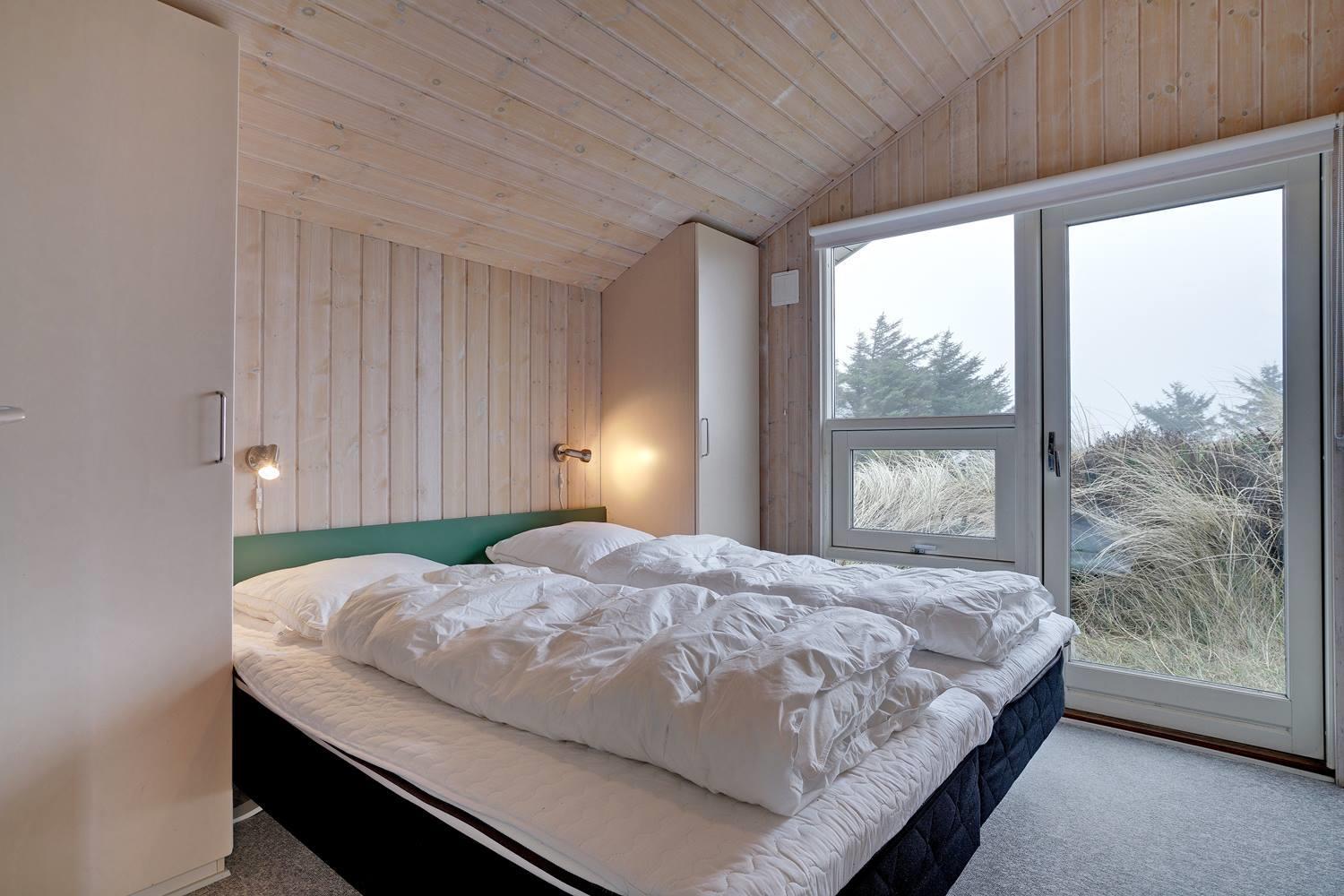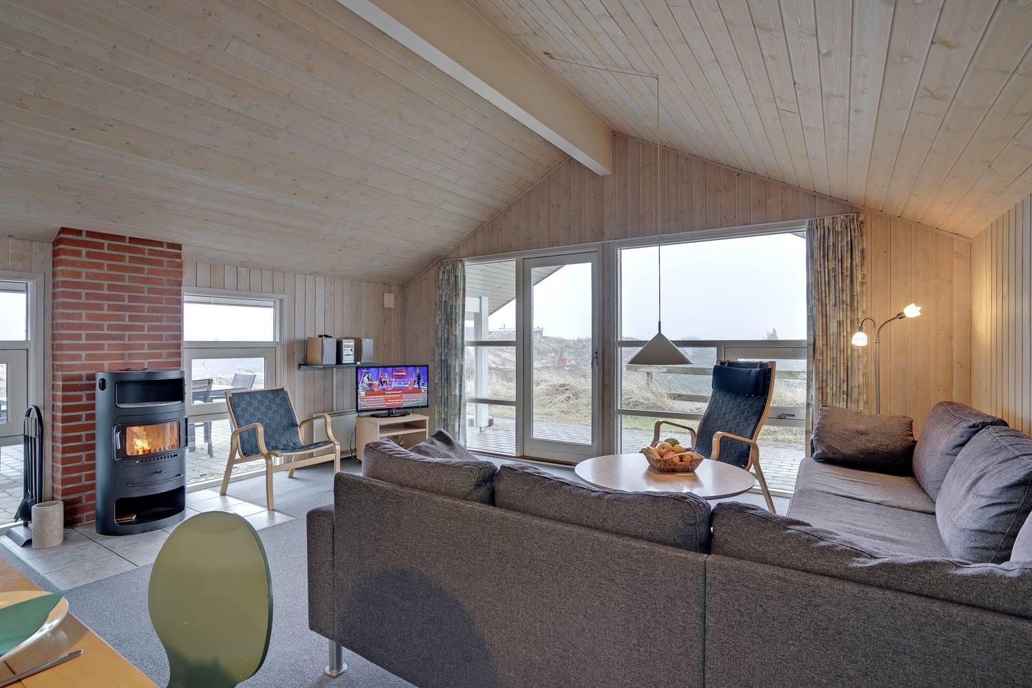 På en klittop med pragtfuld udsigt over byen og Lyngbo's Hede mod Blåbjerg plantage ligger dette dejlige feriehus. Ligemeget om man sidder på terrassen eller i stuen kan den fantastiske udsigt nydes. Huset har en stor stue, som ligger i åben forbindelse med køkkenet. Huset er indrettet med gode møbler dejligt badeværelse med spa og sauna.