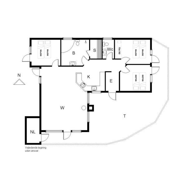 Sengestørrelser: 3 dobbeltsenge med 2 madrasser á 90 x 200 cm.