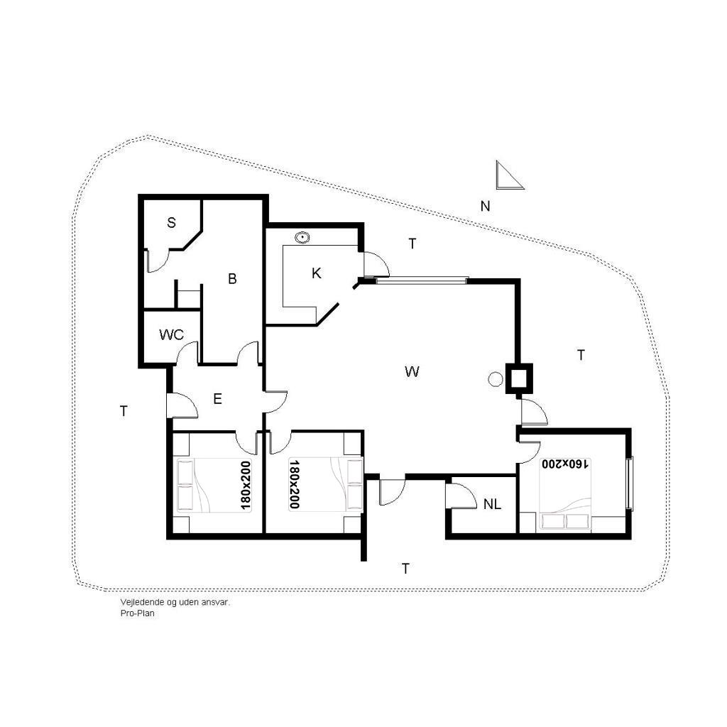 Sengestørrelse: 2 dobbeltsenge 180 x 200 cm + 1 dobbeltseng 160 x 200 cm