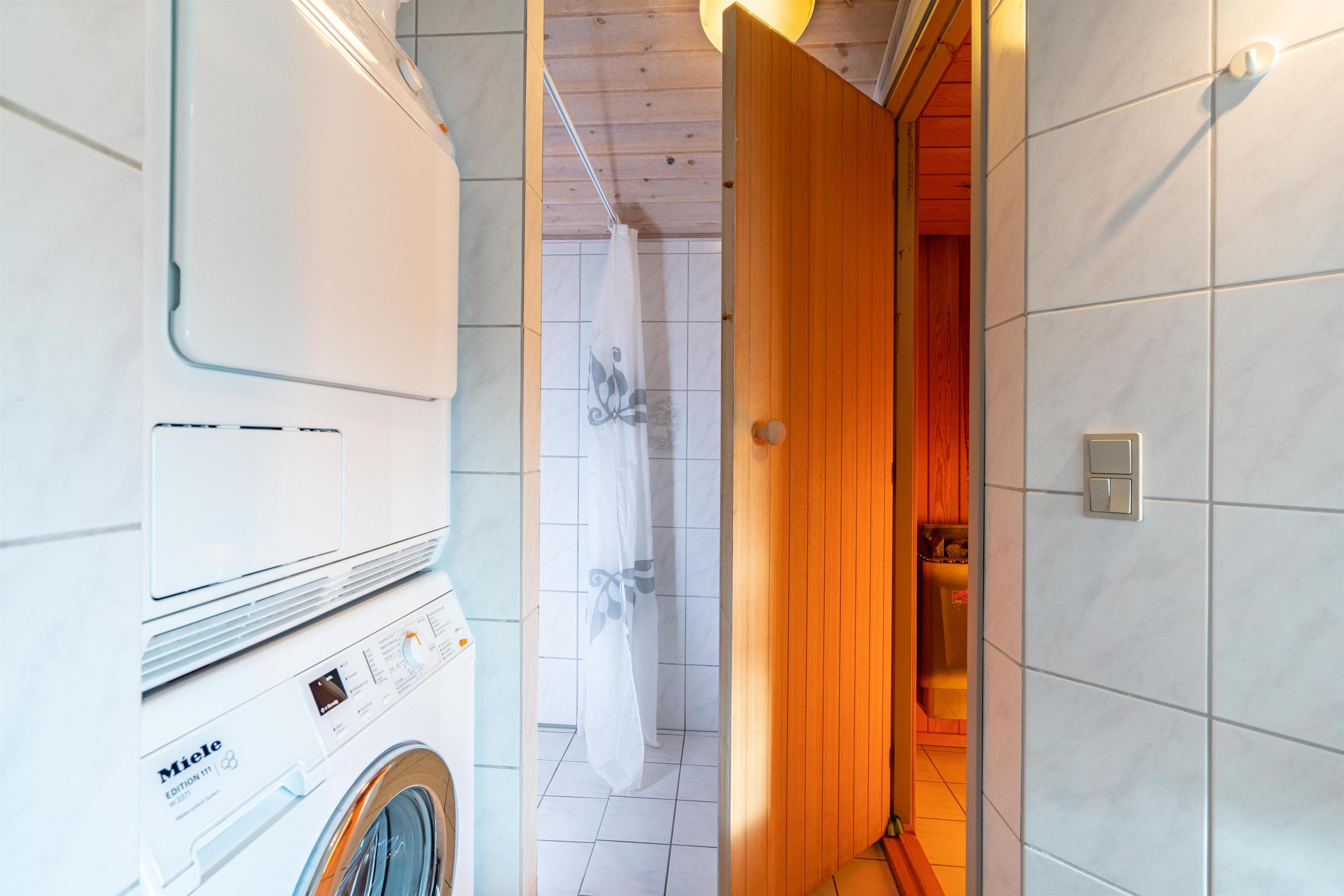 Flot badeværelse med sauna. Tøv ikke med at booke dette stilfuld indrettede feriehus.