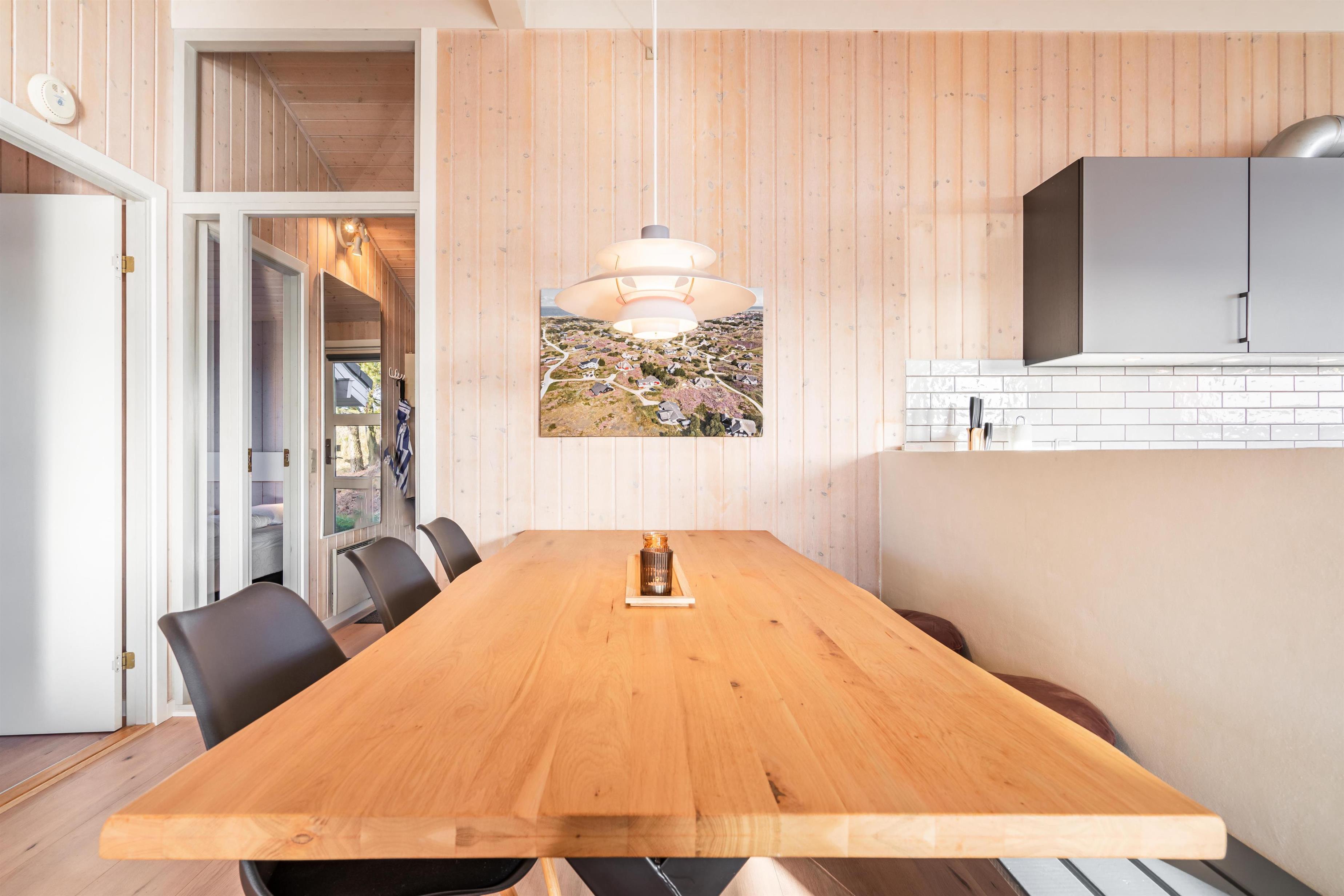 Der er i 2021 kommet nyt lækkert køkken og nye trægulve. Huset har et stort vinduesparti som giver et godt lys ind i stuen, som er indrettet med gode og flotte møbler samt brændeovn.
