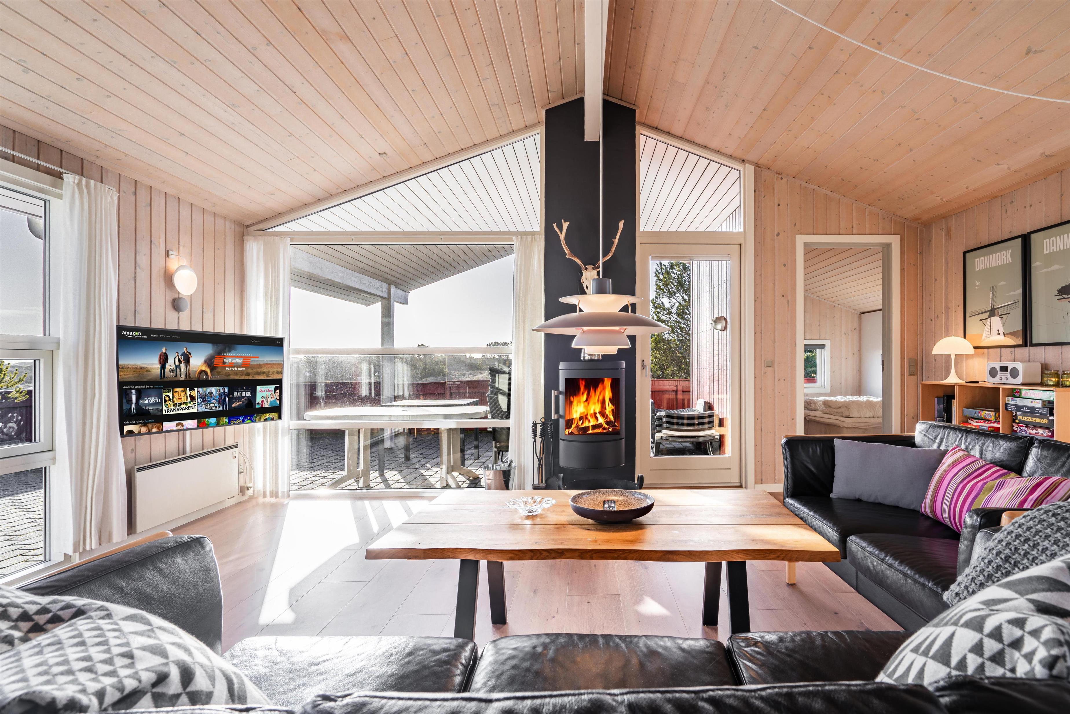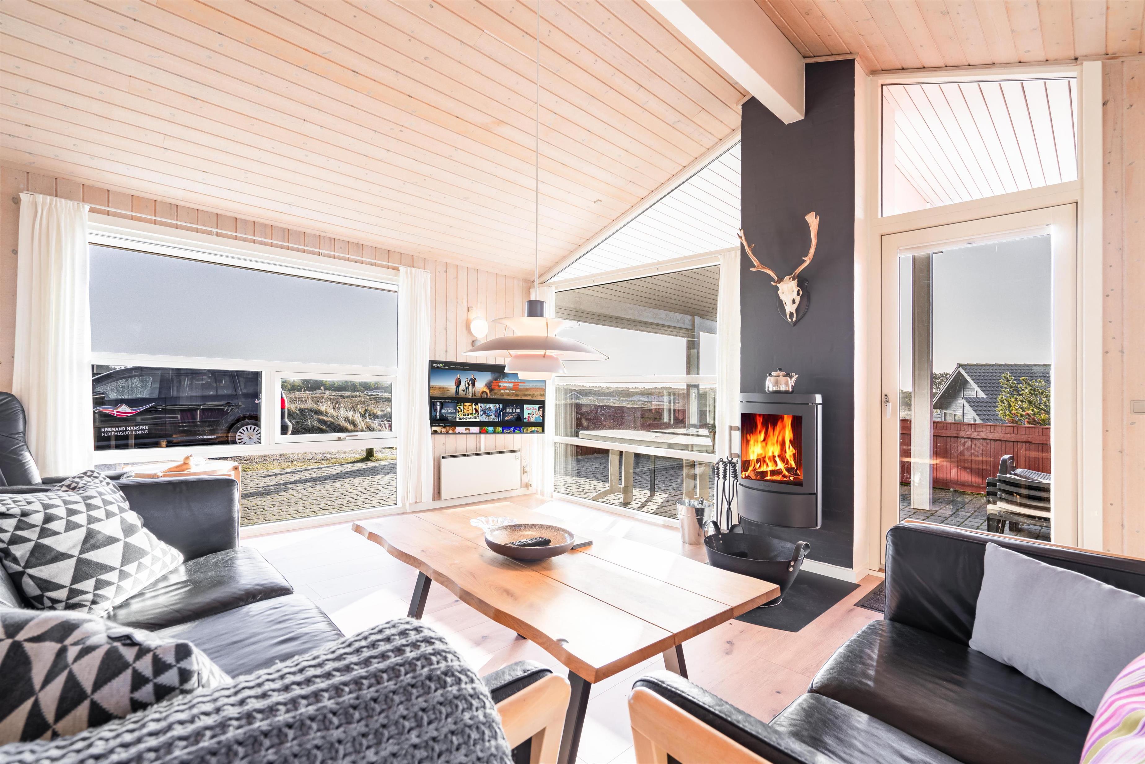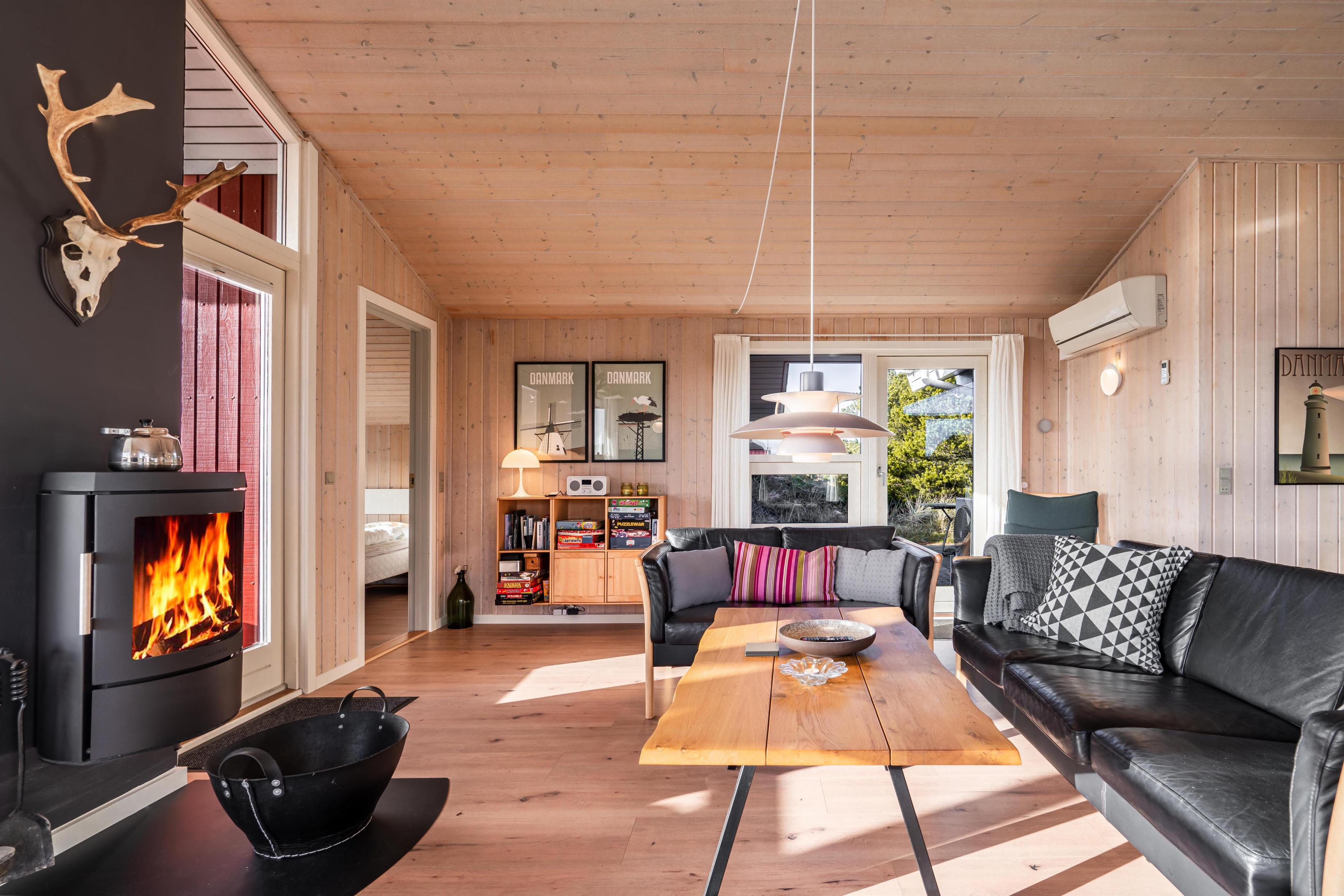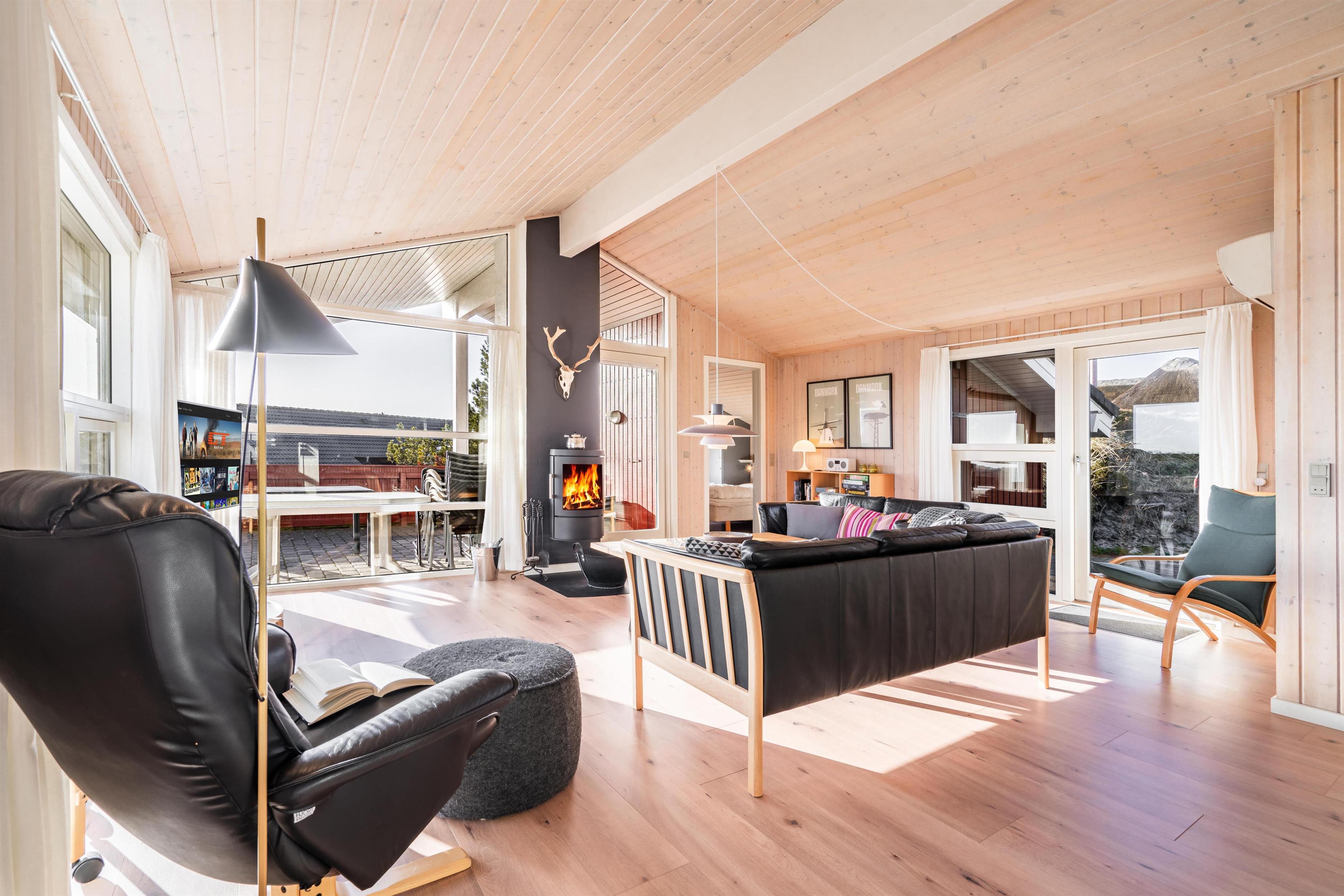 Dejligt feriehus nær Henne Strand med sauna, brændeovn og stor terrasse på en ugenert naturgrund.