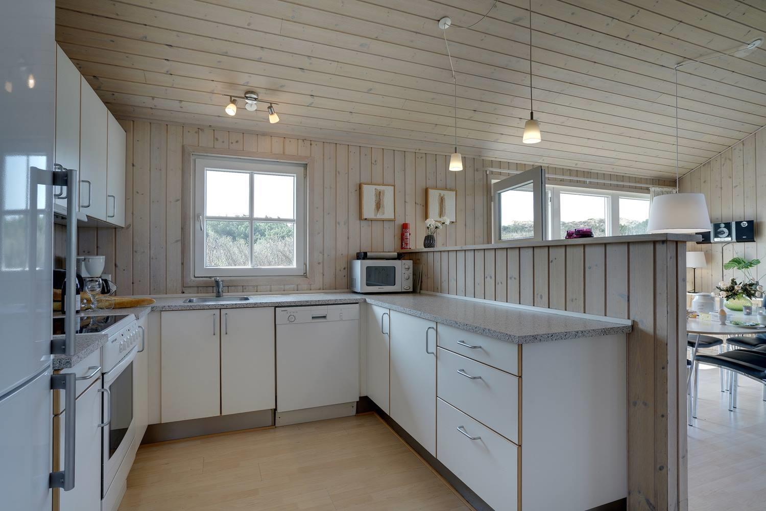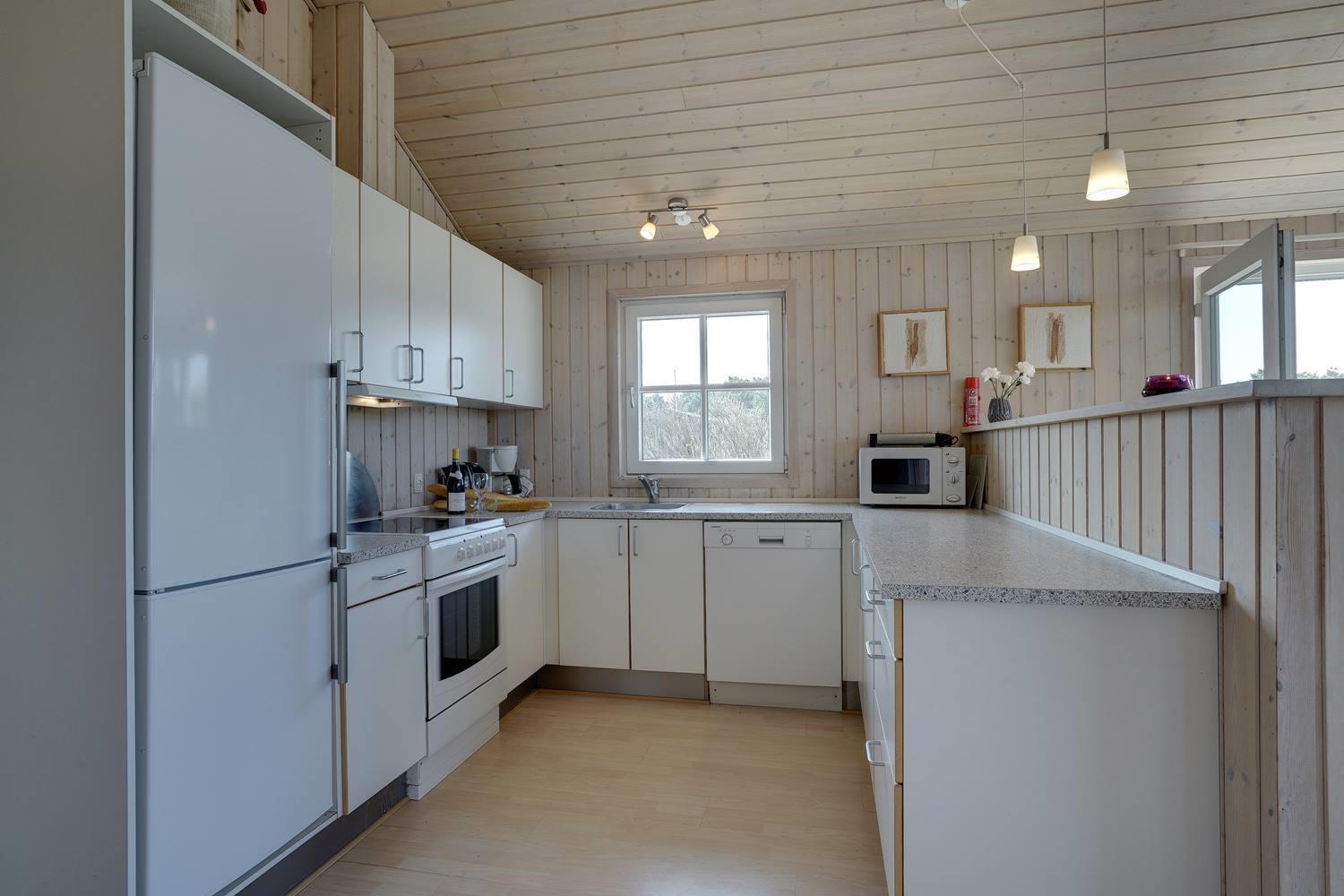 Dejligt feriehus beliggende på en pragtfuld let kuperet naturgrund. Indhegnet træ-terrasse på 3 sider af huset hvorfra der er en flot udsigt ud over klitterne. Dejlig stor entre med plads til overtøj m.v, samt hems på 20m2. Køkken i åben forbindelse til stilfuld indrettet stue med gode møbler og brændeovn med glaslåge og flot udsigt over klitområde. 2 gode badeværelser med bruseniche, hvoraf det ene desuden er med spa og sauna. Alle gulve i huset er belagt med træ.