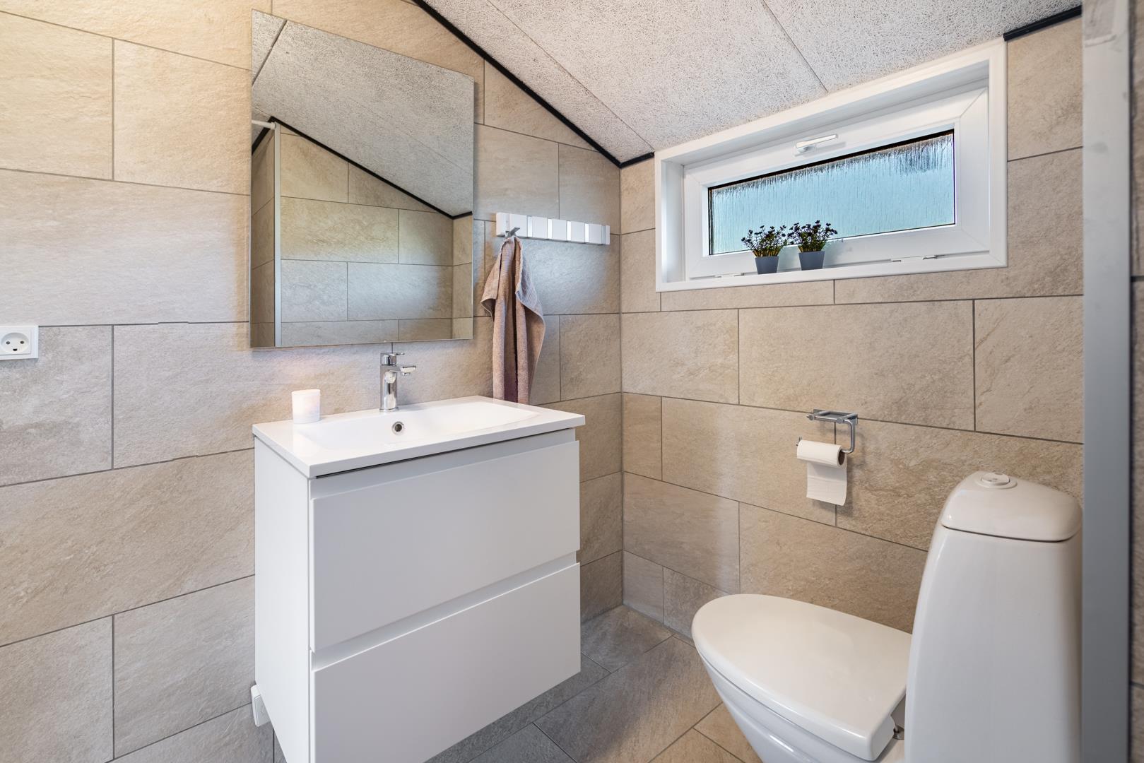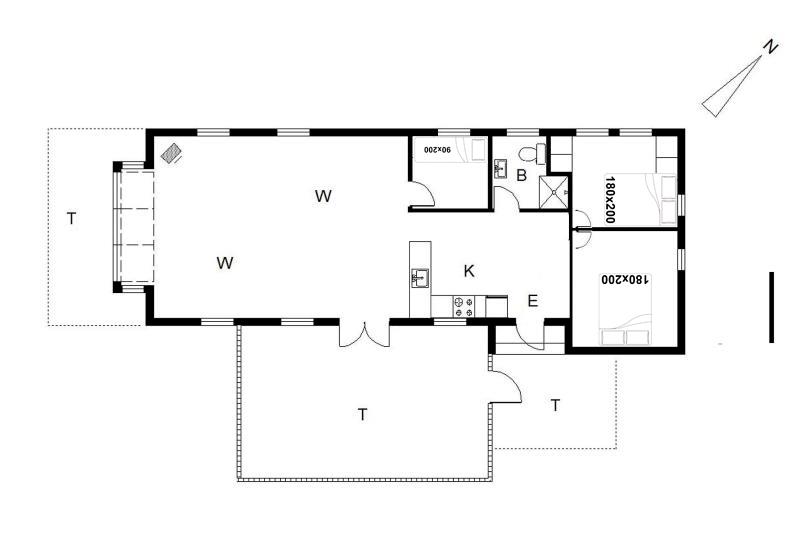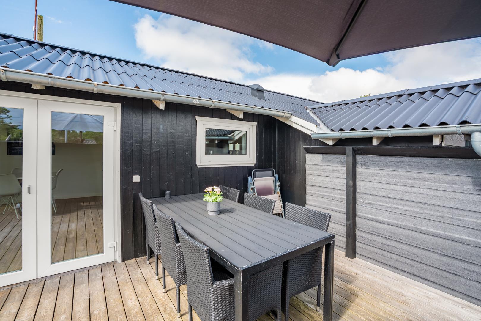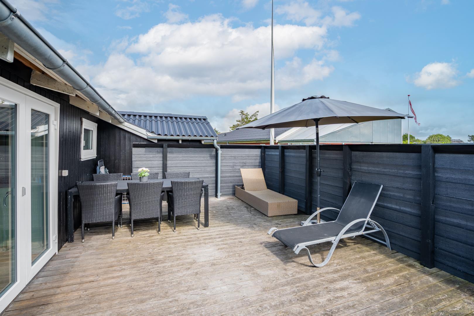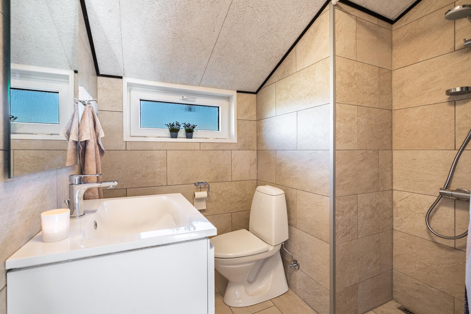 Køkkenet ligger i forbindelse med den fine stue – her finder du bl.a. brændeovnen der skaber ekstra hygge på de kolde dage. Den energibesparende varmepumpe sikrer til gengæld optimal komfort året rundt. For enden af stuen er her et dejligt vinduesparti med kig ud til haven med både sandkasse og gyngestativ. Fra stuen er der også udgang til den dejlige lukkede træterrasse, hvor du kan ligge i fred og ro og nyde de dejlige soltimer, sidde og slappe af med en god kop kaffe eller grille med resten af familien. Et skønt sommerhus til den lille familie der ønsker at bo centralt i Henne Strand.