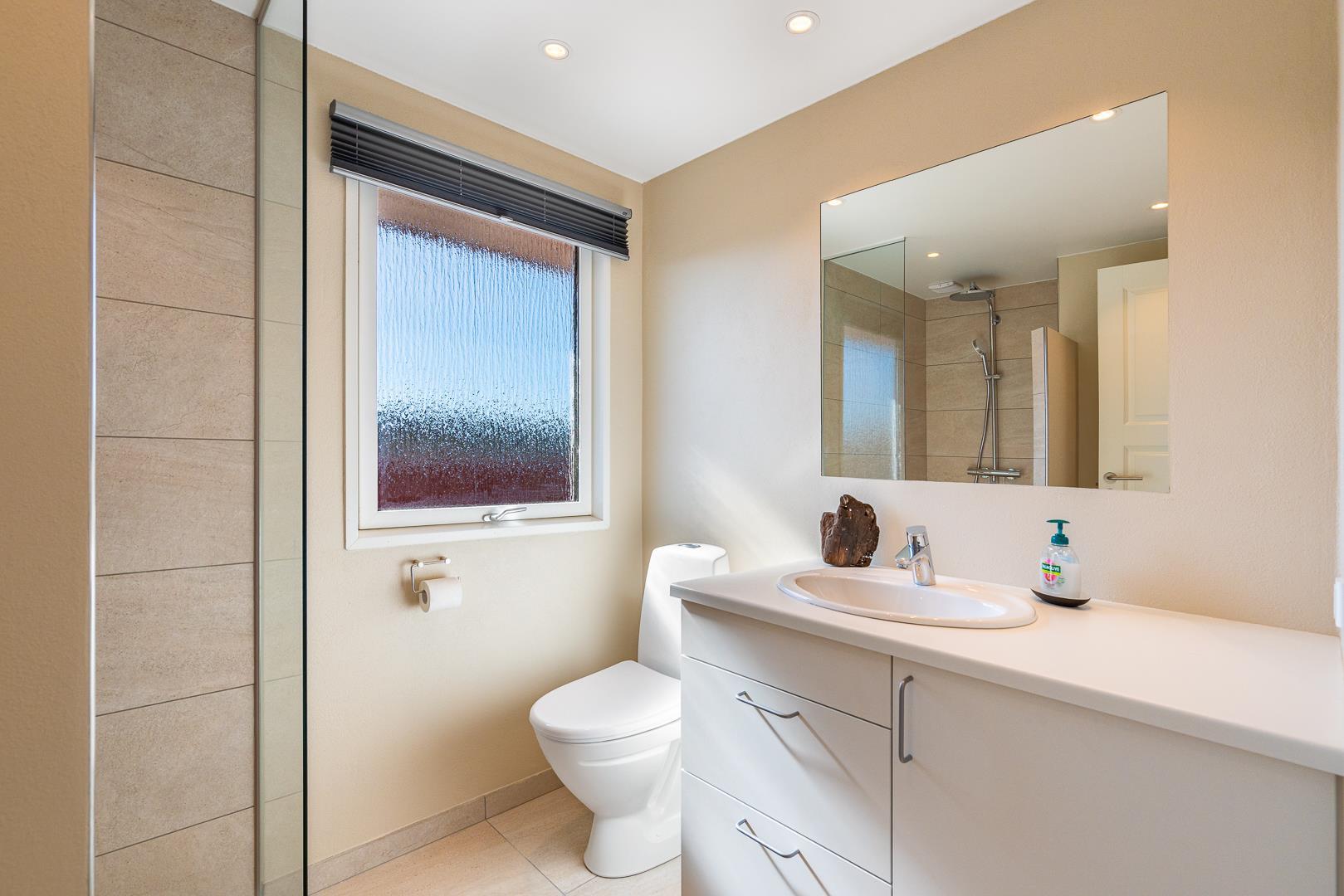 Der er 3 soveværelser med plads til i alt 5 personer, så her er gode rammer for en rolig nattesøvn. Badeværelset er moderne og udstyret med gulvvarme, som giver en lun start på dagen.