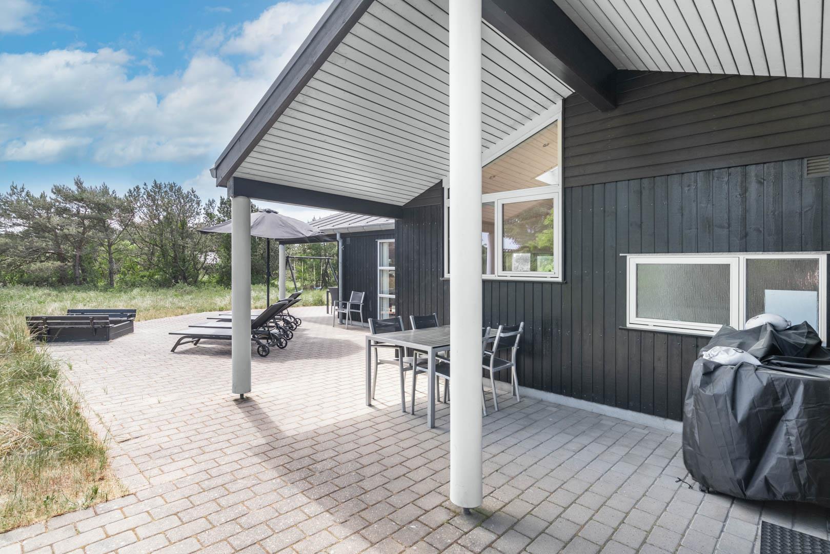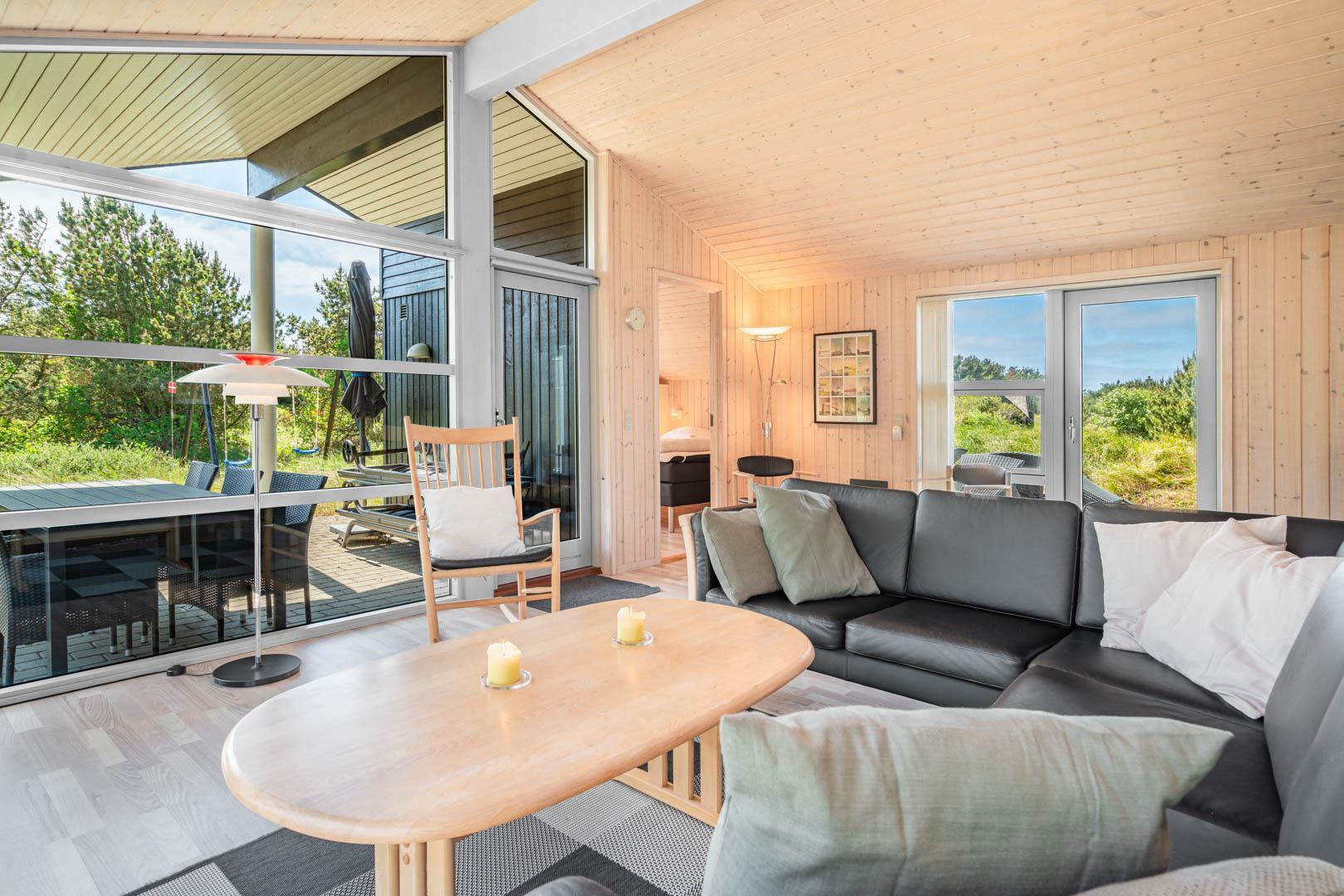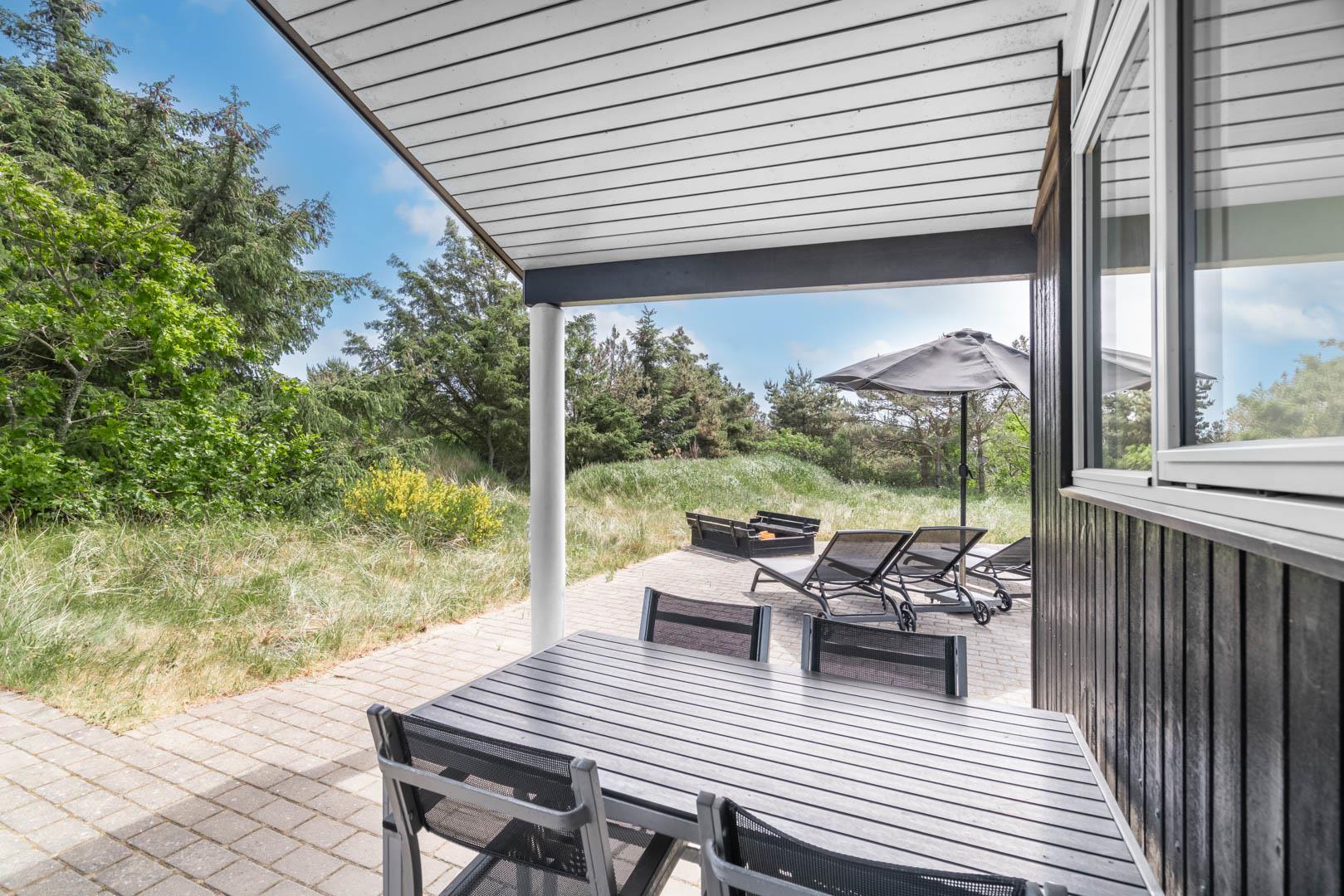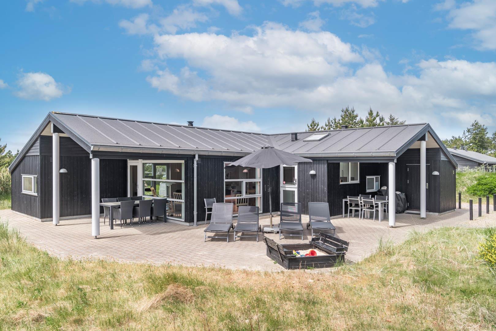 Flot sommerhus i Henne Strand med stor terrasse, spabad, sauna og tæt på stranden.