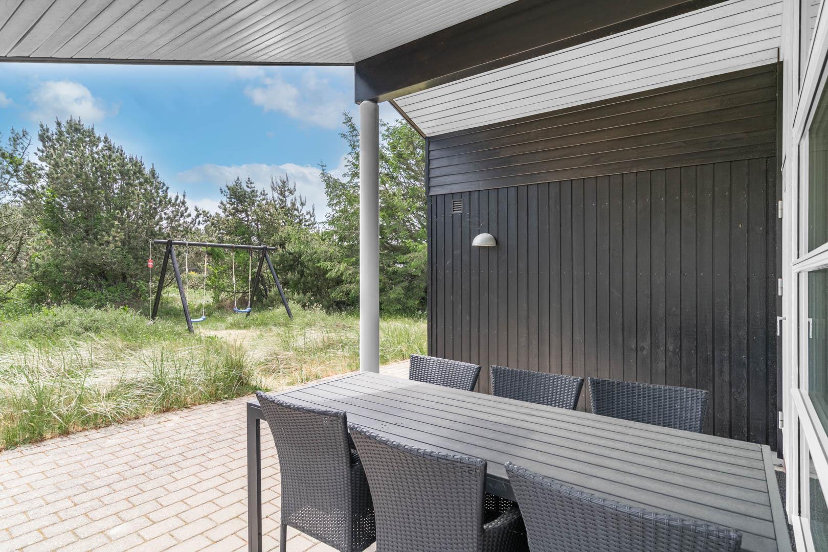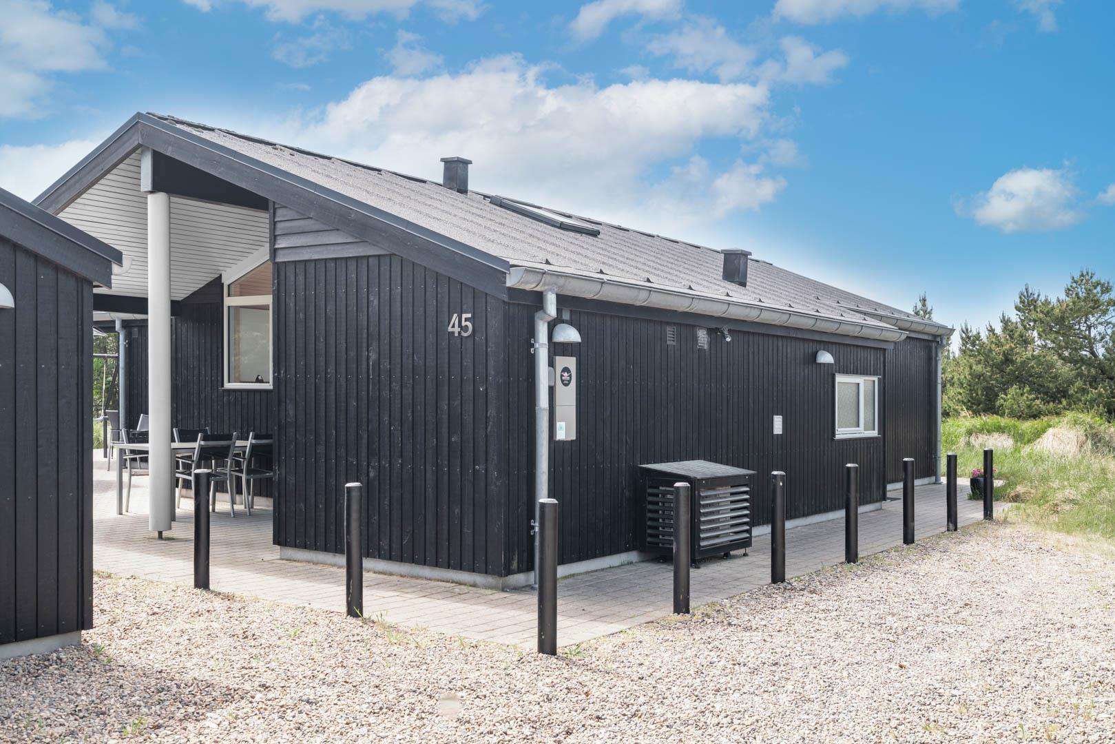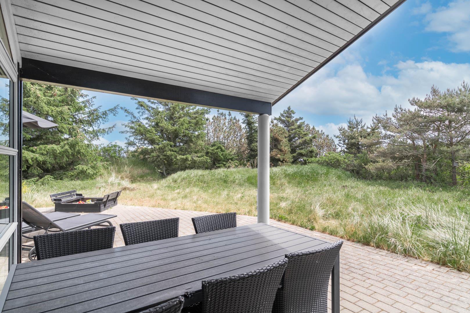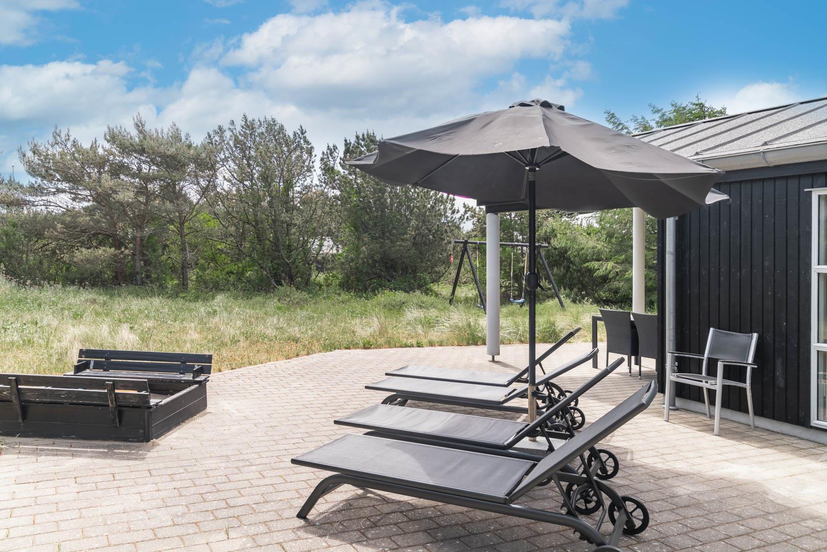 Flot sommerhus i Henne Strand med stor terrasse, spabad, sauna og tæt på stranden.