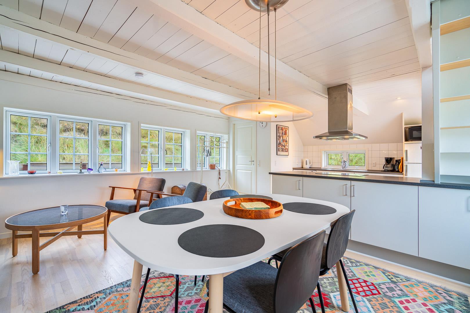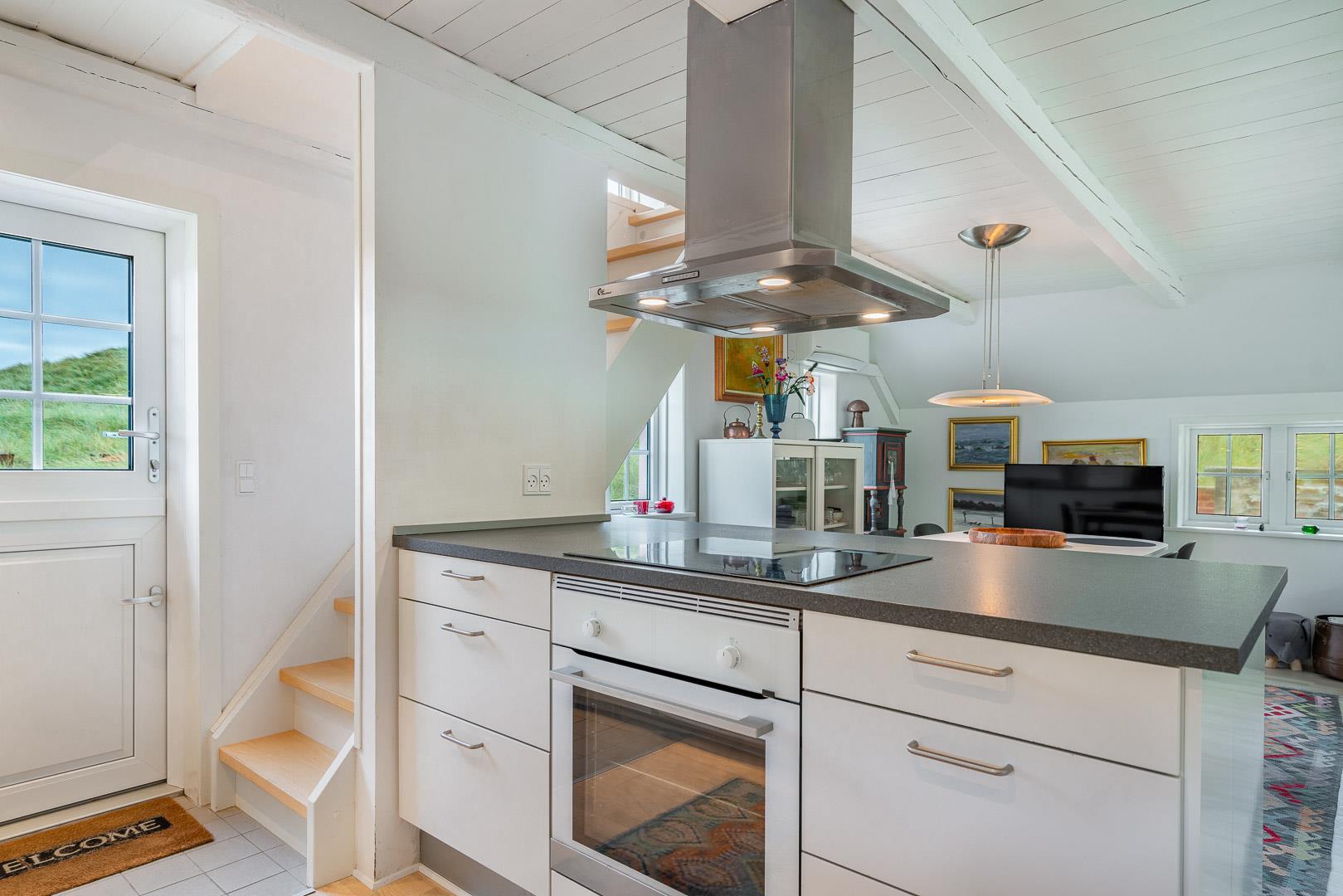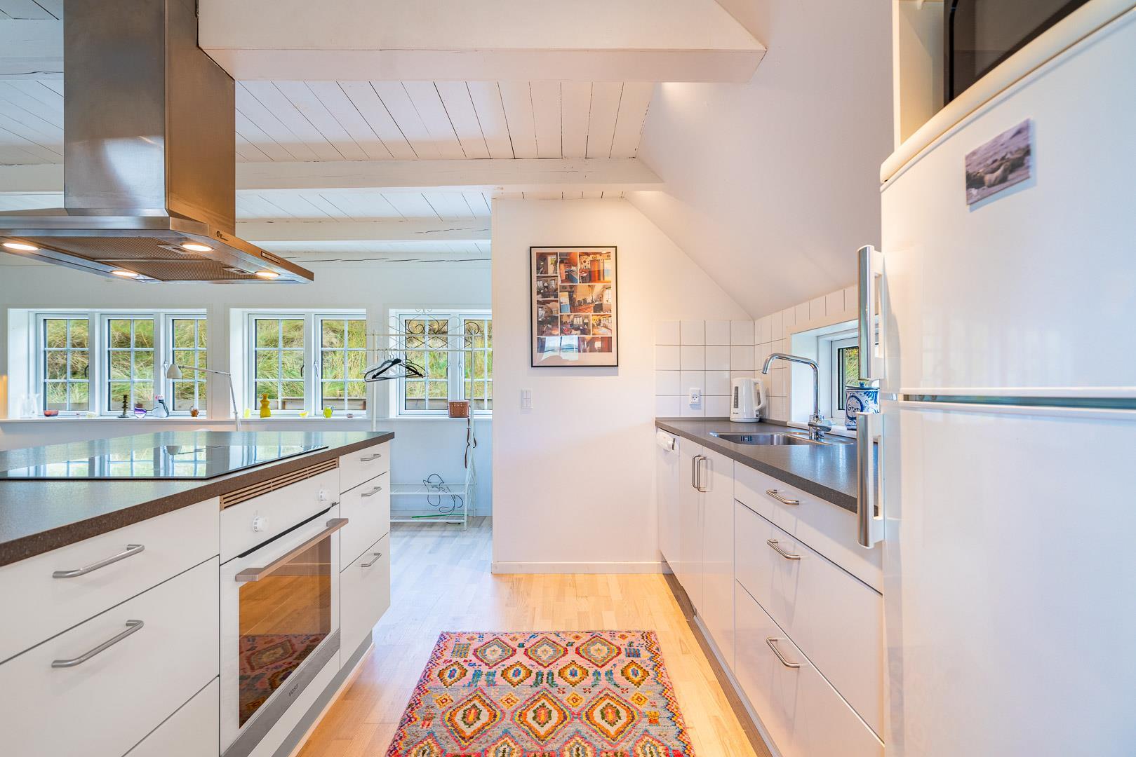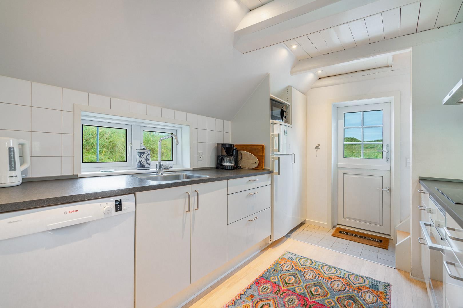 Det åbne køkken ligger i forbindelse med stuen og er moderne udstyret med alt, hvad I behøver – inklusiv opvaskemaskine. Her kan I nemt tilberede feriemåltider, uanset om det er en langsom morgenmad eller en enkel aftensmad efter en dag på stranden.