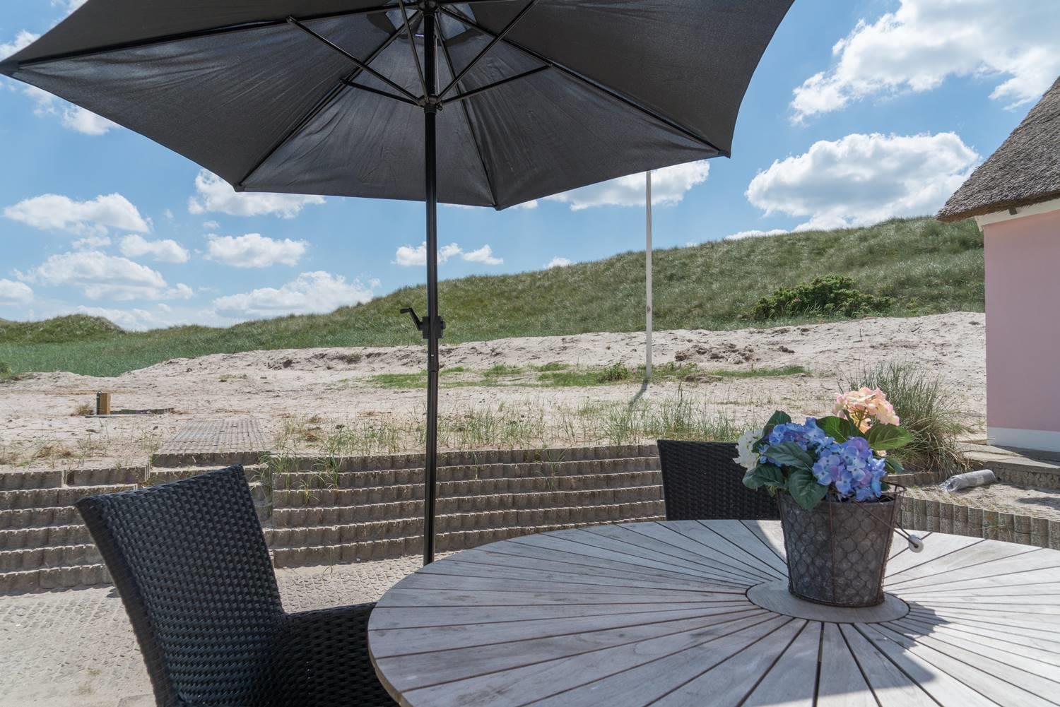 Fra terrassen fører en lille sti direkte gennem klitterne, og efter få minutters gang står I med fødderne i sandet. Det er den perfekte kombination af komfort og naturoplevelse.