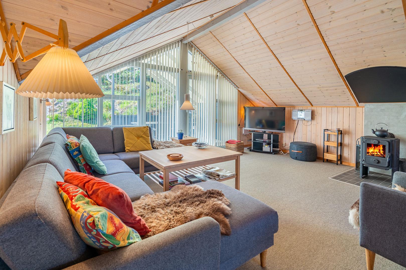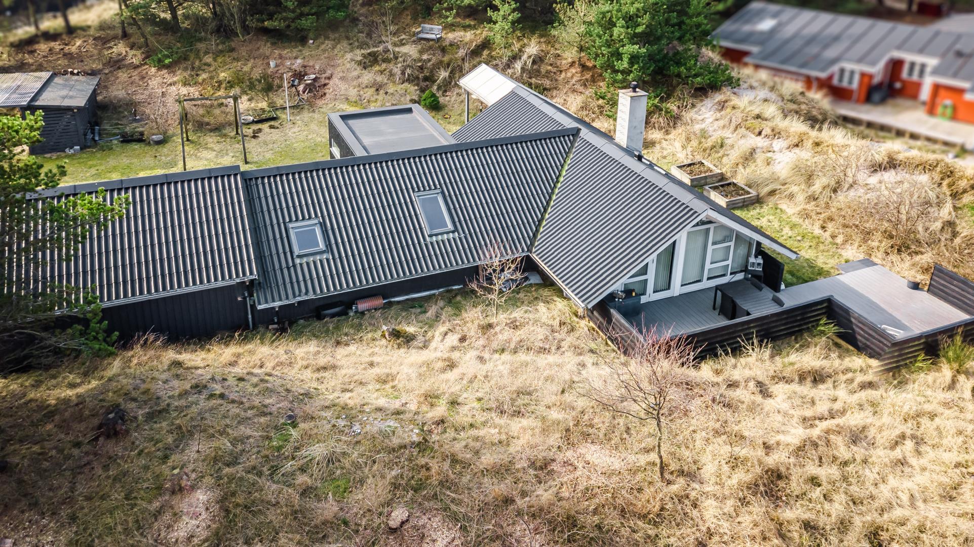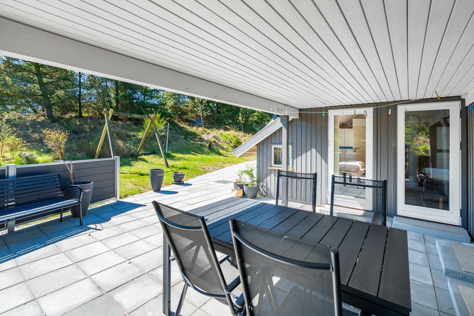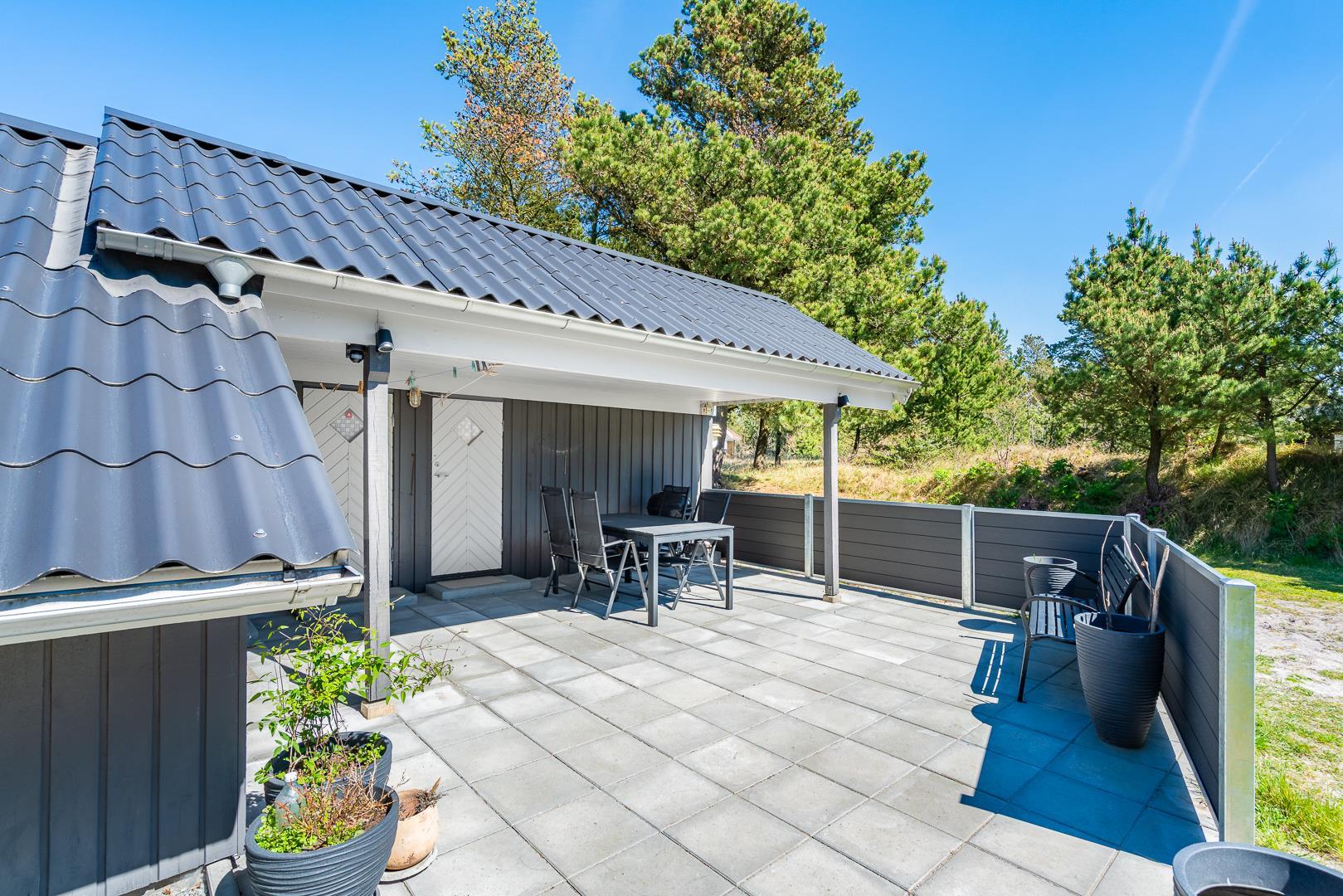 Yderst vedligeholdt feriehus med god beliggenhed og i gåafstand fra Henne Strand by samt Vesterhavet. Feriehuset fremstår med vedligeholdt og er løbende renoveret. Senest i 2021 hvor der er lavet nyt badeværelse med gulvvarme. Dejlig stor og rummelig køkken/alrum med brændeovn samt varmepumpe. Fra Køkken/alrummet er der direkte udgang til større delvis overdækket lukket terrasse, hvor man over aftensmaden kan nyde solnedgangen. Feriehuset er beliggende på en meget stor kuperet og ugenert naturgrund. Der er flere gode vandre samt cykelstier i området.