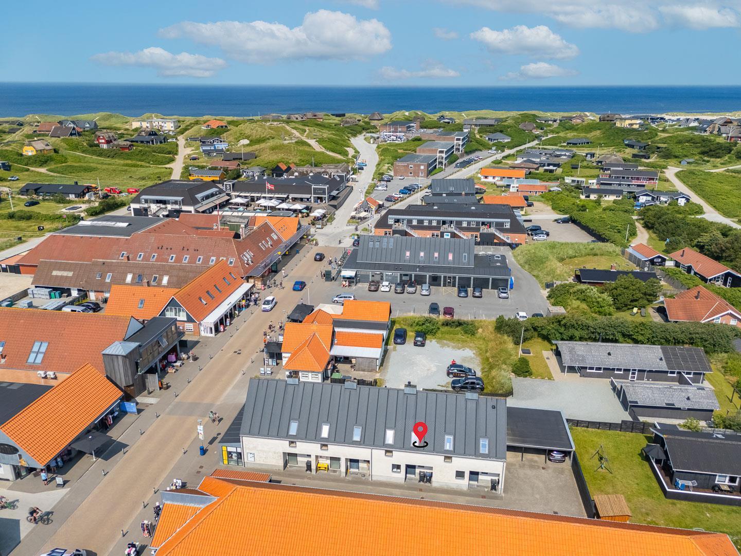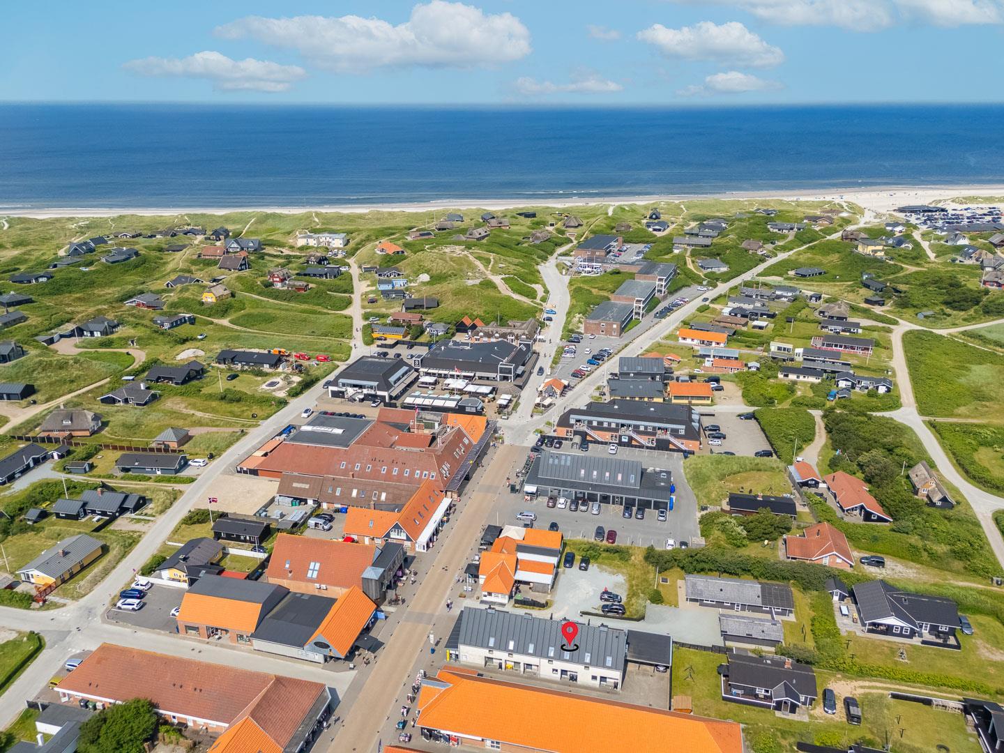 Med en beliggenhed i centrum af Henne Strand er du tæt på alt, hvad du behøver. Du kan nemt gå til den brede sandstrand, hvor du kan tage solbad, bade eller gå lange ture langs kysten. Hvis du er til cykling og vandring, er der direkte adgang til cykelstier til Blåbjerg Plantage og Filsø, hvor naturen og de smukke landskaber venter på at blive udforsket.