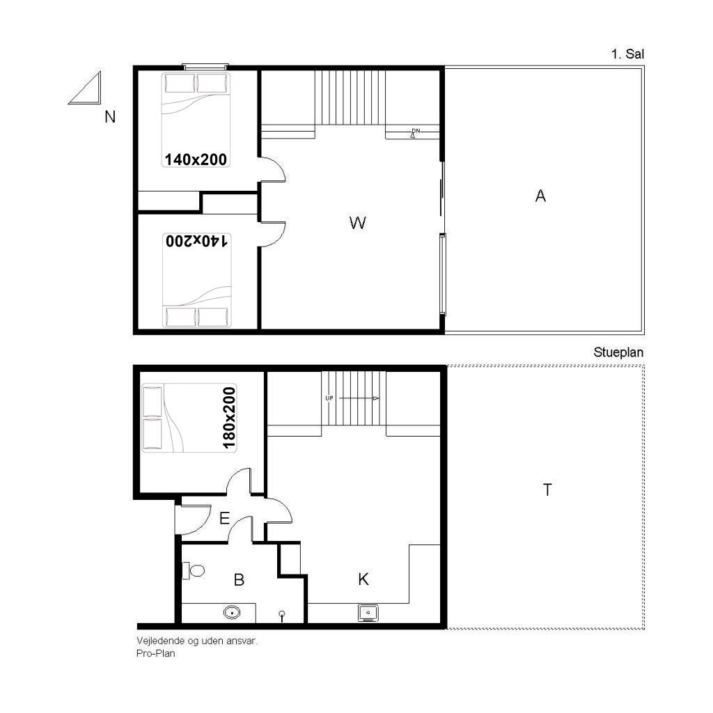 Sengestørrelse: 2 dobbeltsenge 140 x 200 cm + 1 dobbeltseng 180 x 200 cm.