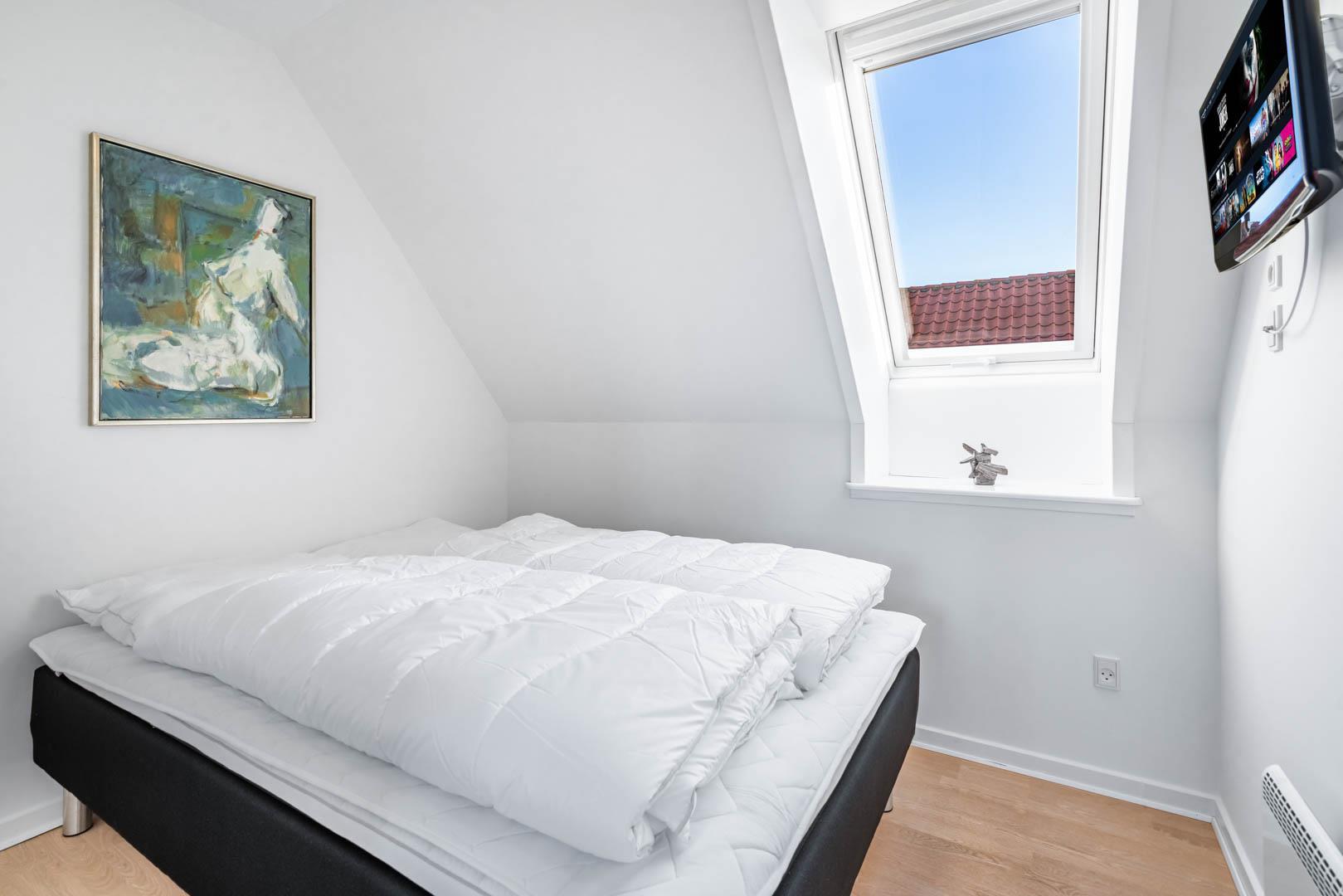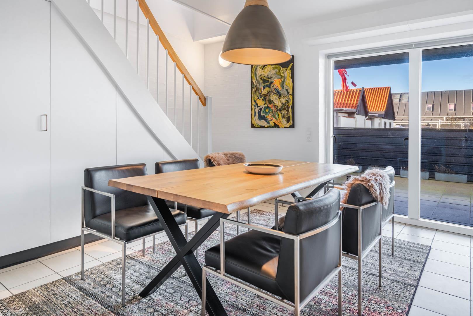 På Strandvejen 444 D, midt i den charmerende ferieby Henne Strand, finder du denne flotte og indbydende ferielejlighed. Lejligheden strækker sig over to etager og fremstår lys, venlig og velholdt – en perfekt ramme for en afslappende ferie med alt, hvad du behøver lige udenfor døren.