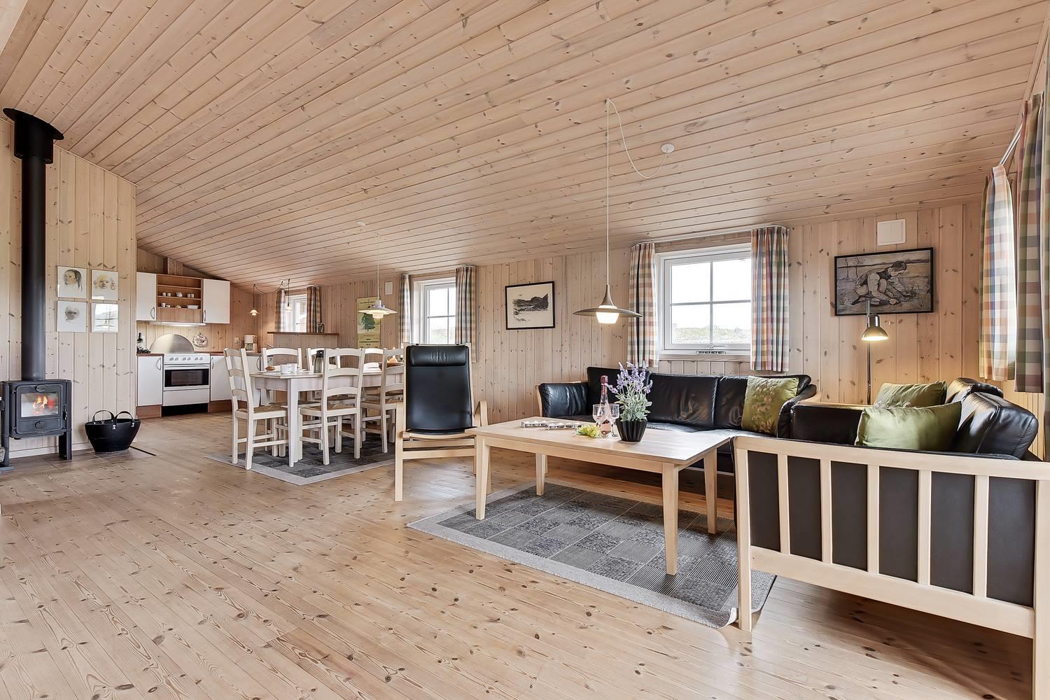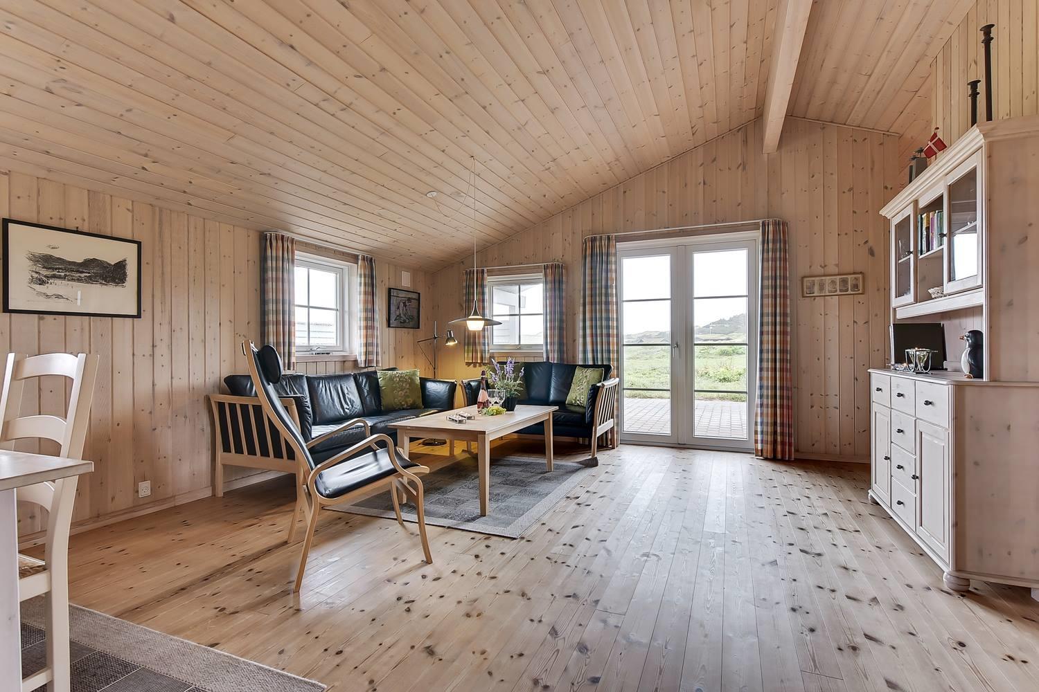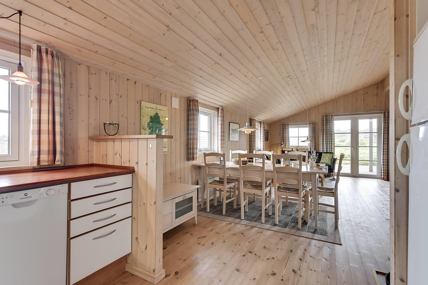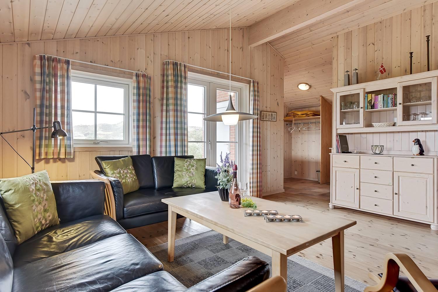 Et rigtig godt muret feriehus, beliggende på en lyngklædt grund grænsende op til stort friareal. Entre med god plads til overtøj m.v. og herfra adgang til stue med moderne og gode møbler. Hele huset har trægulve og fremstår overalt lyst og venligt. Terrasse på 2 sider af huset mod syd og vest.
