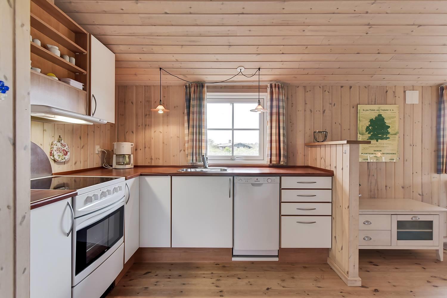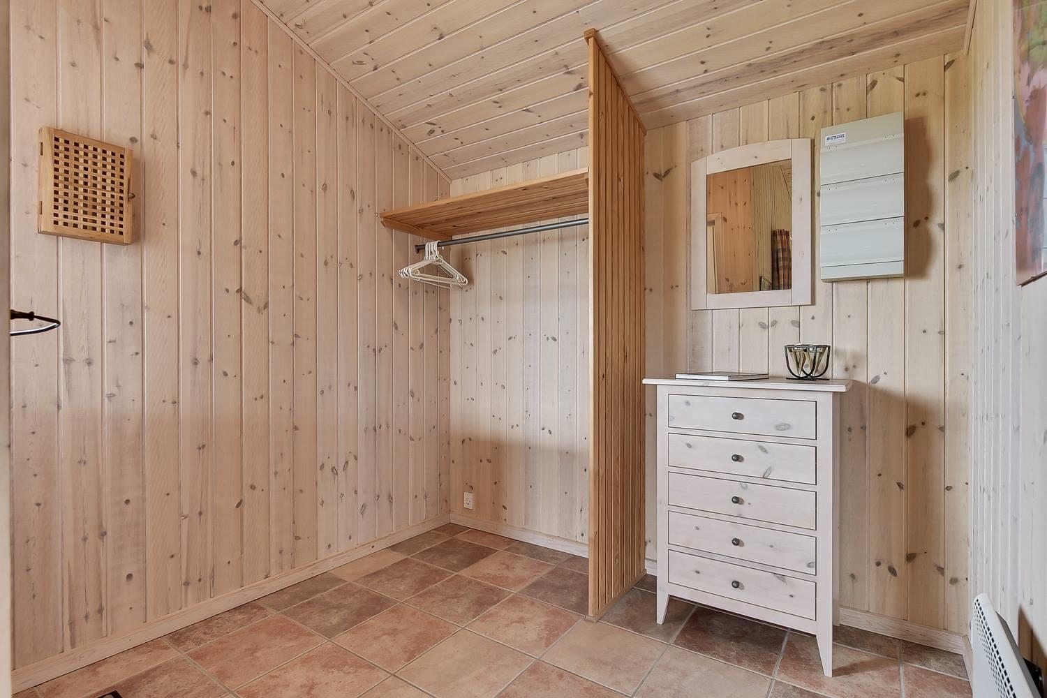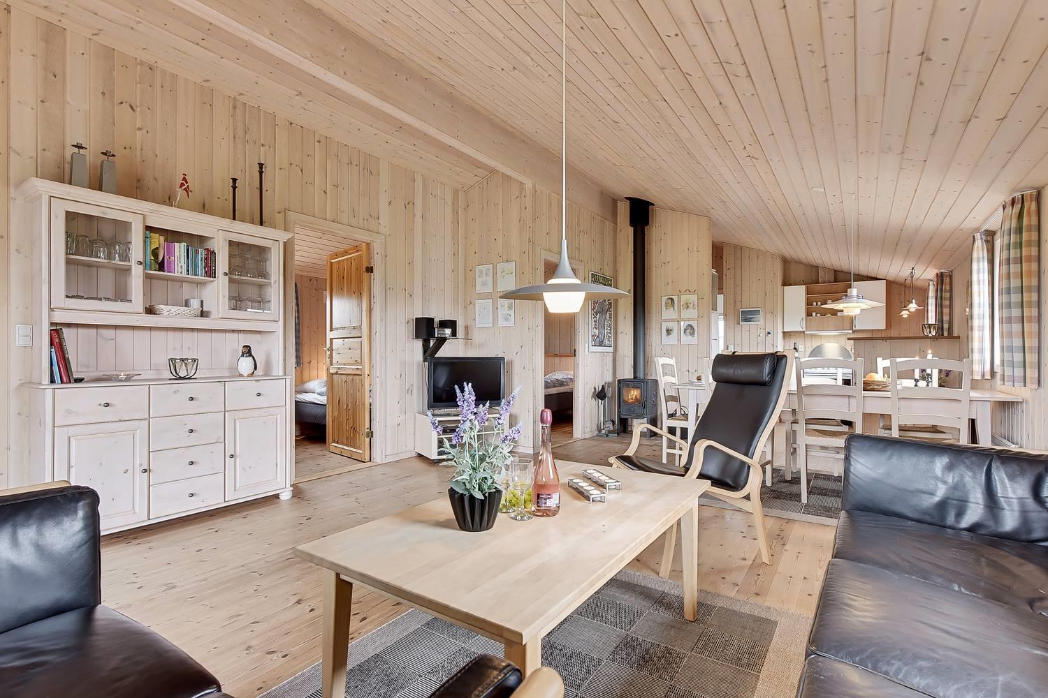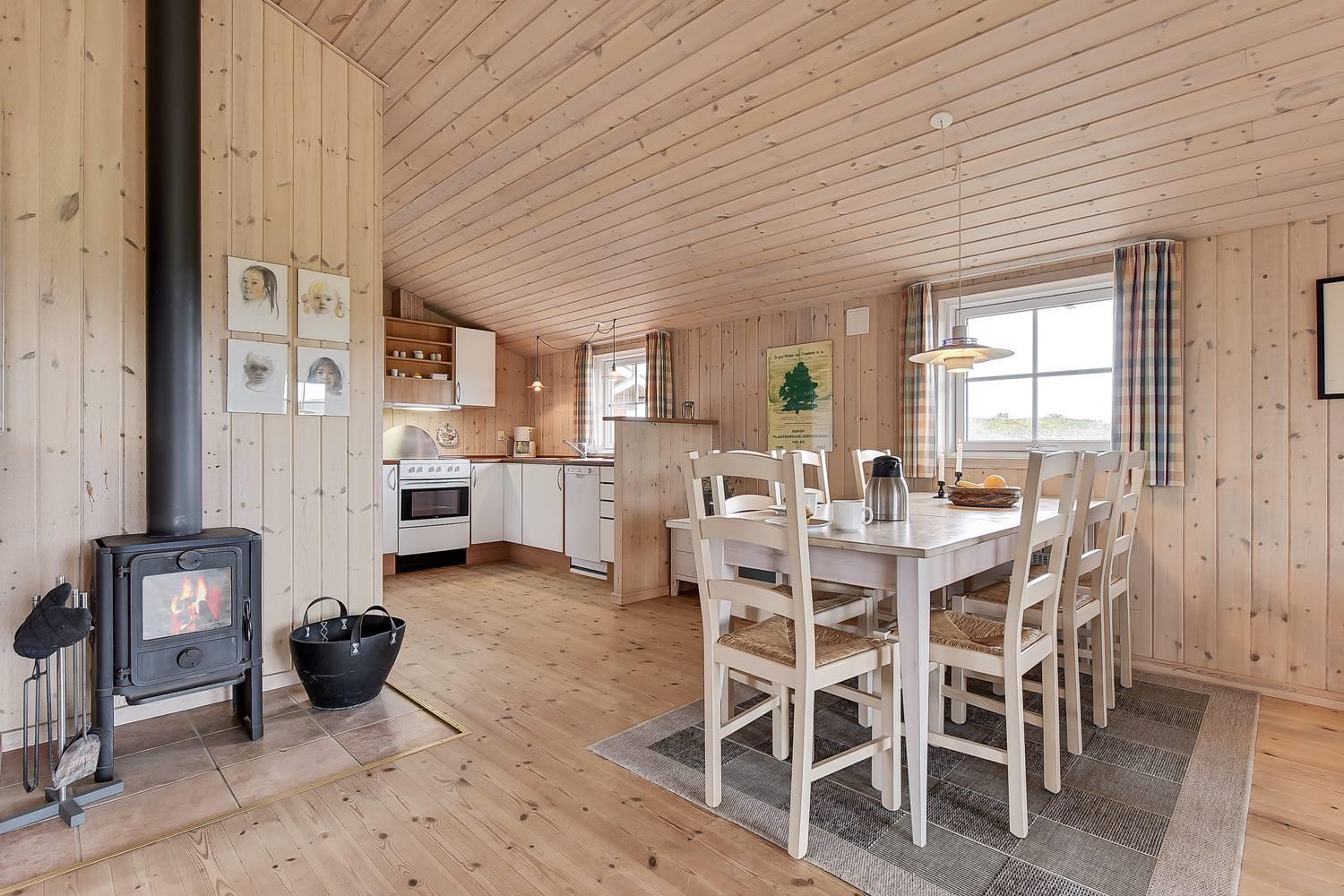 Et rigtig godt muret feriehus, beliggende på en lyngklædt grund grænsende op til stort friareal. Entre med god plads til overtøj m.v. og herfra adgang til stue med moderne og gode møbler. Hele huset har trægulve og fremstår overalt lyst og venligt. Terrasse på 2 sider af huset mod syd og vest.