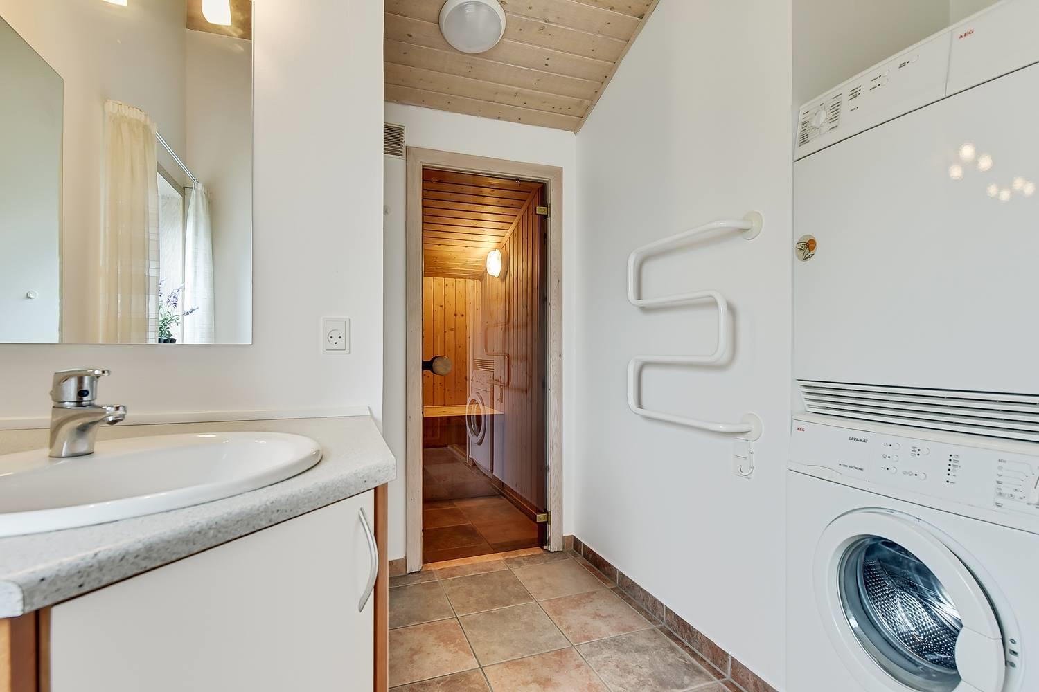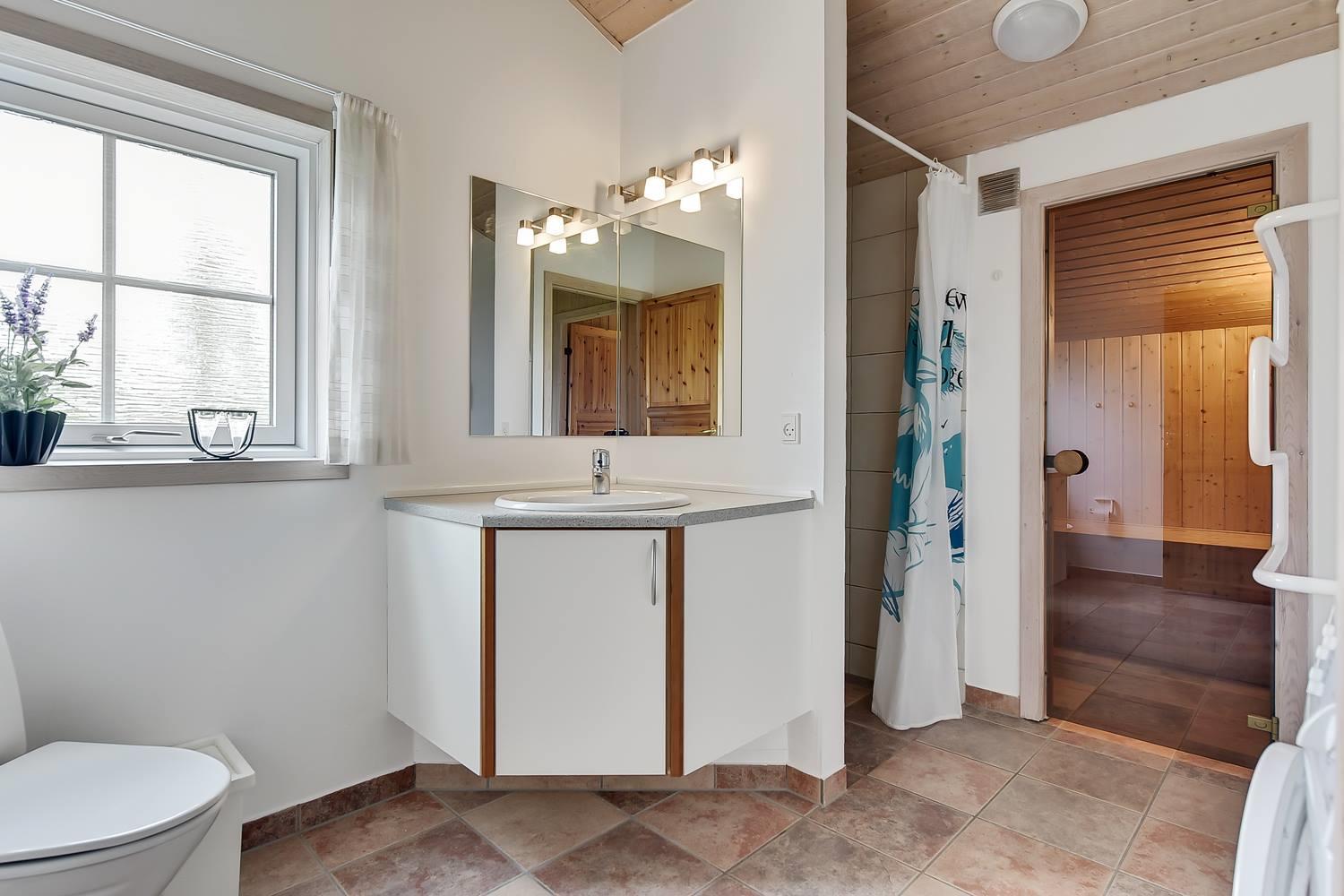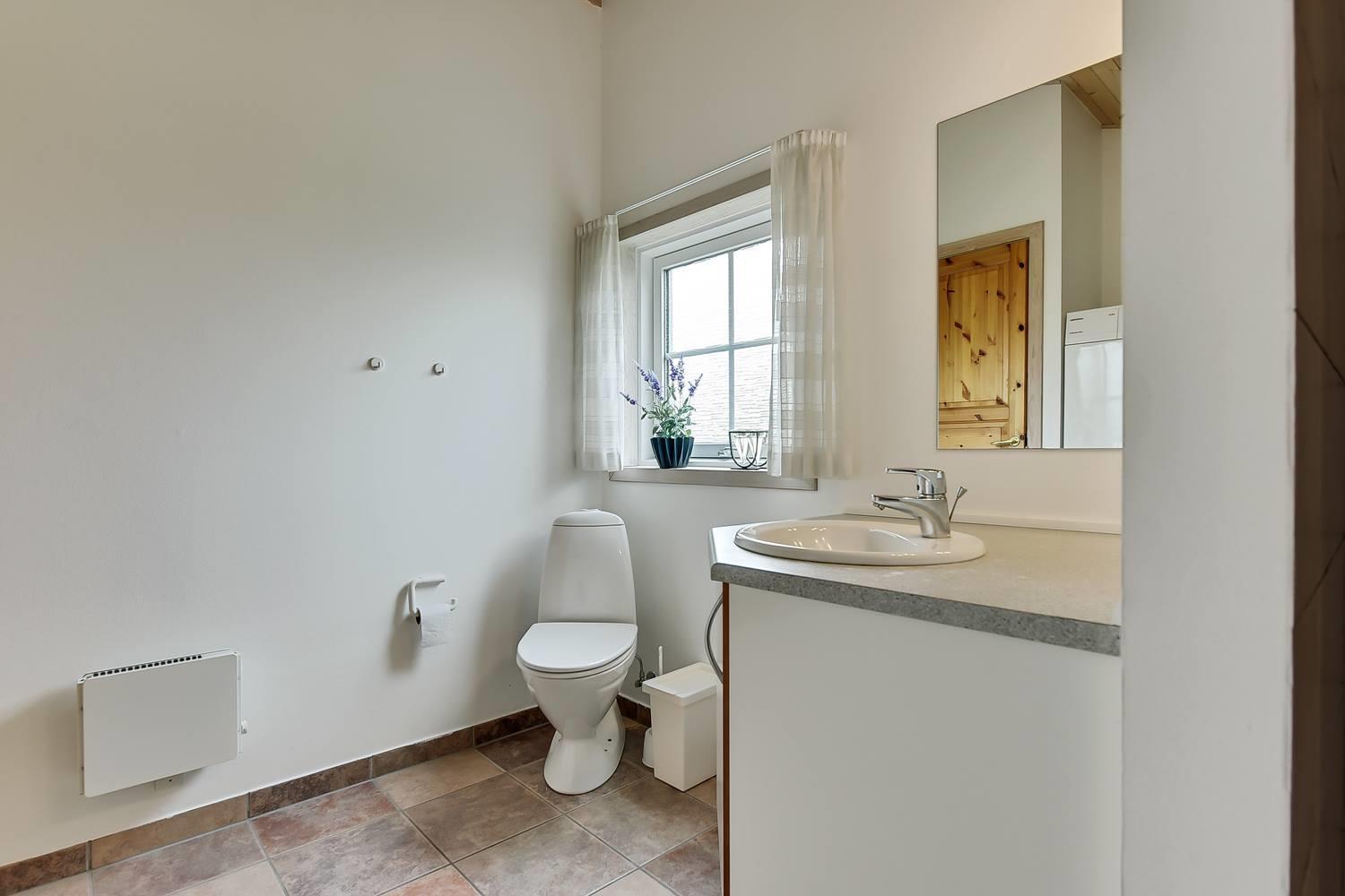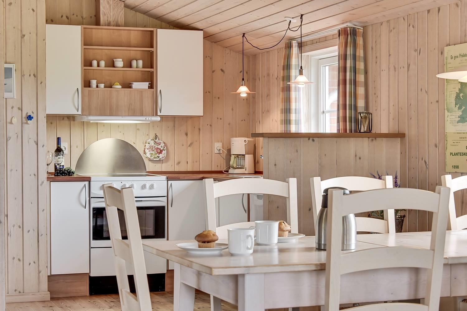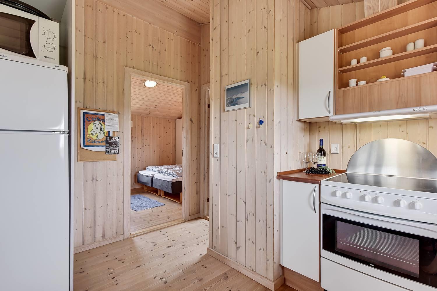 Et rigtig godt muret feriehus, beliggende på en lyngklædt grund grænsende op til stort friareal. Entre med god plads til overtøj m.v. og herfra adgang til stue med moderne og gode møbler. Hele huset har trægulve og fremstår overalt lyst og venligt. Terrasse på 2 sider af huset mod syd og vest.