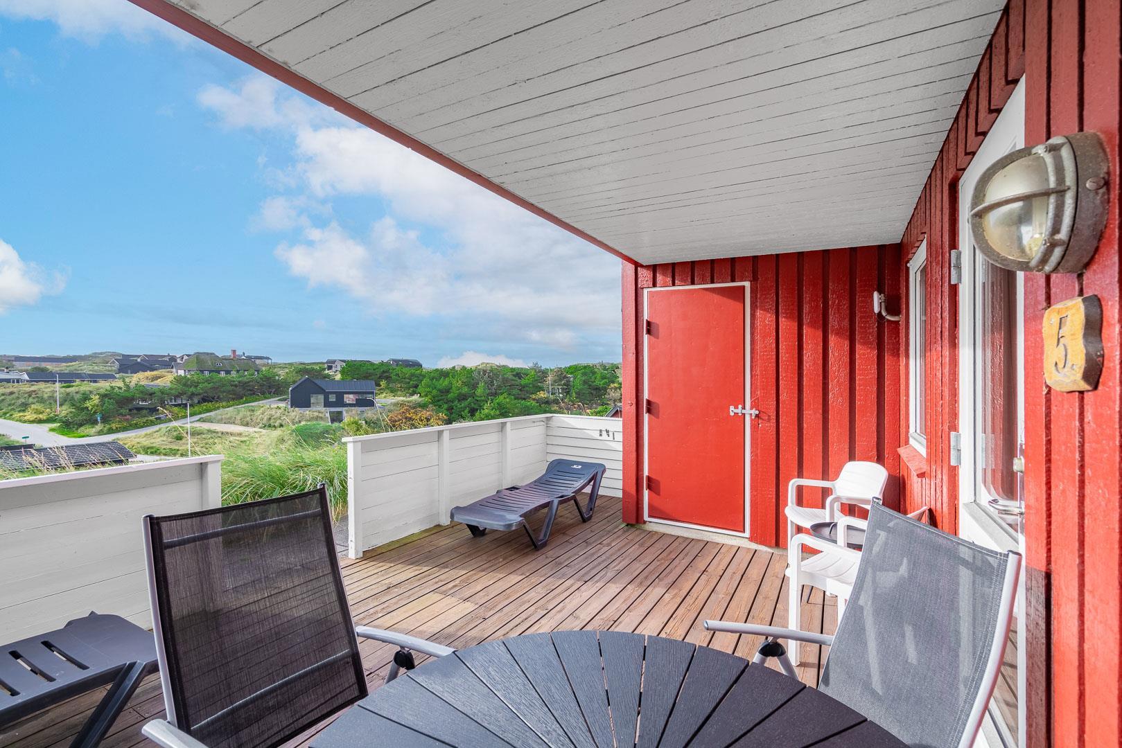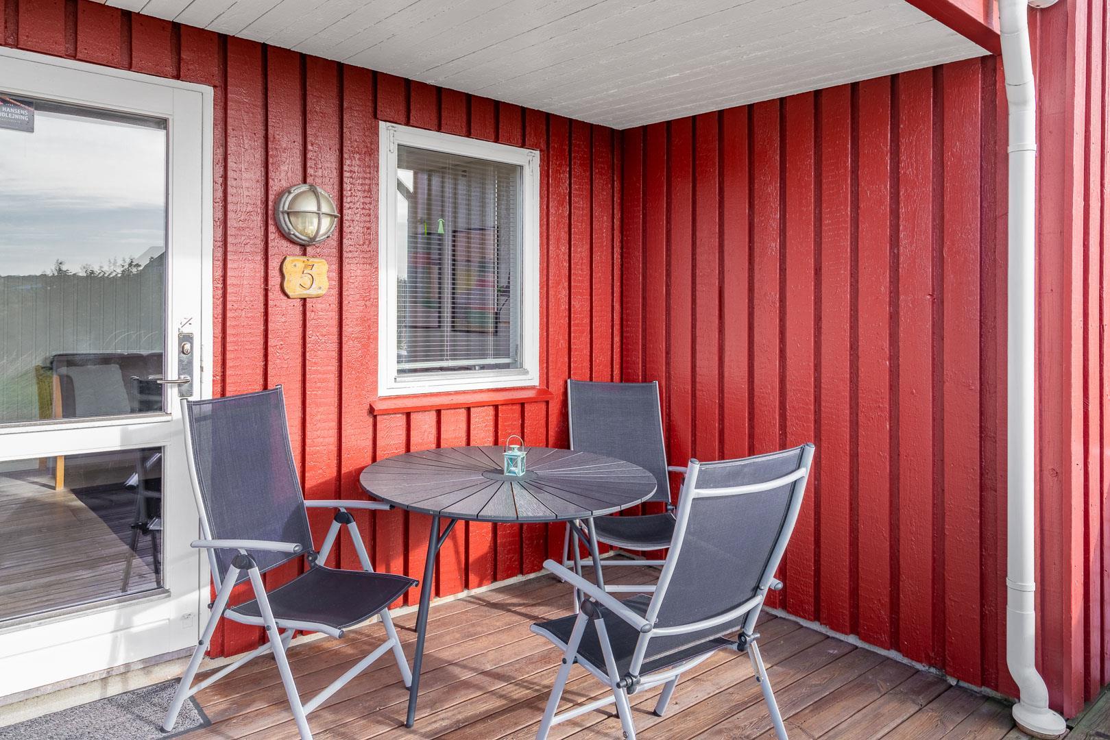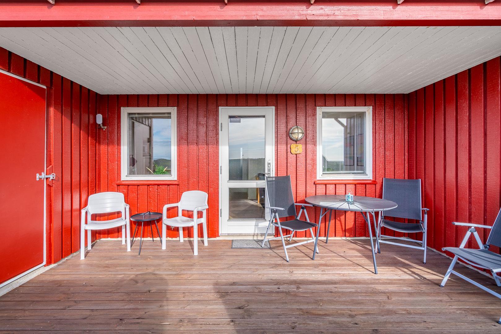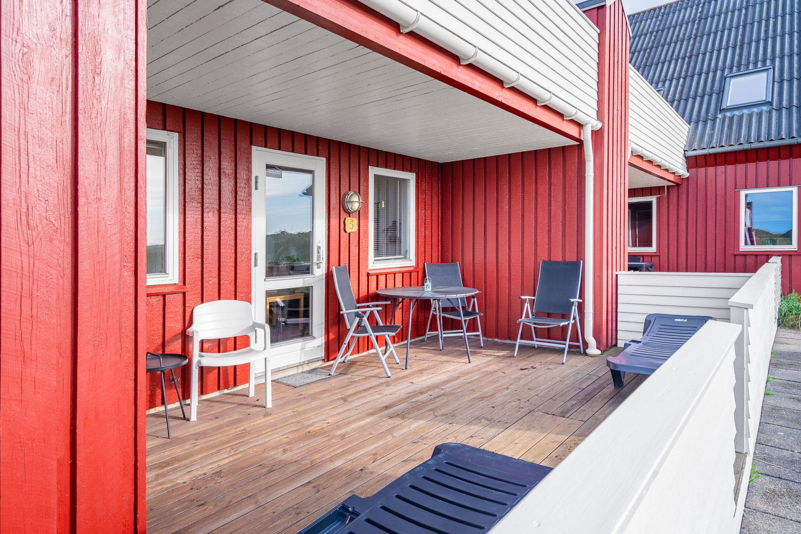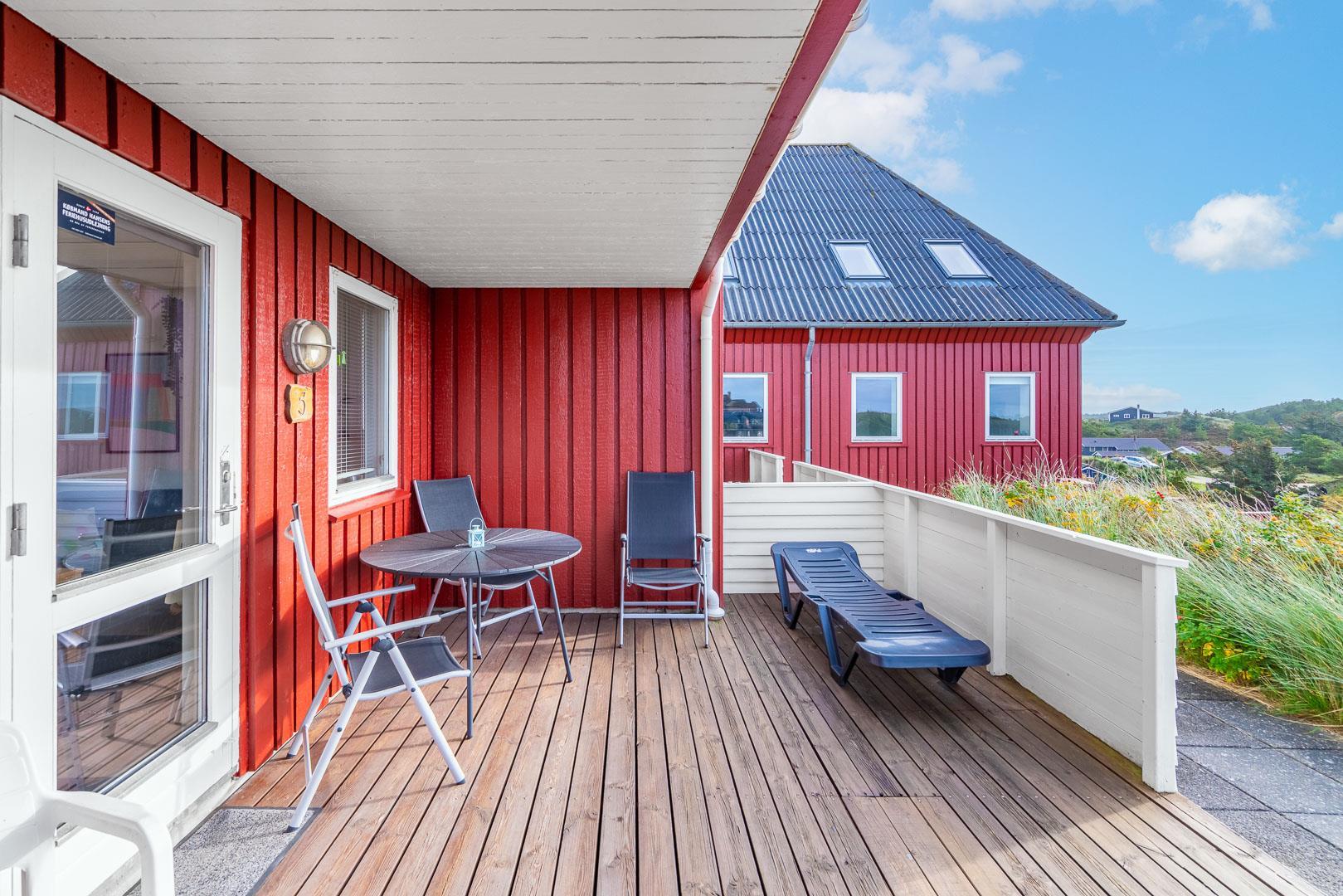 Her kan du nyde solen i liggestole eller slappe af i de bløde havemøbler – og med et lille hegn omkring terrassen, kan du trygt tage hunden med.