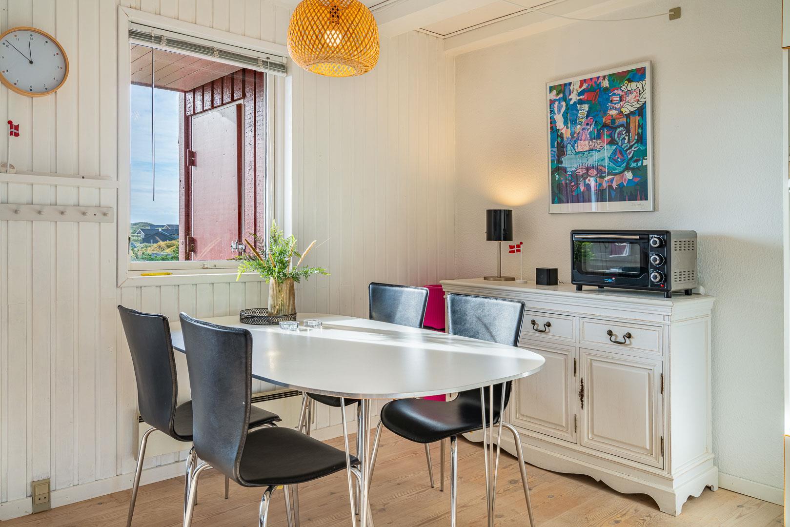 Lejligheden er indrettet i en lys og imødekommende stil med komfortable møbler og alle nødvendige faciliteter til en god ferie – uanset årstid.