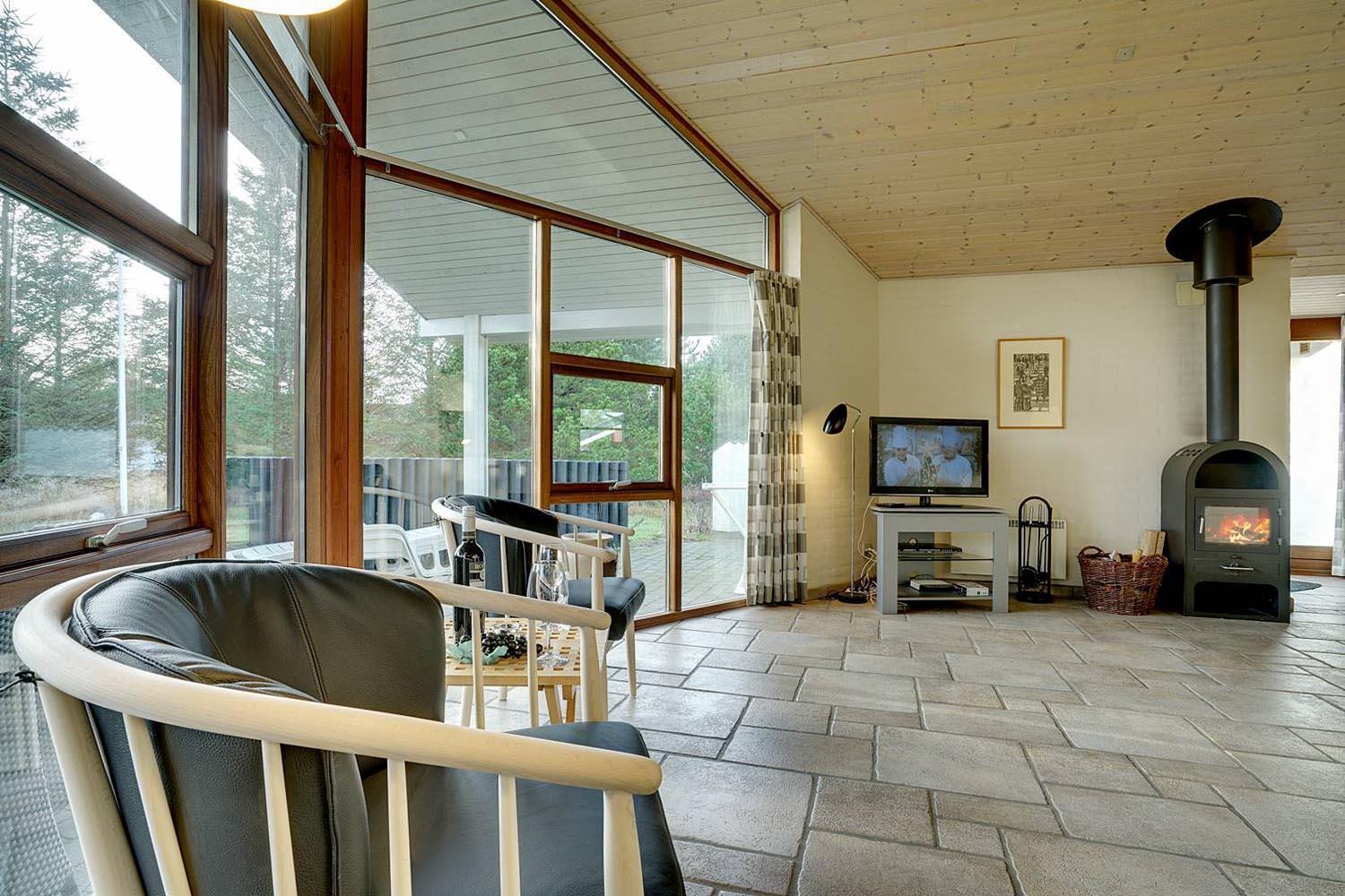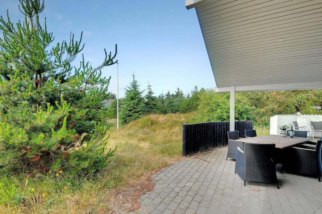 Dette pragtfulde rummelige feriehus opført i de bedste materialer, beliggende på en dejlig stor naturgrund helt ud til stort fredet hedeområde. Huset er komfortabelt og praktisk indrettet og har et lækkert og komfortabelt møblement. Fra husets store lyse stue er der direkte udgang til både delvis overdækket, muret og åben ugenert terrasse.