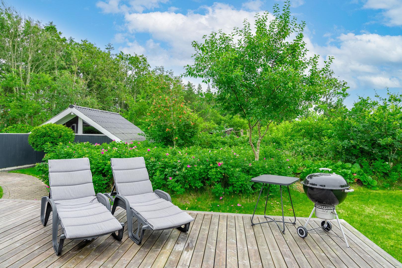 Udendørs venter et dejligt område, hvor du kan slappe af og nyde ferien. Den lukkede terrasse er perfekt til børnefamilier og giver både tryghed og privatliv.