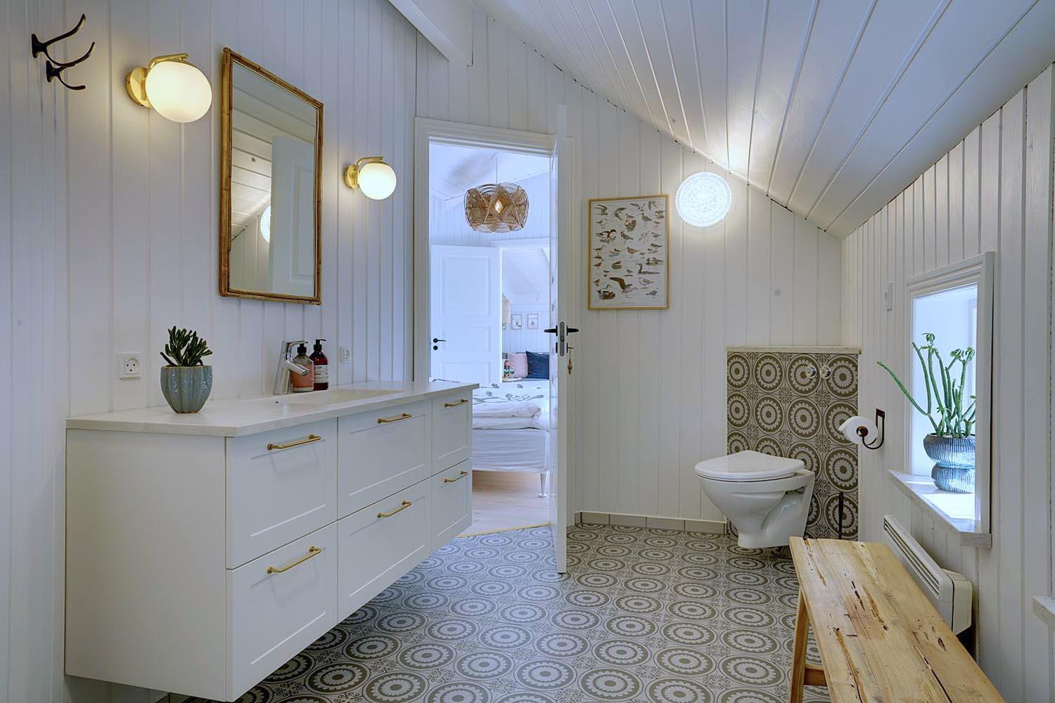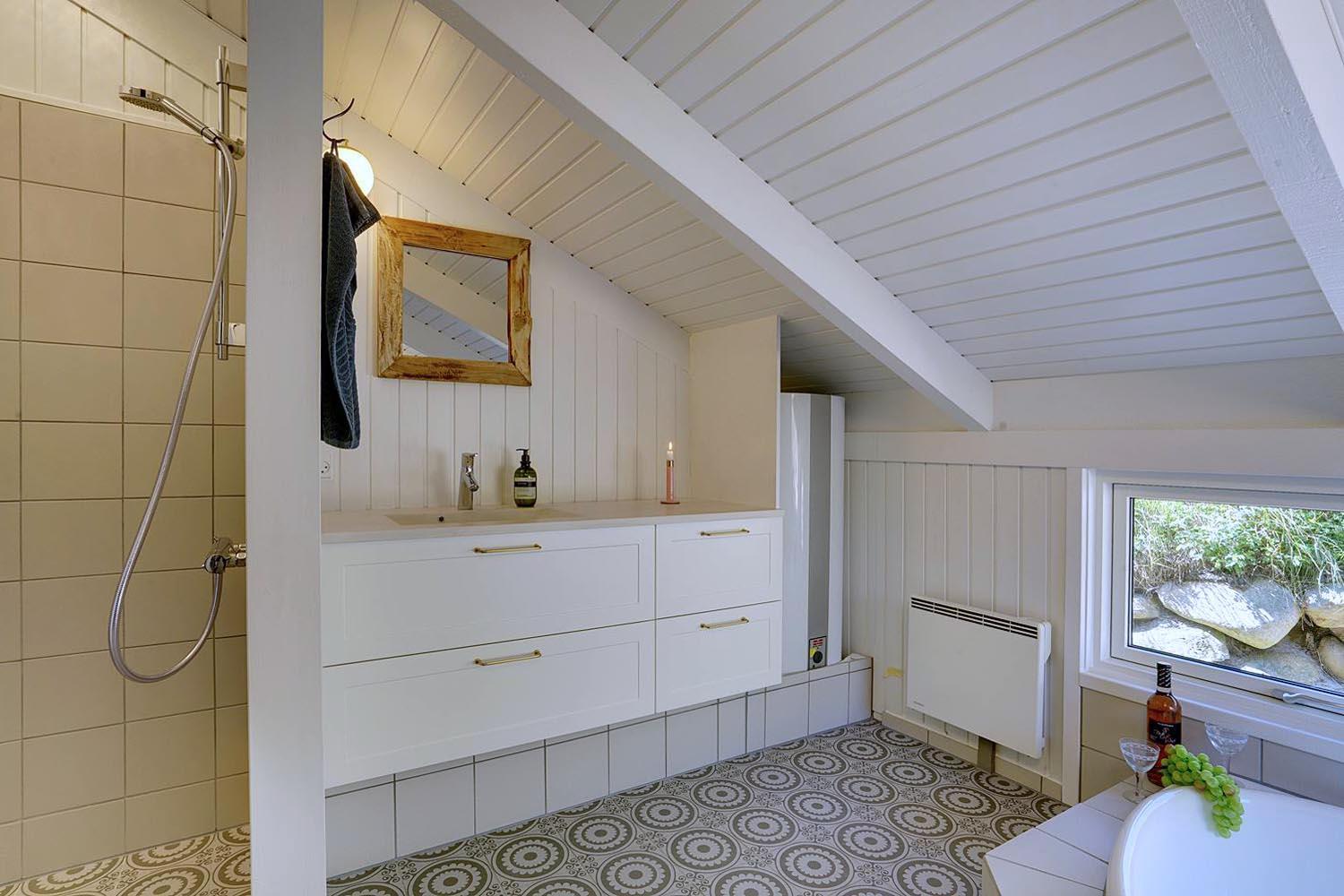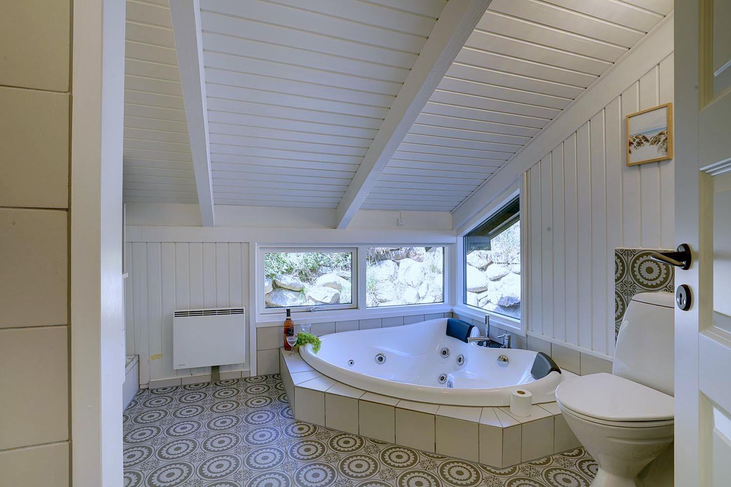 Huset rummer to moderne badeværelser, hvoraf det ene er udstyret med både spa og sauna – en luksus der gør ferien ekstra afslappende, især efter en lang dag i naturen eller ved havet.