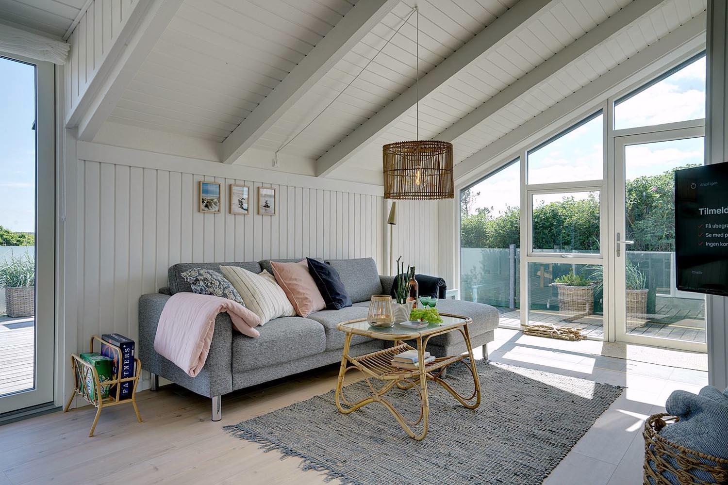 Indretningen er stilfuld med sans for detaljer, og samtidig præget af en varm og personlig atmosfære, hvor I straks føler jer hjemme. De store vinduer og lyse rum skaber en skøn ramme om afslapning og hyggelige timer, både sommer og vinter.