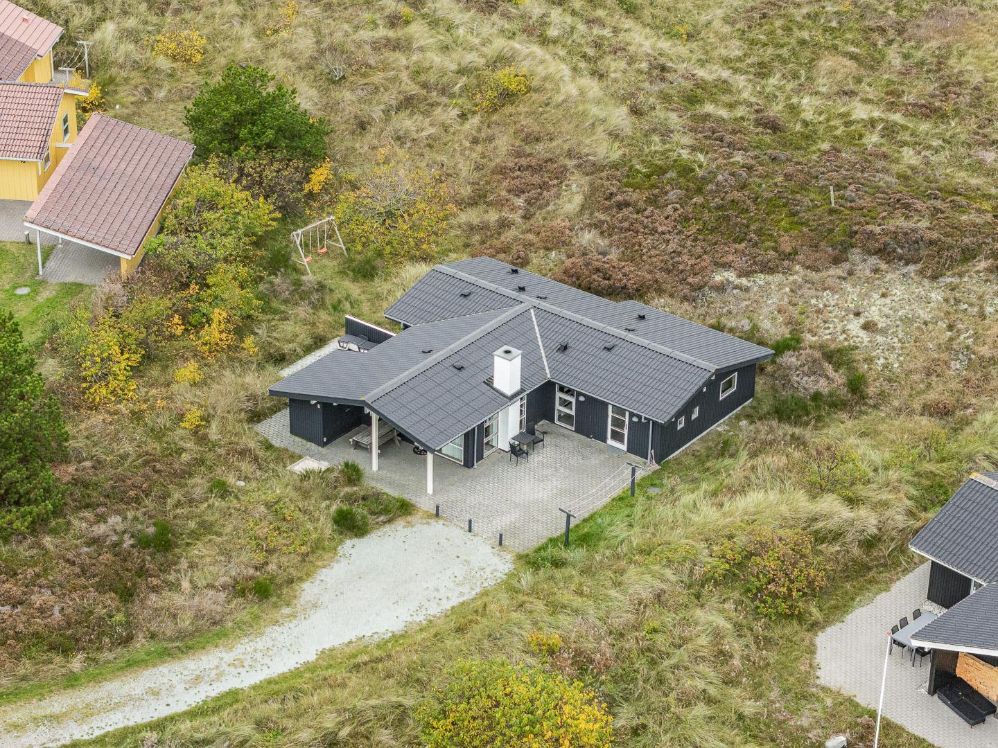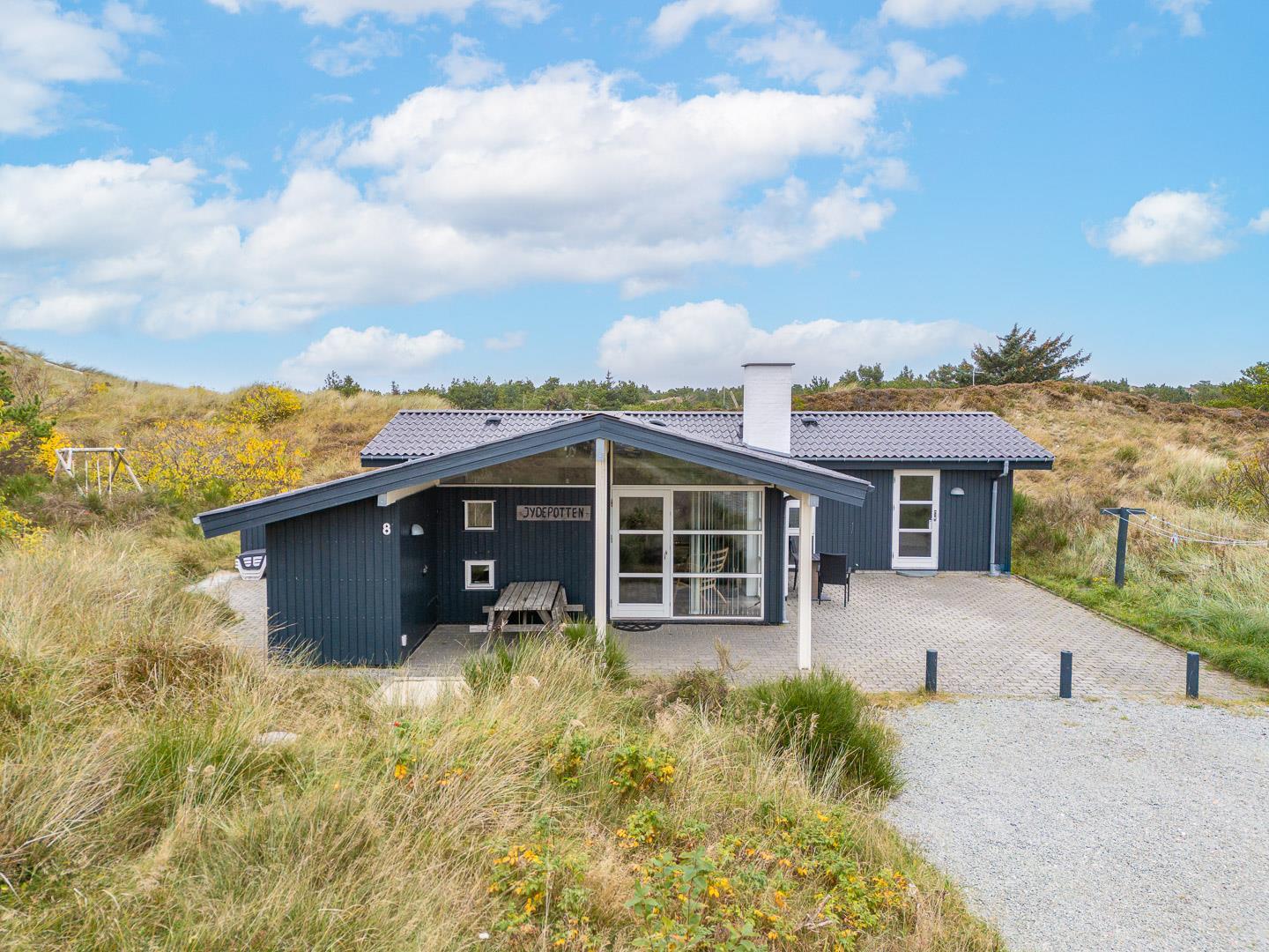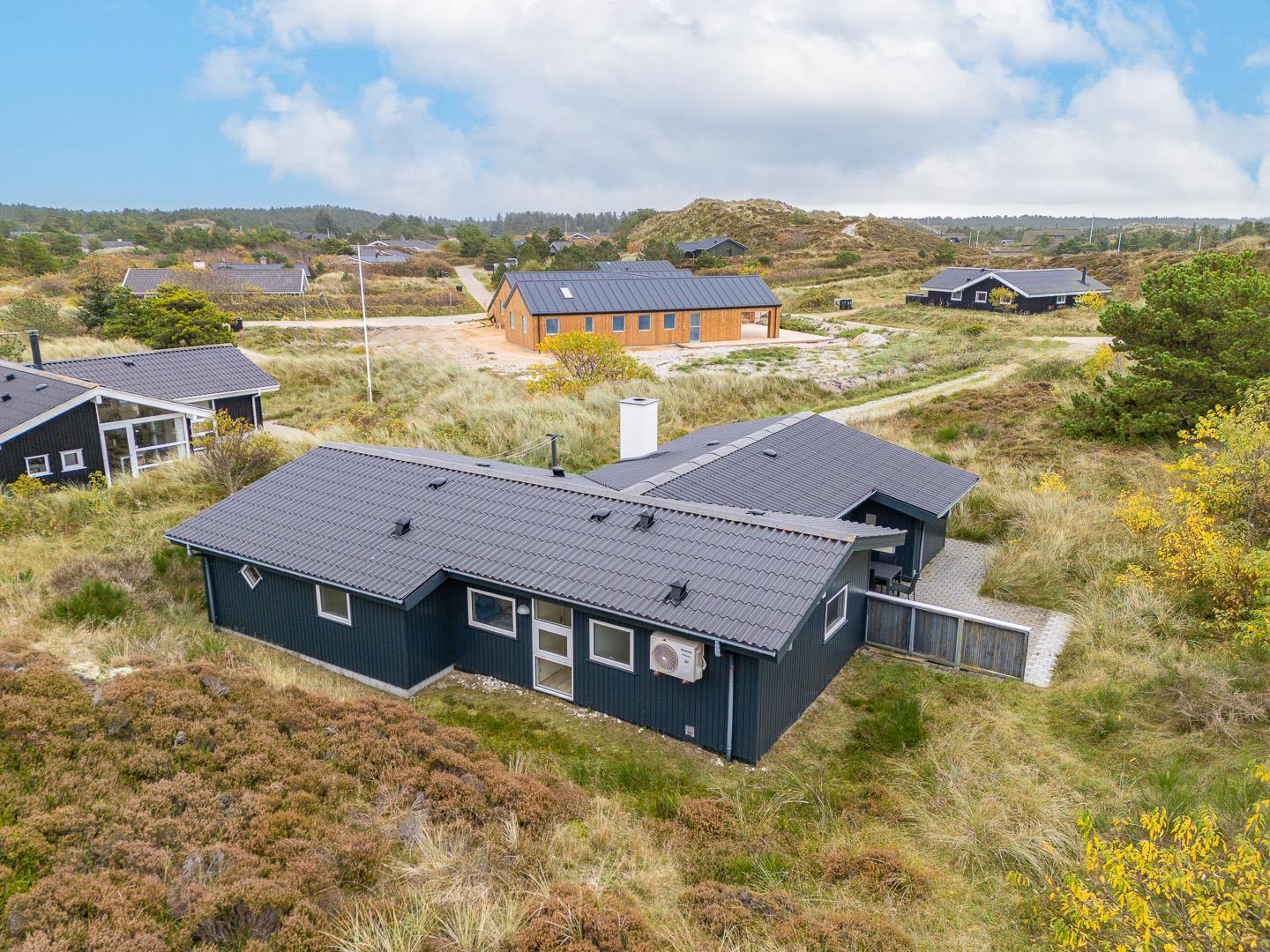 Charmerende feriehus i Henne Strand med sauna, brændeovn og to badeværelser på en ugeneret naturgrund.