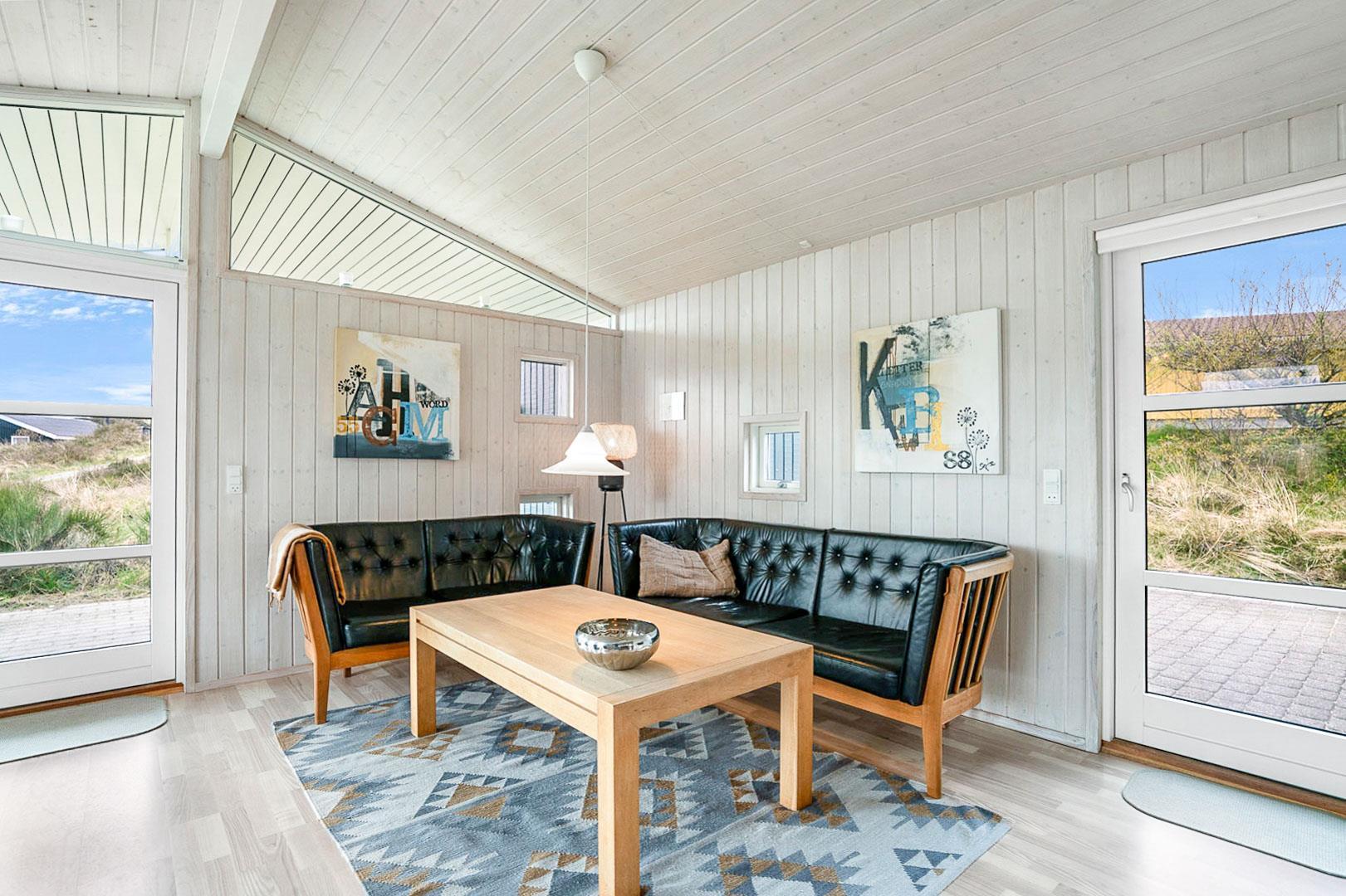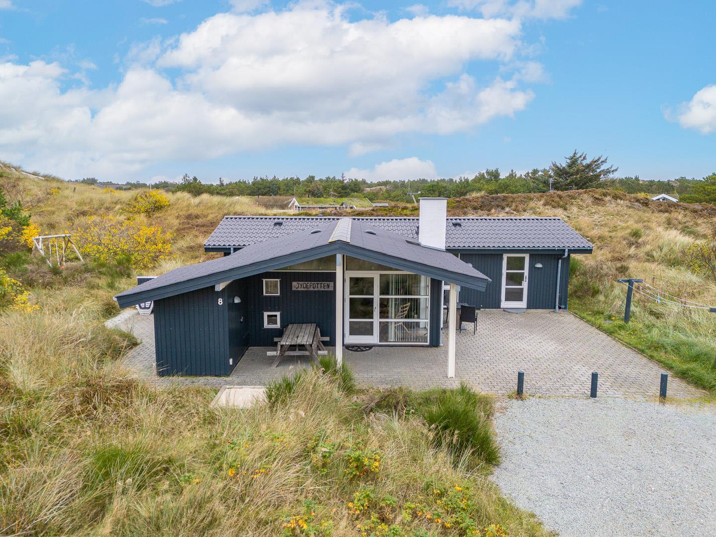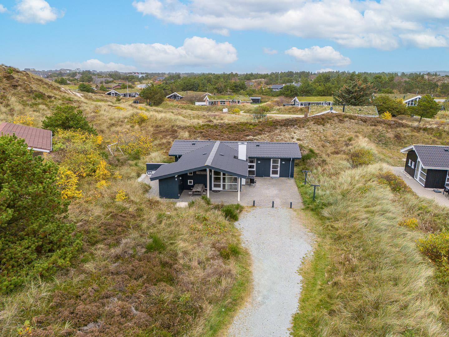Charmerende feriehus i Henne Strand med sauna, brændeovn og to badeværelser på en ugeneret naturgrund.