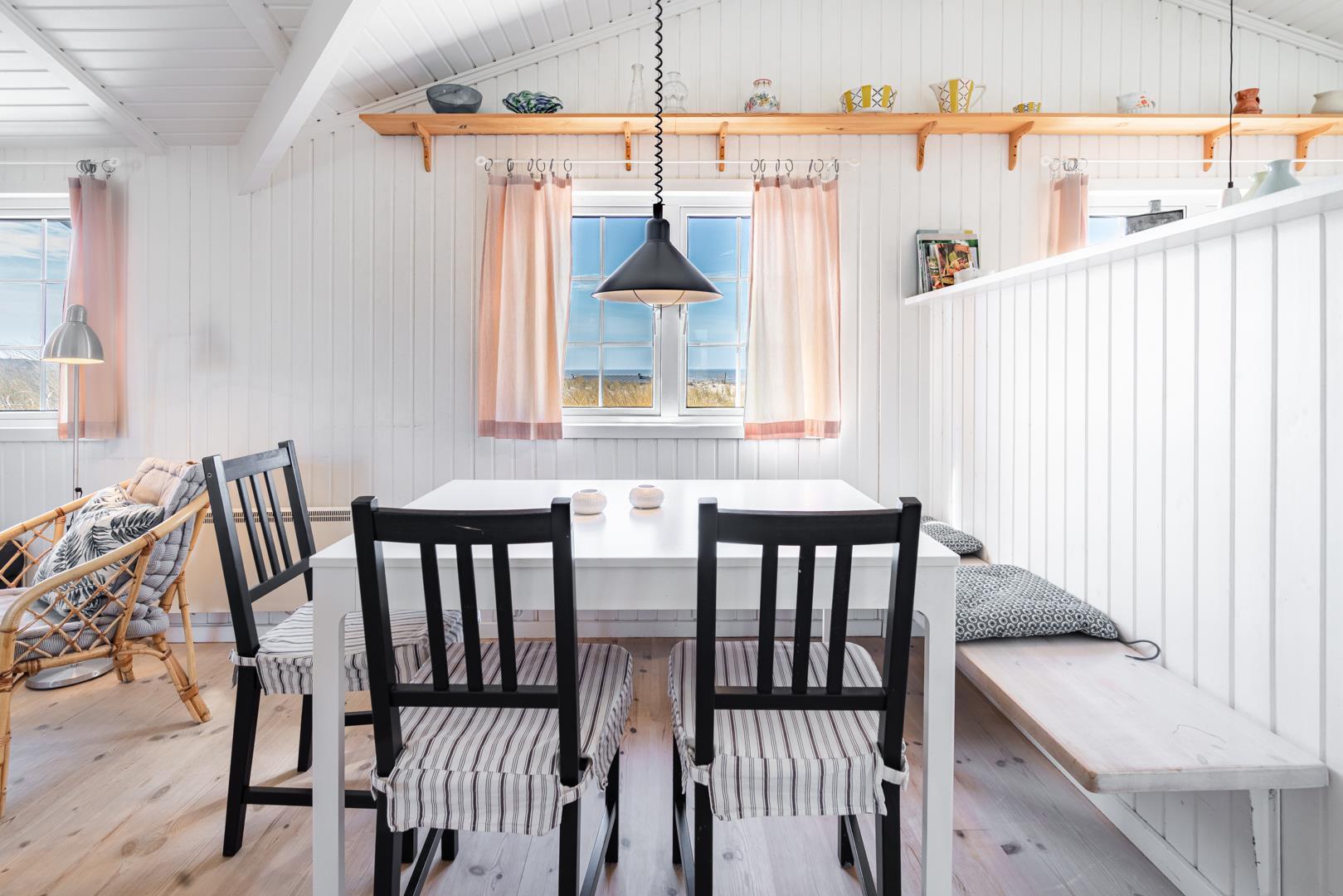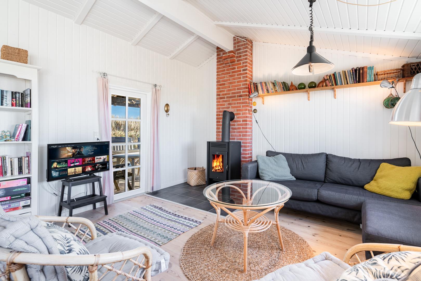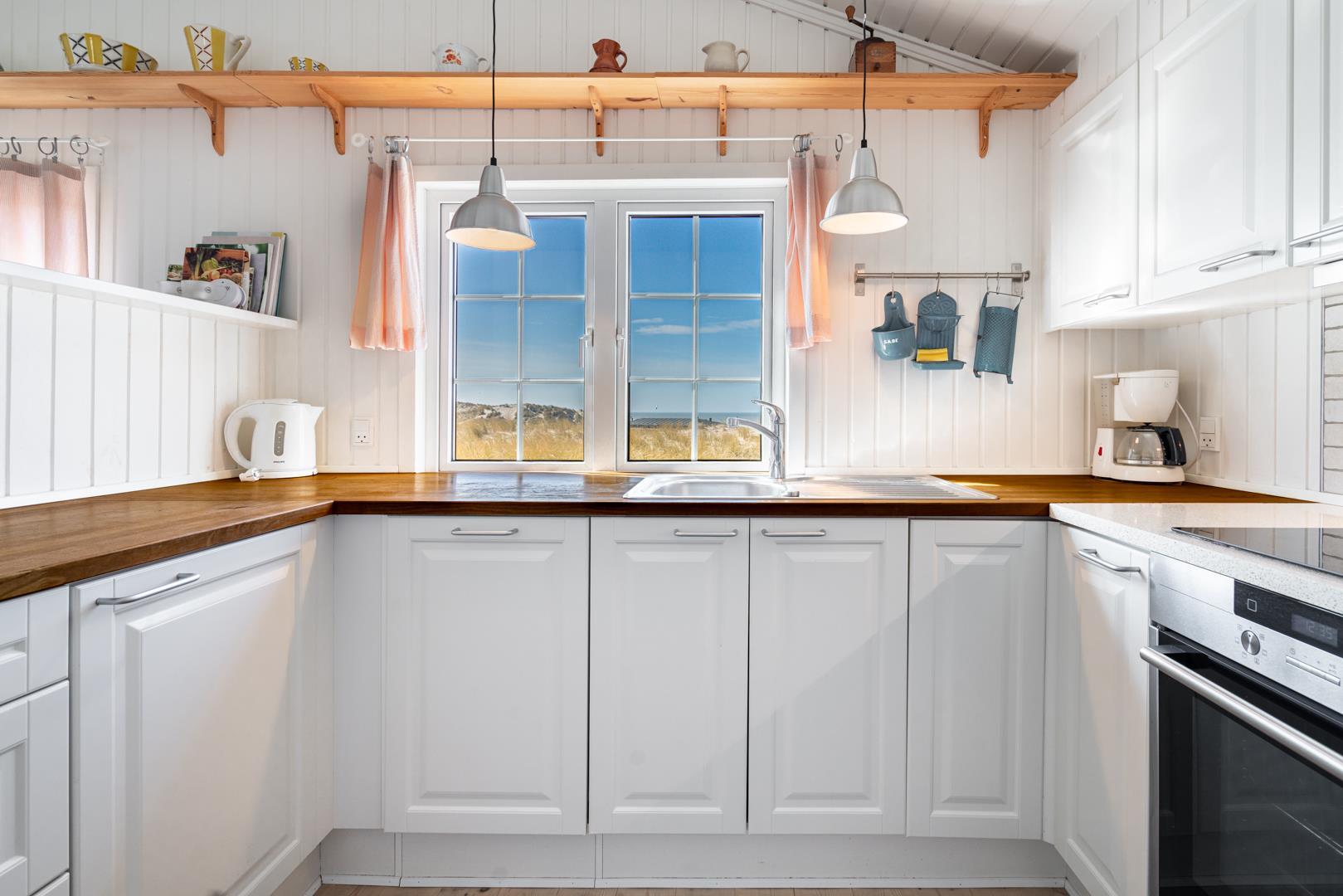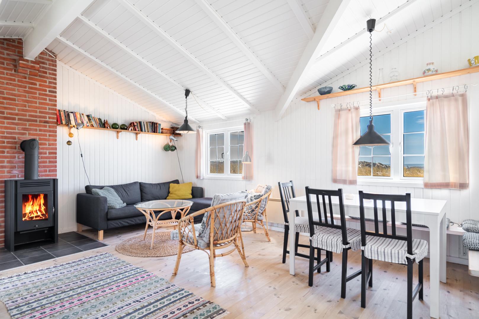 I allerforreste klitrække ved Henne Strand ligger dette charmerende og hyggeligt indrettede feriehus. Huset er løbende blevet moderniseret. Huset er indrettet med et flot køkken som er i åben forbindelse med den lyse stue. Den store stue er indrettet med komfortable møbler. Flot badeværelse samt 3 gode og rummelige soverum. Omkring huset er der skønne ugenerede solterrasser. Et pragtfuld feriehus indrettet med et personligt og stilfuldt præg. Her i dette feriehus er rammerne til stede for en god ferie. Det er muligt at parkere ved huset.