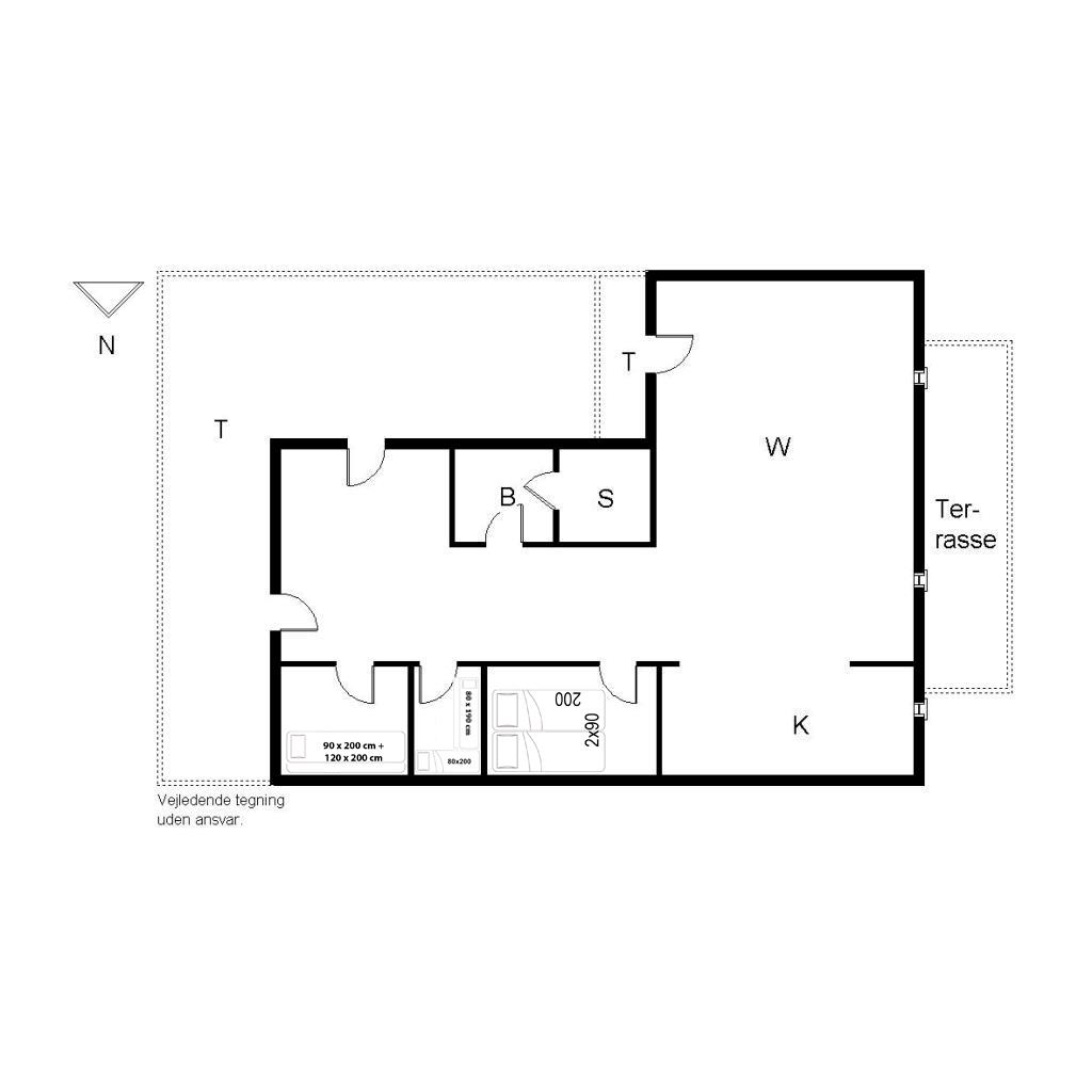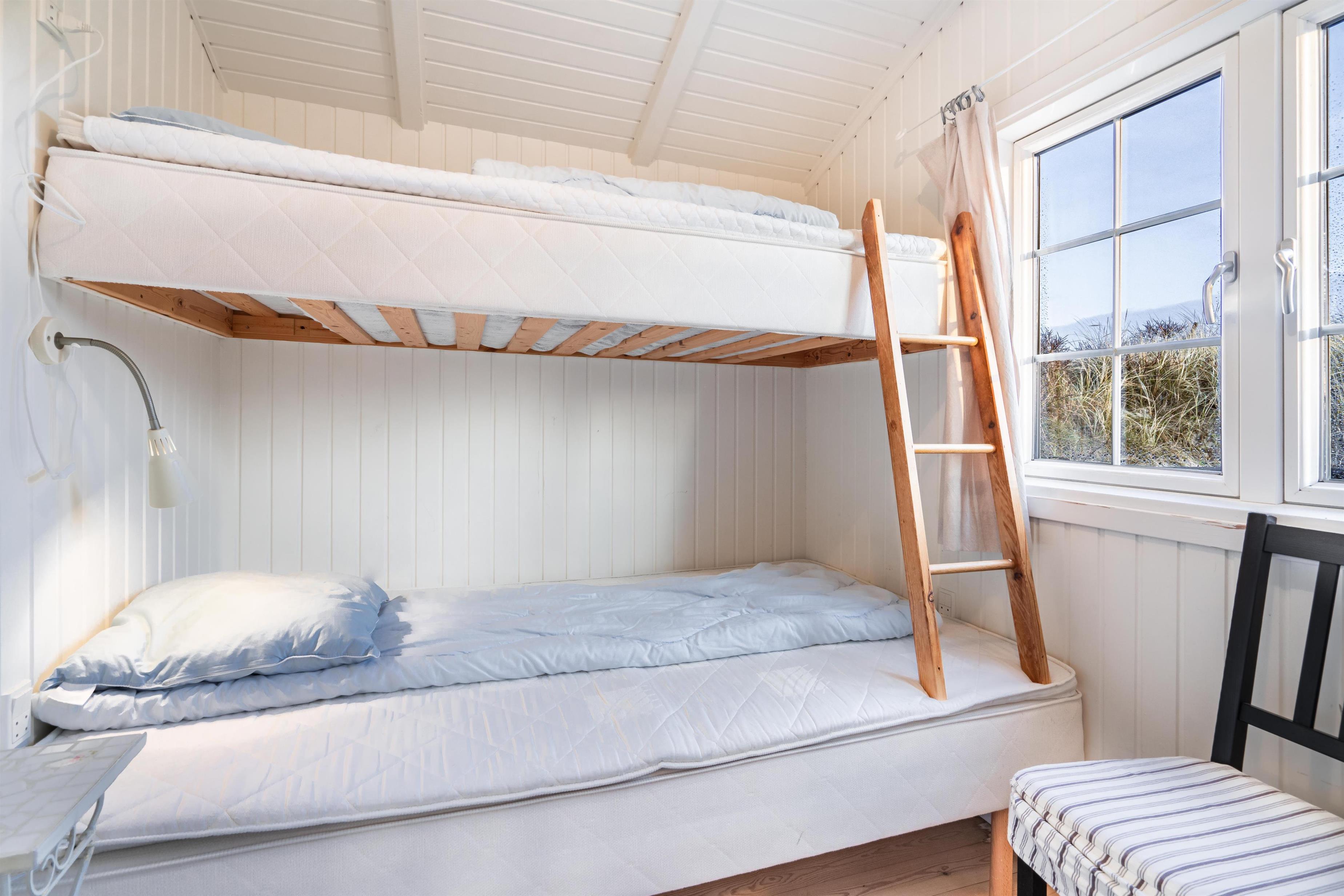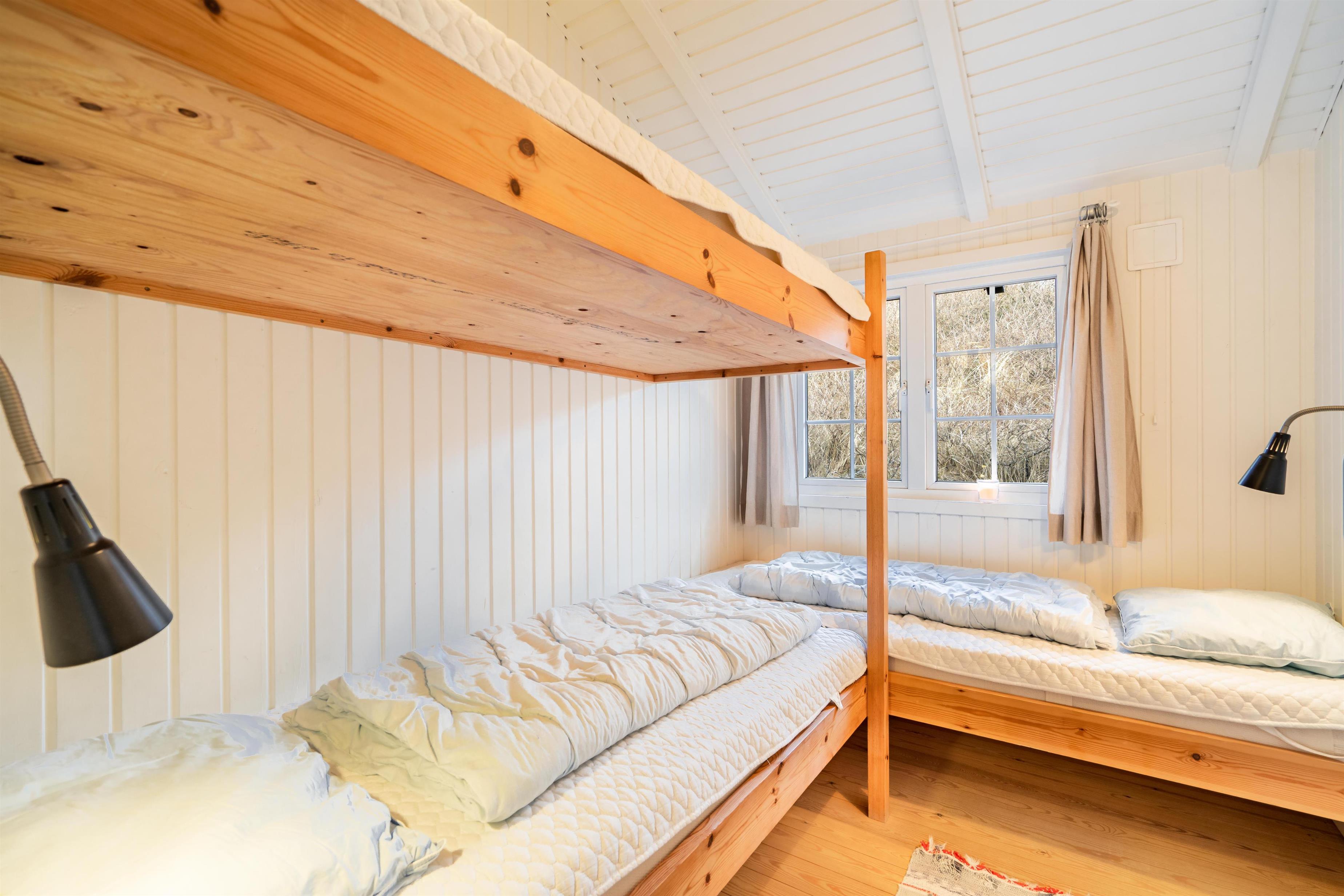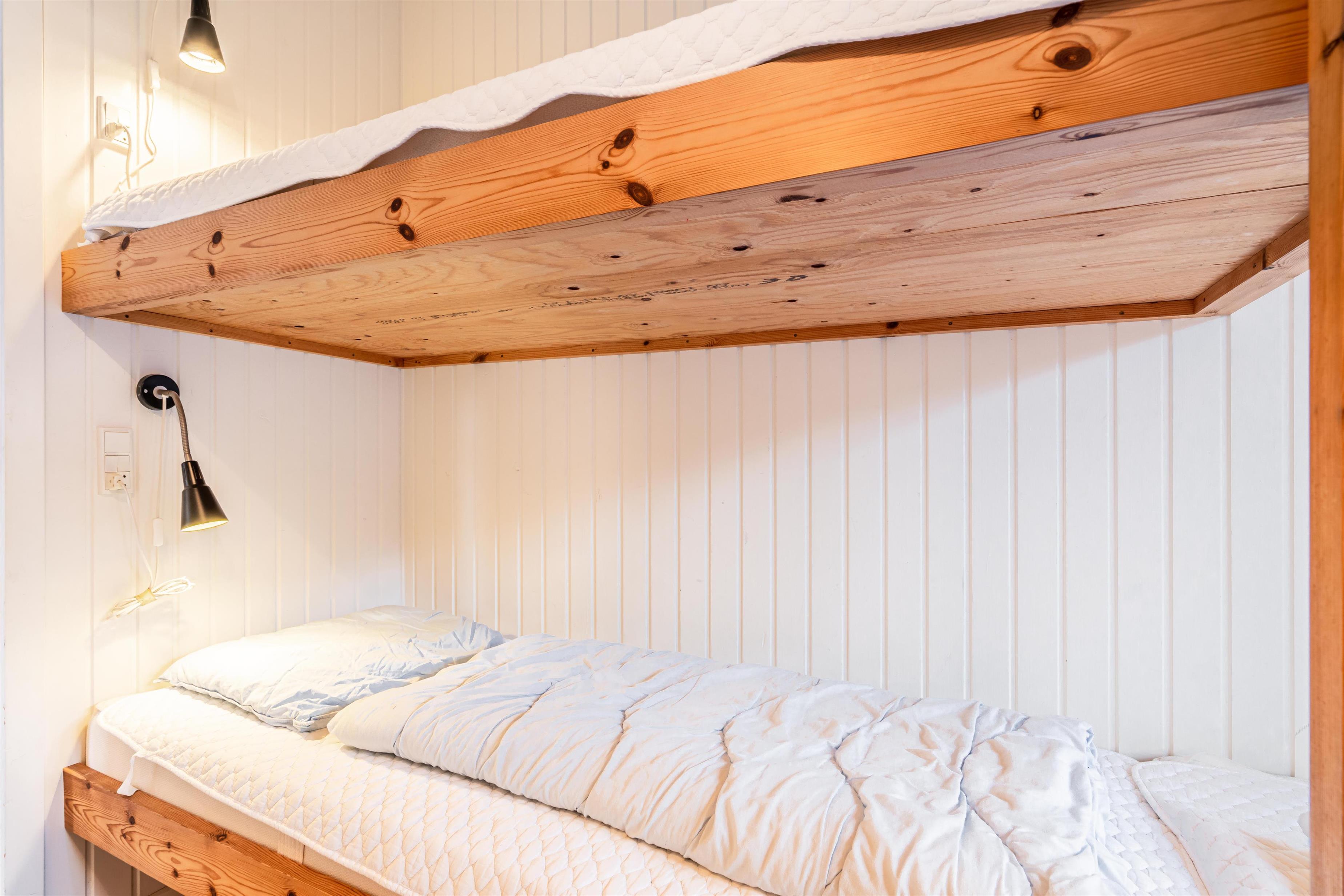 Sengestørrelser: 1 dobbeltseng med 2 madrasser 90 x 200 cm + 1 køjeseng 80 x 190 cm + 1 enkeltseng 80 x 200 cm + 1 køjeseng med øverste madras på 90 x 200 cm og nederste madras på 120 x 200 cm.