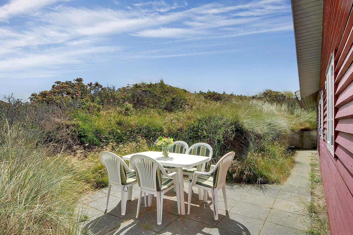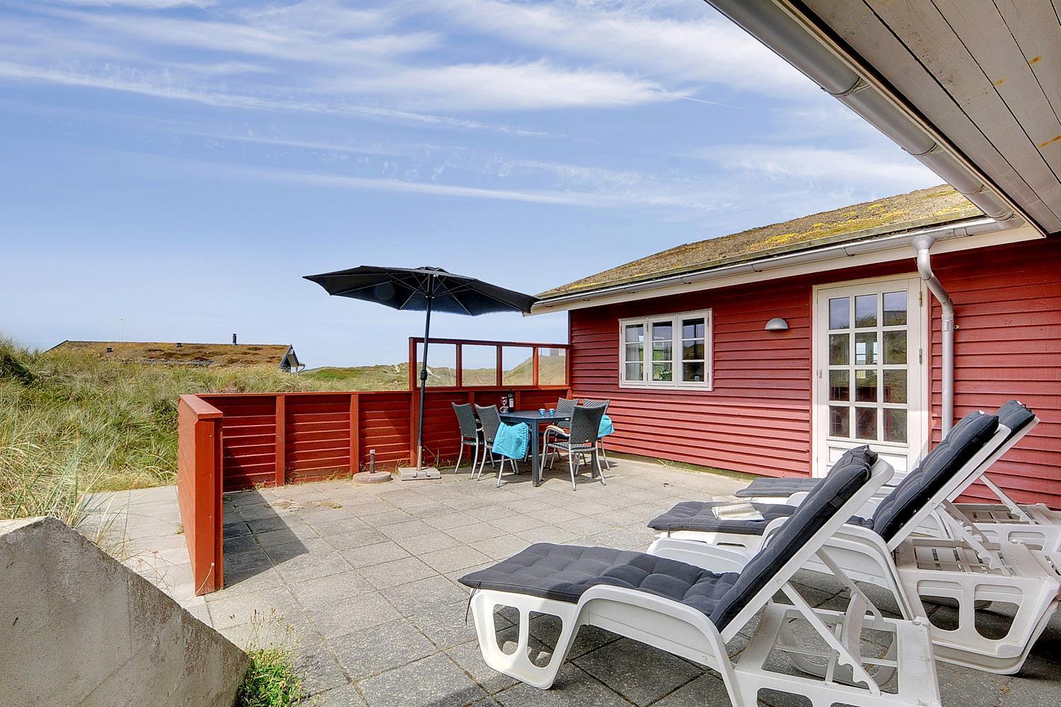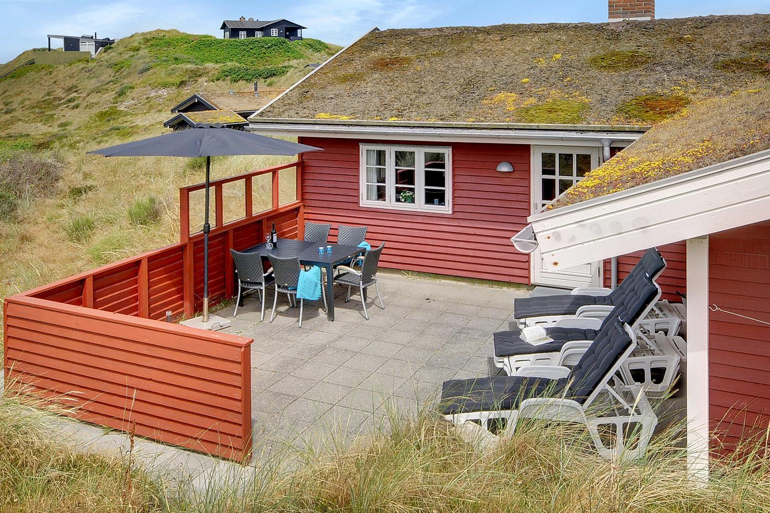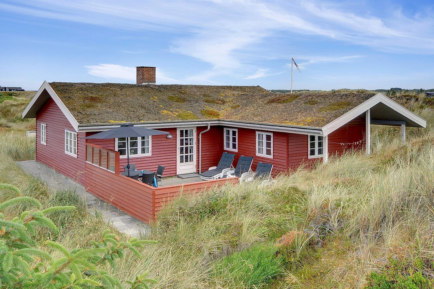 Dejligt, lyst og velindrettet feriehus beliggende på en pragtfuld kuperet klitgrund tæt ved vandet. Huset er løbende blevet renoveret. Stort dejligt badeværelse med sauna. og rummelig stue som ligger i åben forbindelse med køkkenet. Fra stuen er der udgang til skøn terrasse, hvorfra der en fantastisk udsigt ud over klitområdet.