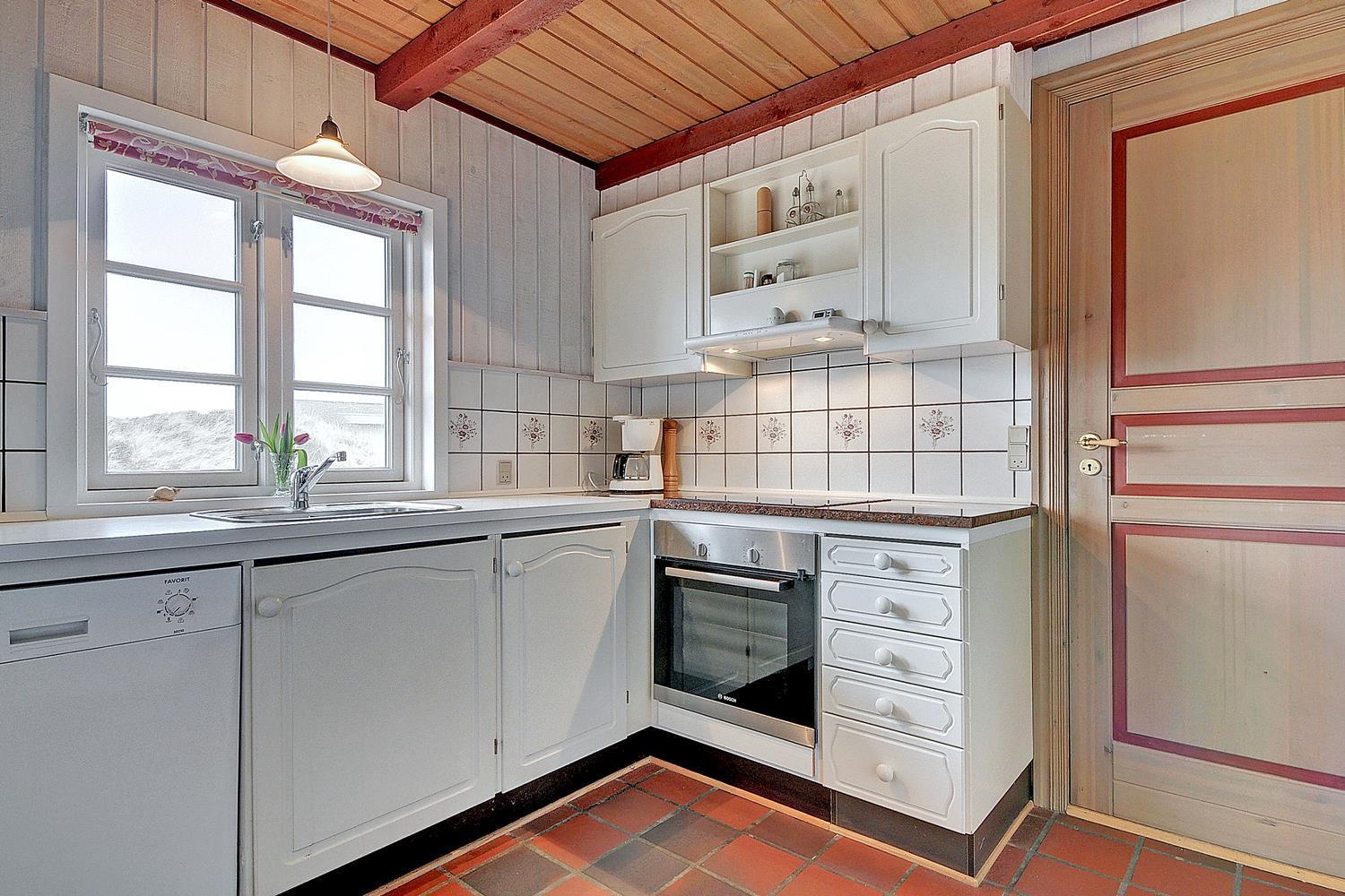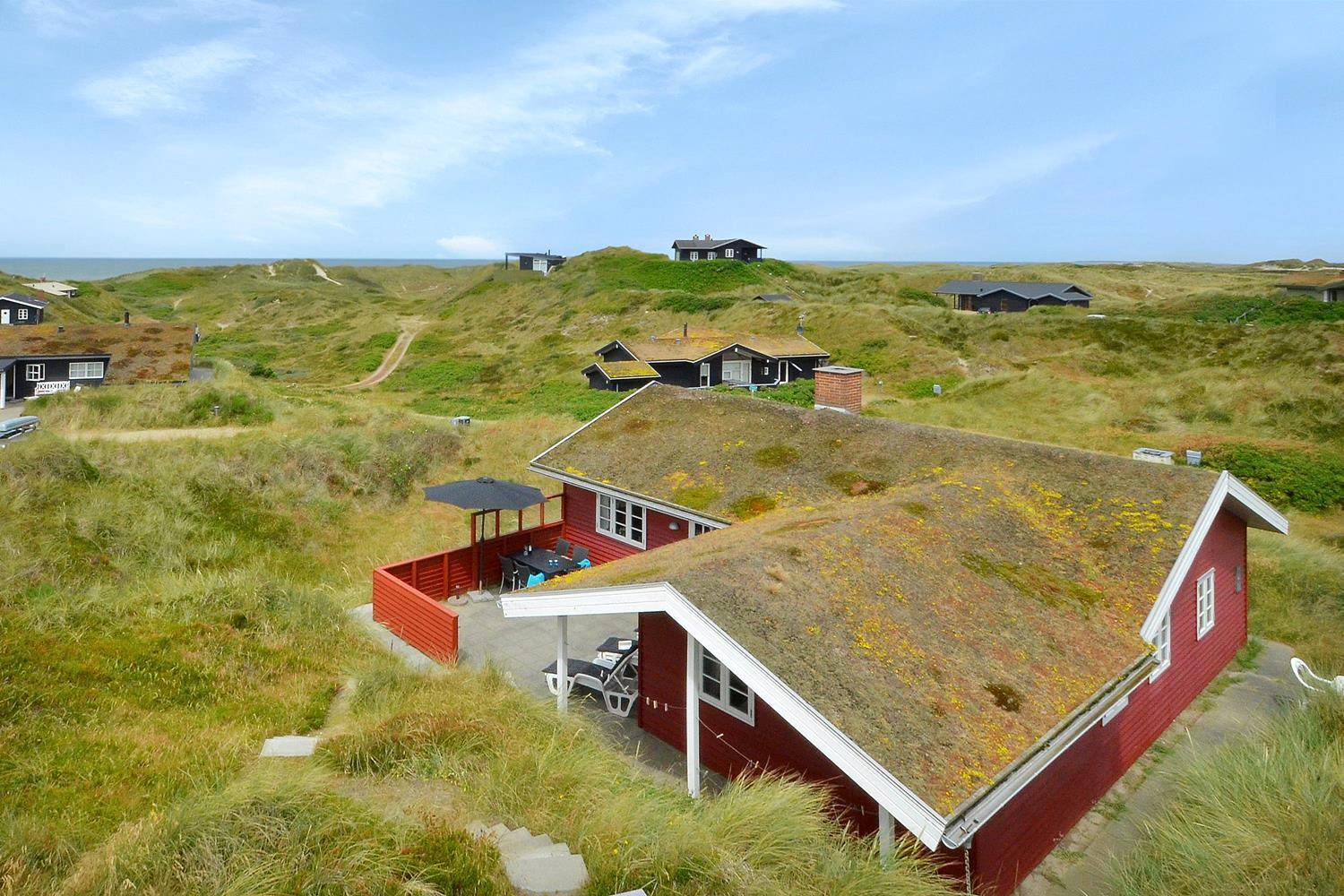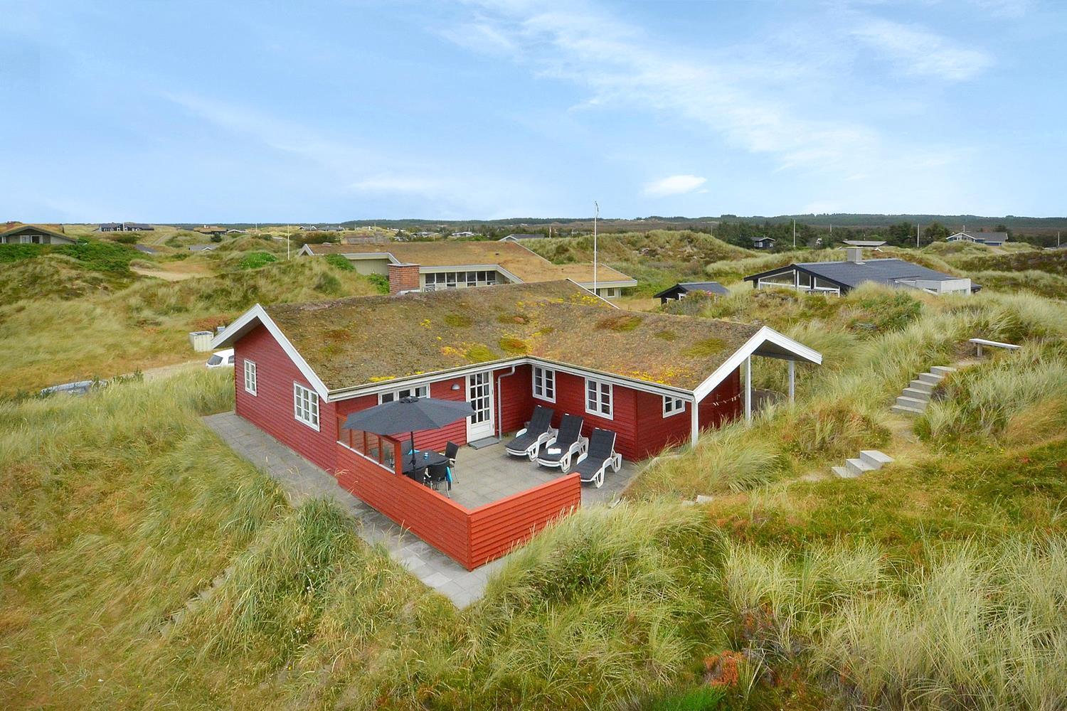 Dejligt, lyst og velindrettet feriehus beliggende på en pragtfuld kuperet klitgrund tæt ved vandet. Huset er løbende blevet renoveret. Stort dejligt badeværelse med sauna. og rummelig stue som ligger i åben forbindelse med køkkenet. Fra stuen er der udgang til skøn terrasse, hvorfra der en fantastisk udsigt ud over klitområdet.