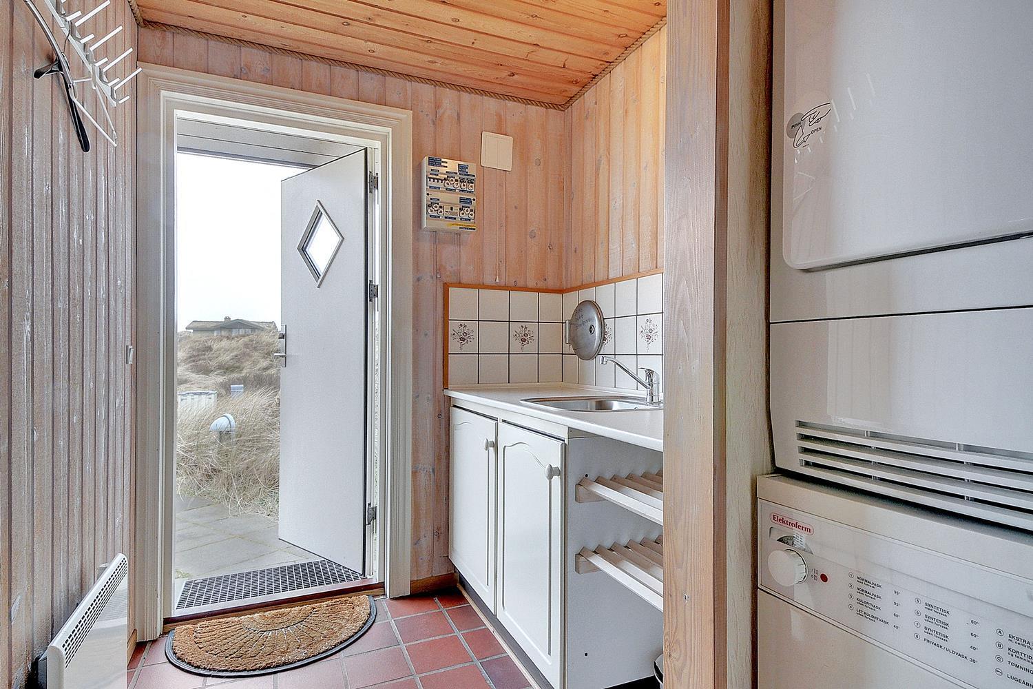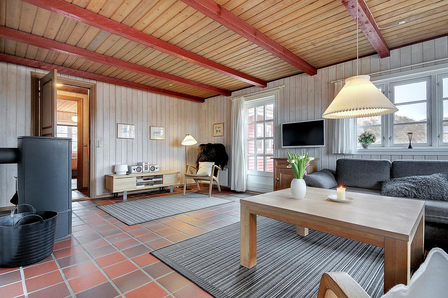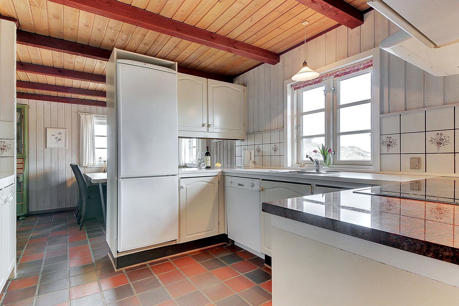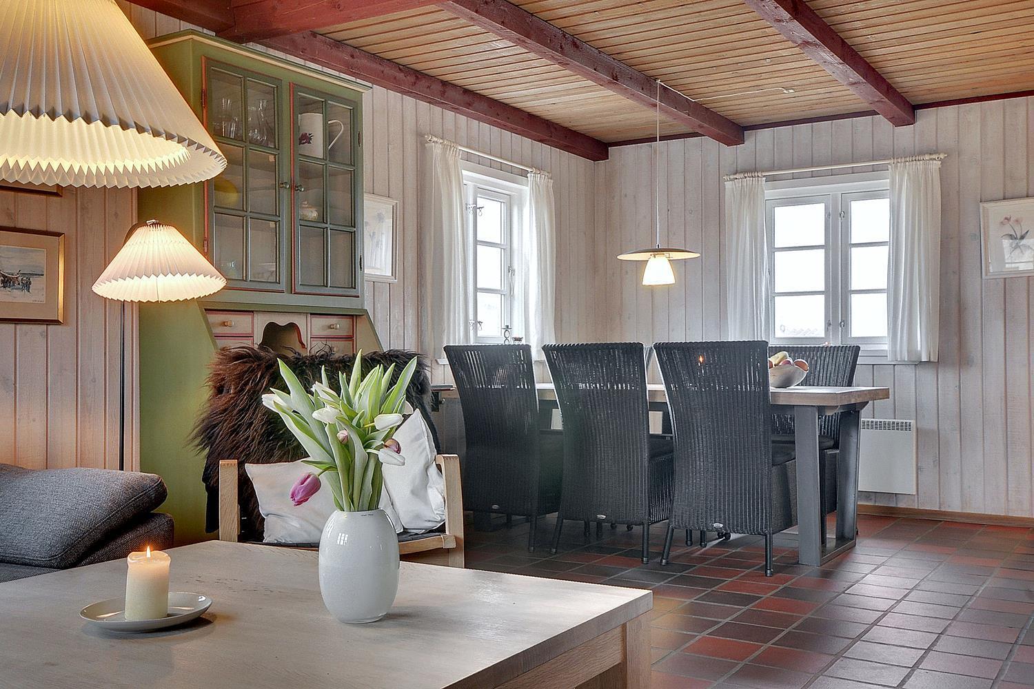 Dejligt, lyst og velindrettet feriehus beliggende på en pragtfuld kuperet klitgrund tæt ved vandet. Huset er løbende blevet renoveret. Stort dejligt badeværelse med sauna. og rummelig stue som ligger i åben forbindelse med køkkenet. Fra stuen er der udgang til skøn terrasse, hvorfra der en fantastisk udsigt ud over klitområdet.