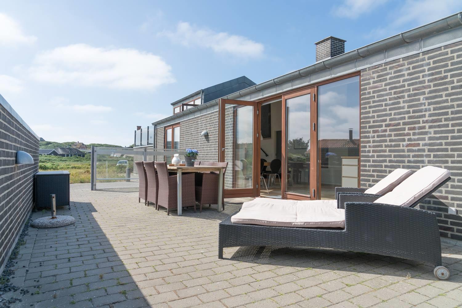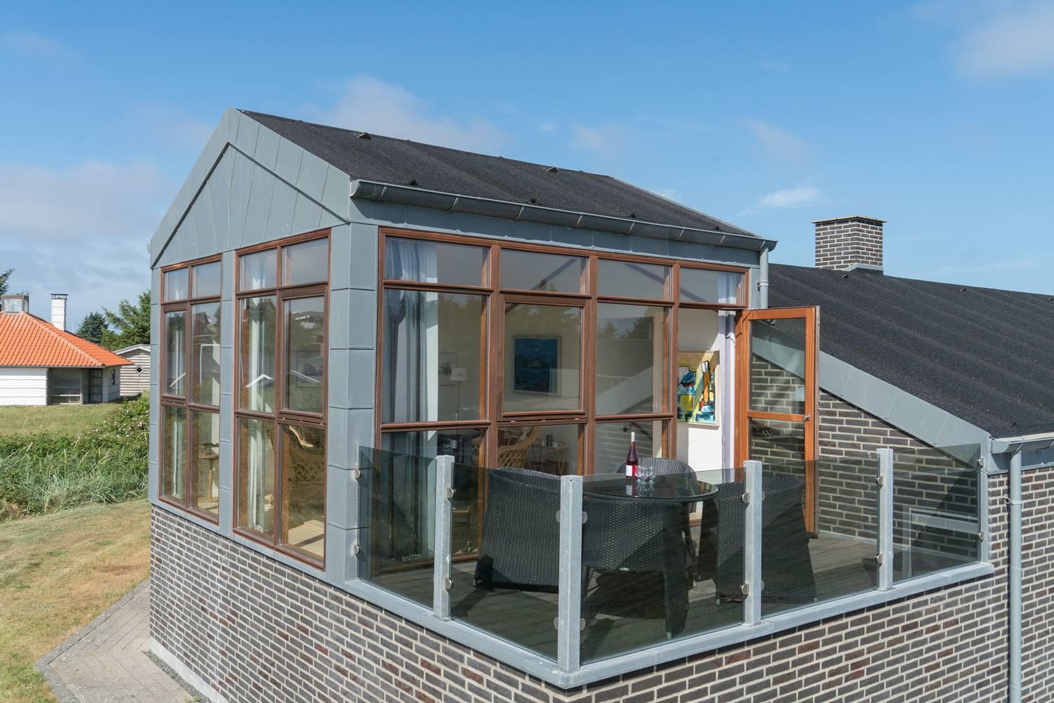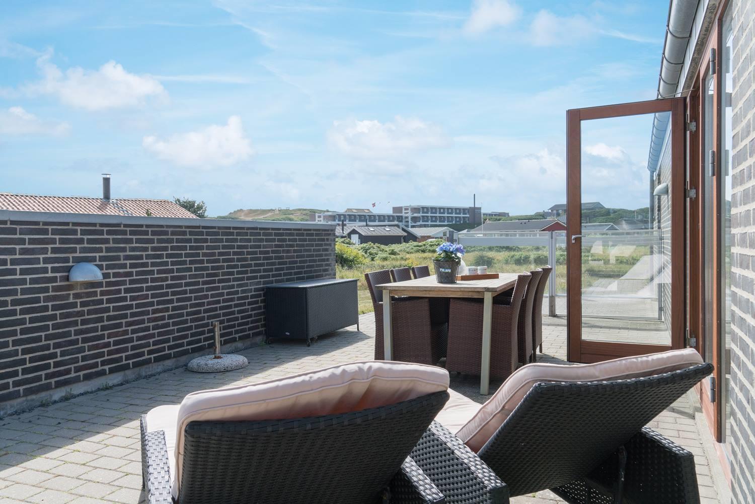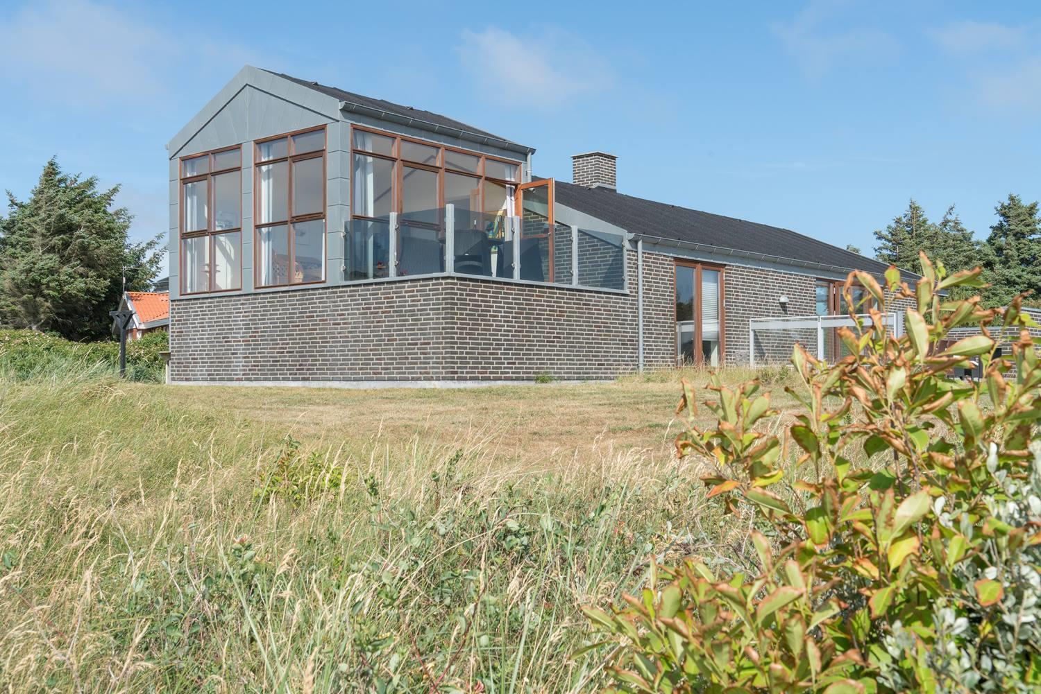 Hyggeligt sommerhus nær hav og by med indhegnet terrasse og flot udsigt i Henne Strand.