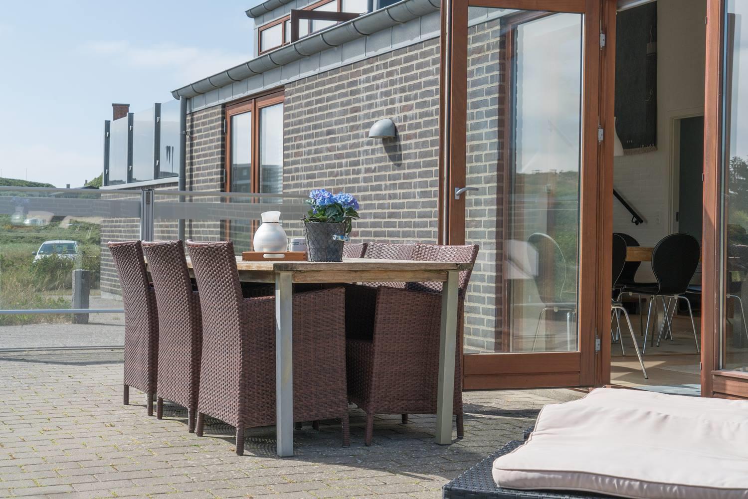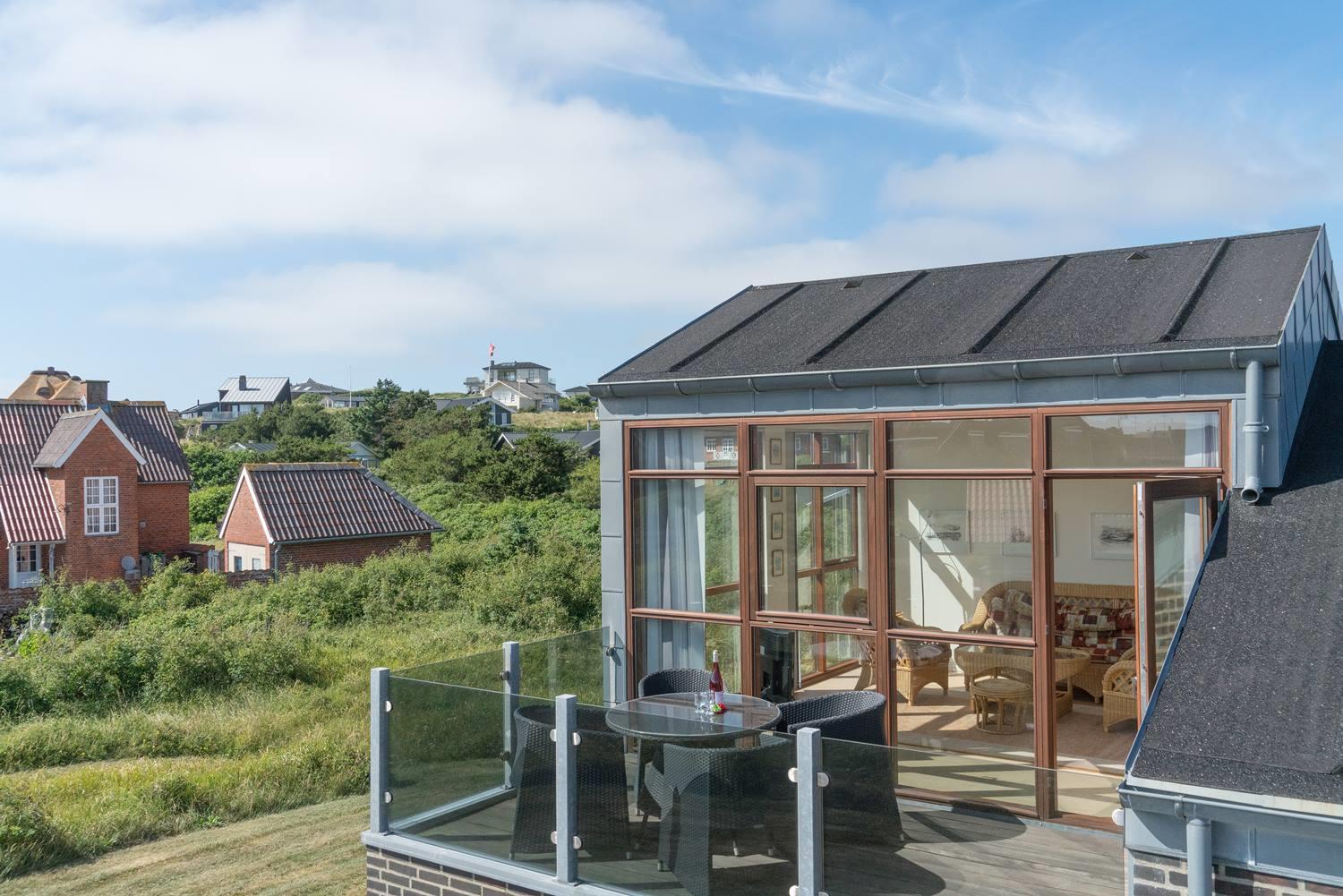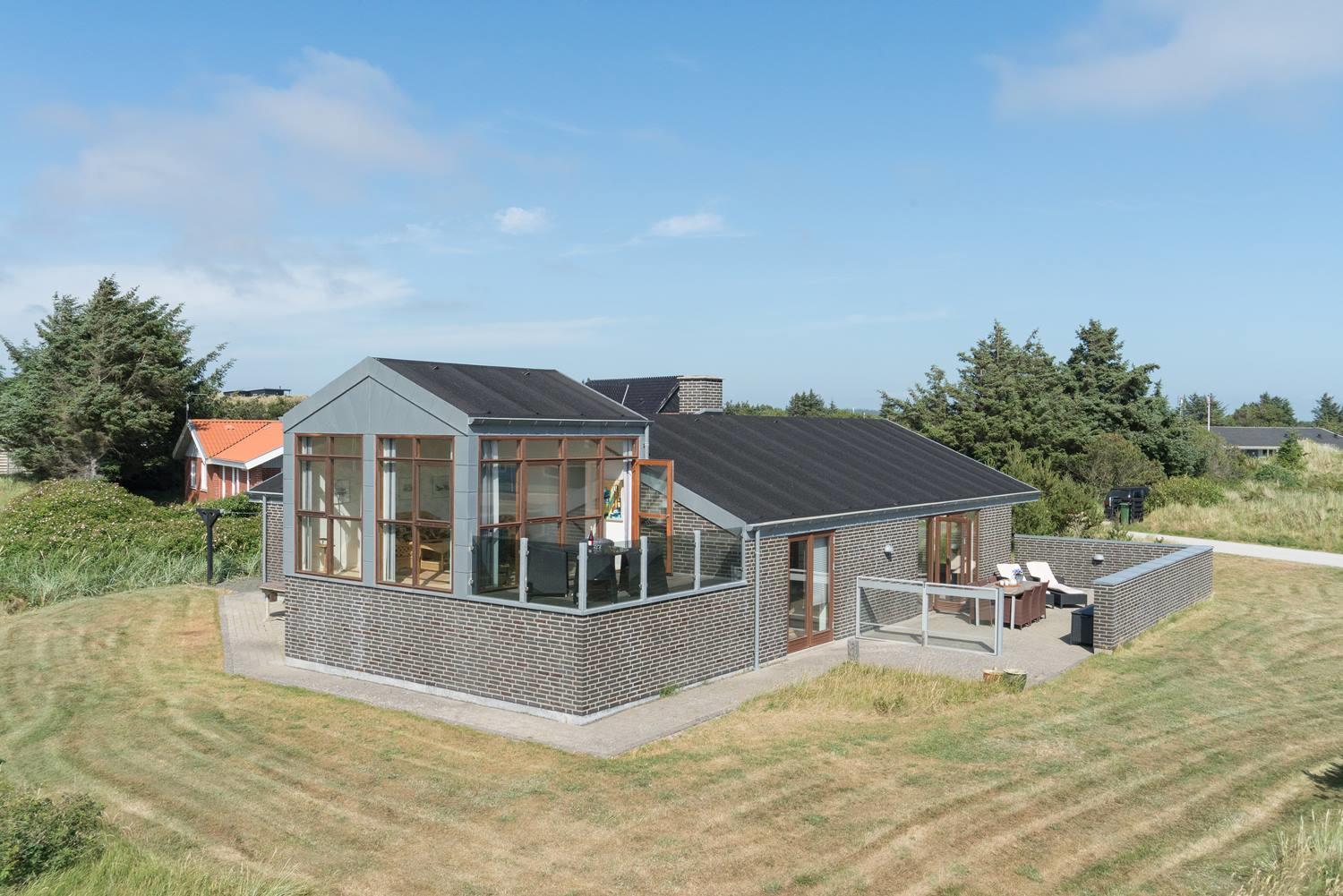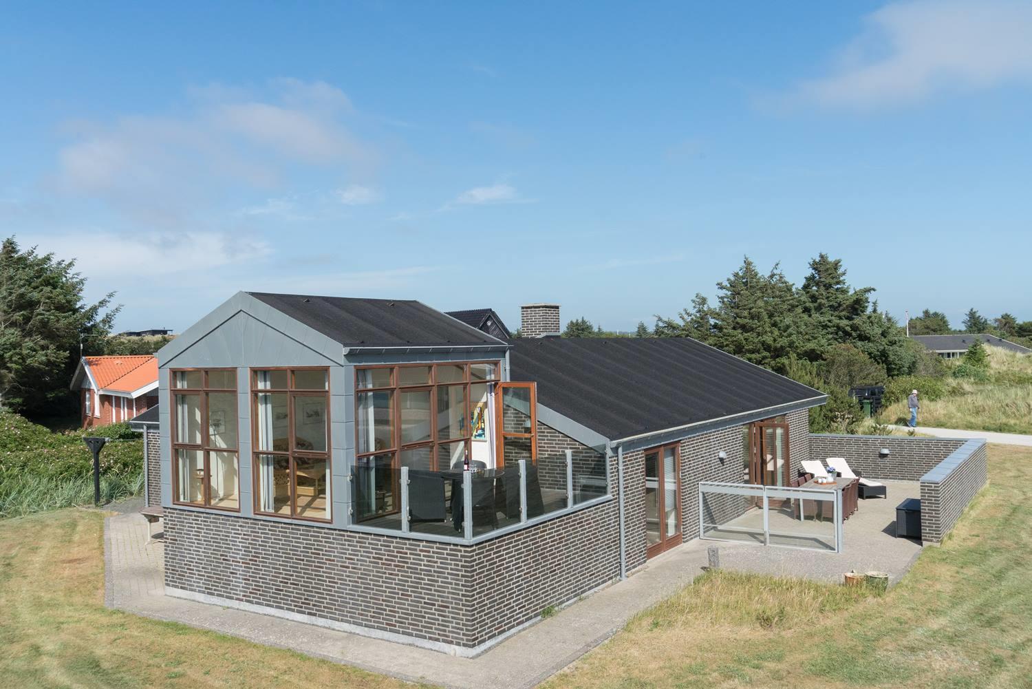 Hyggeligt sommerhus nær hav og by med indhegnet terrasse og flot udsigt i Henne Strand.