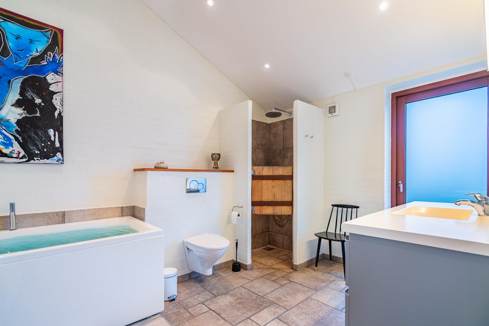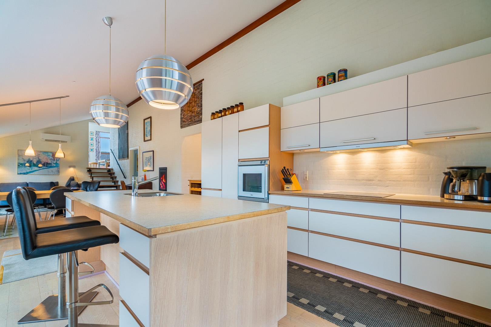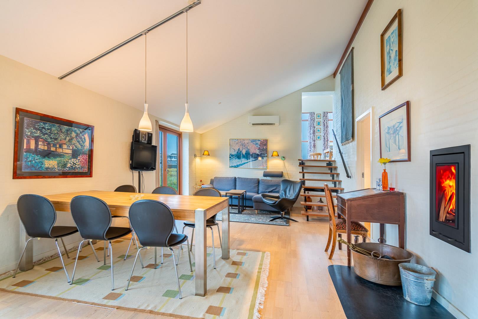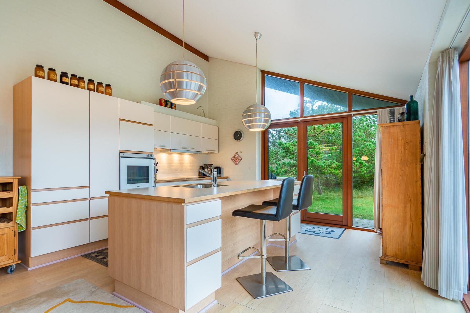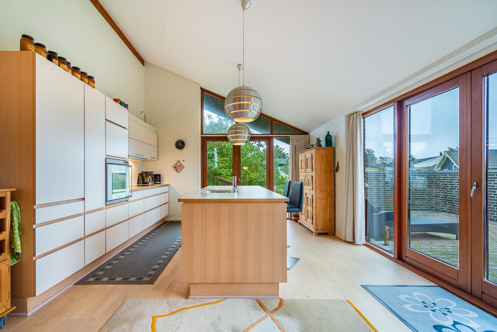 På en skøn naturgrund i roligt område - tæt på by og hav - ligger dette sommerhus, hvor der er lagt vægt på personlig indretning og hvor der er kræset for detaljerne. I sommerhusets flotte badeværelse med gulvvarme, er der opsat badekar. Den lyst indrettede spisestue med brændeovn ligger i åben forbindelse med veludstyret køkken. Fra den hævede stue er der flot udsigt over området og med direkte udgang til sommerhusets indhegnede og læfulde terrasse. Herfra kan den flotte udsigt over området nydes. Sommerhuset har 2 rummelige soverum hvorfra der er direkte udgang til sommerhusets terrasse.