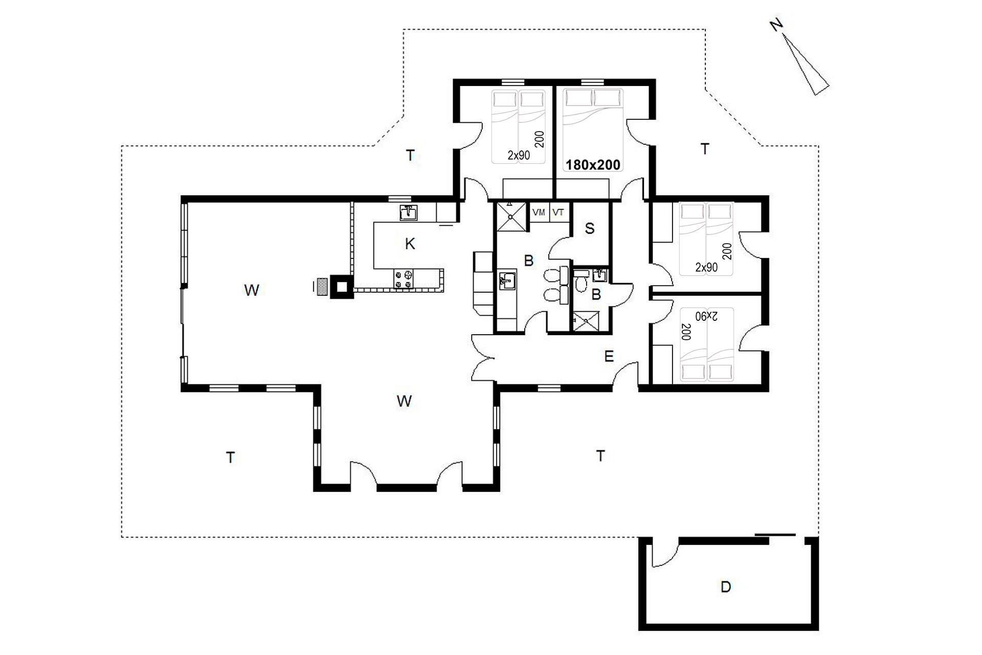 Sengestørrelse: 3 dobbeltsenge med 2 madrasser 90 x 200 cm + 1 dobbeltseng 180 x 200 cm
