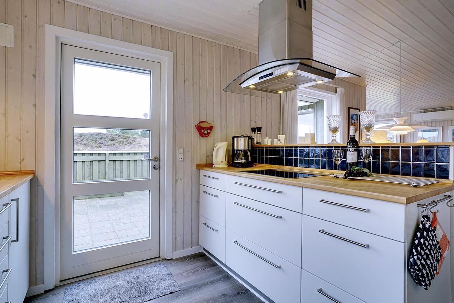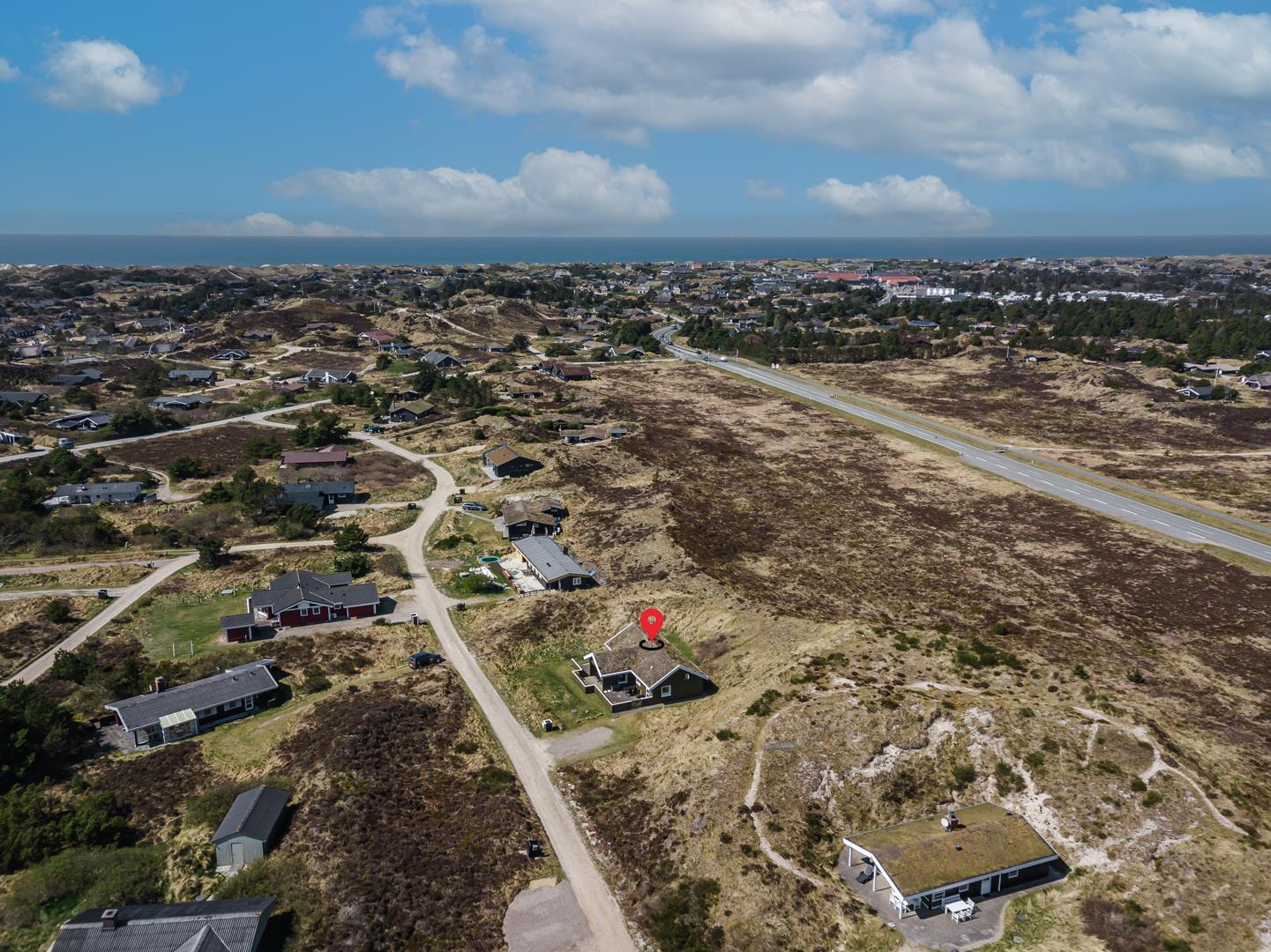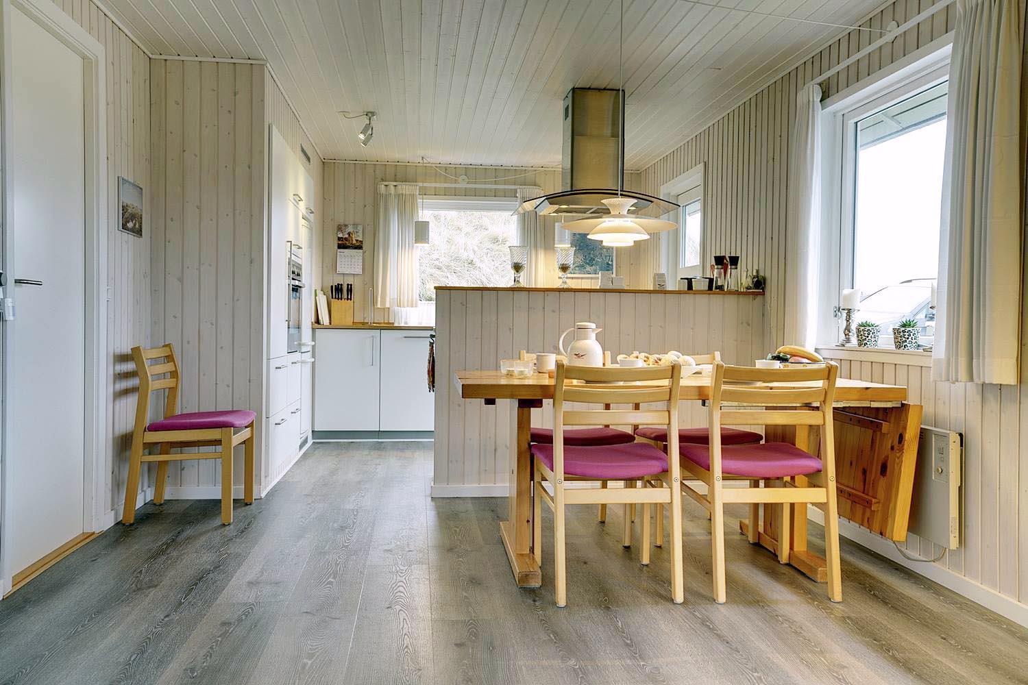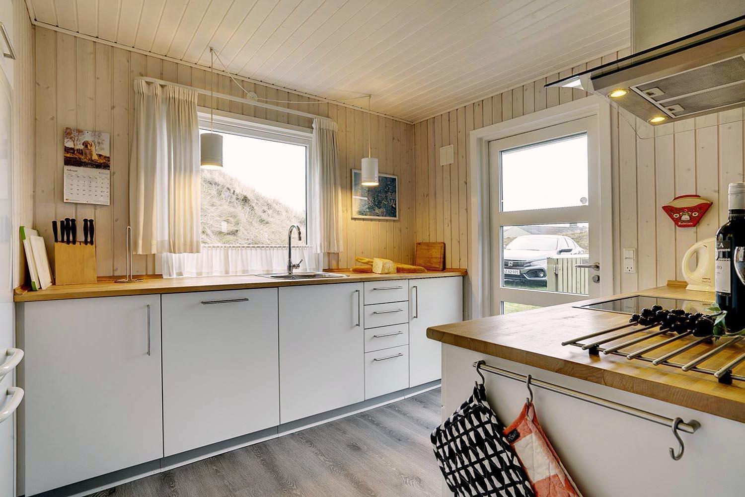 Dejligt lyst og velpasset feriehus, beliggende på en pragtfuld klitgrund i meget rolige omgivelser. Den flotte køkken ligger i åben forbindelse med den dejlige lyse stue med brændeovn og hvorfra der er udgang til pragtfuld og helt lukket terrasse. Stor badeværelse med adgang til sauna. Huset fremtræder overalt lyst og venligt og har en vaskemaskine. Et feriehus hvor rammerne er til stede for en rigtig god ferie - hele året. Alle soverum er indrettet med med gode boxmadrasser.