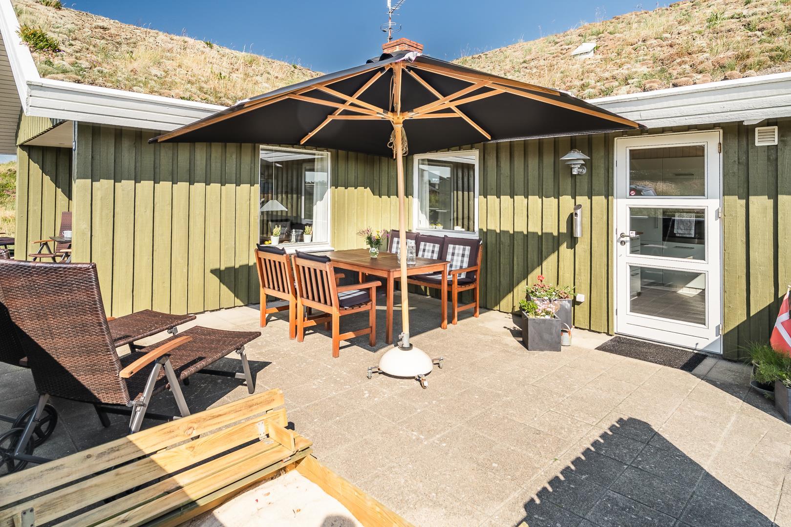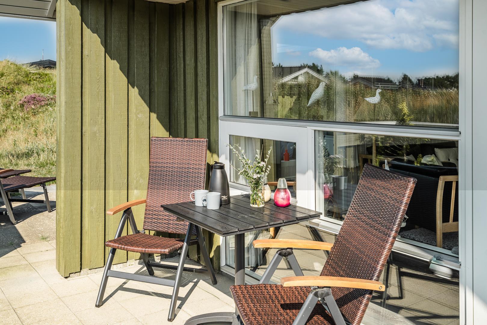 Lyst feriehus med sauna og lukket terrasse