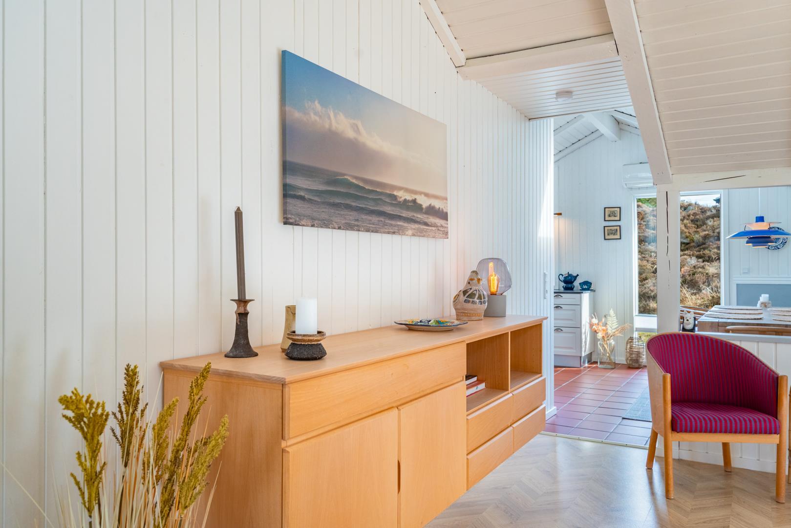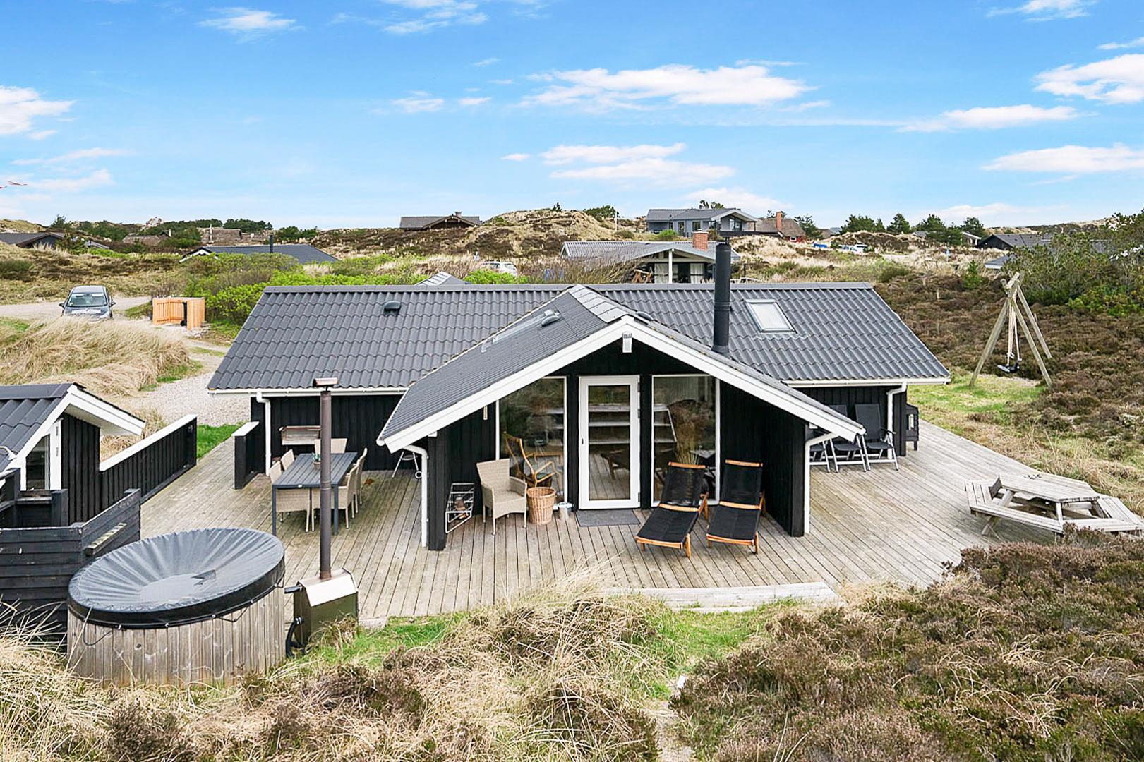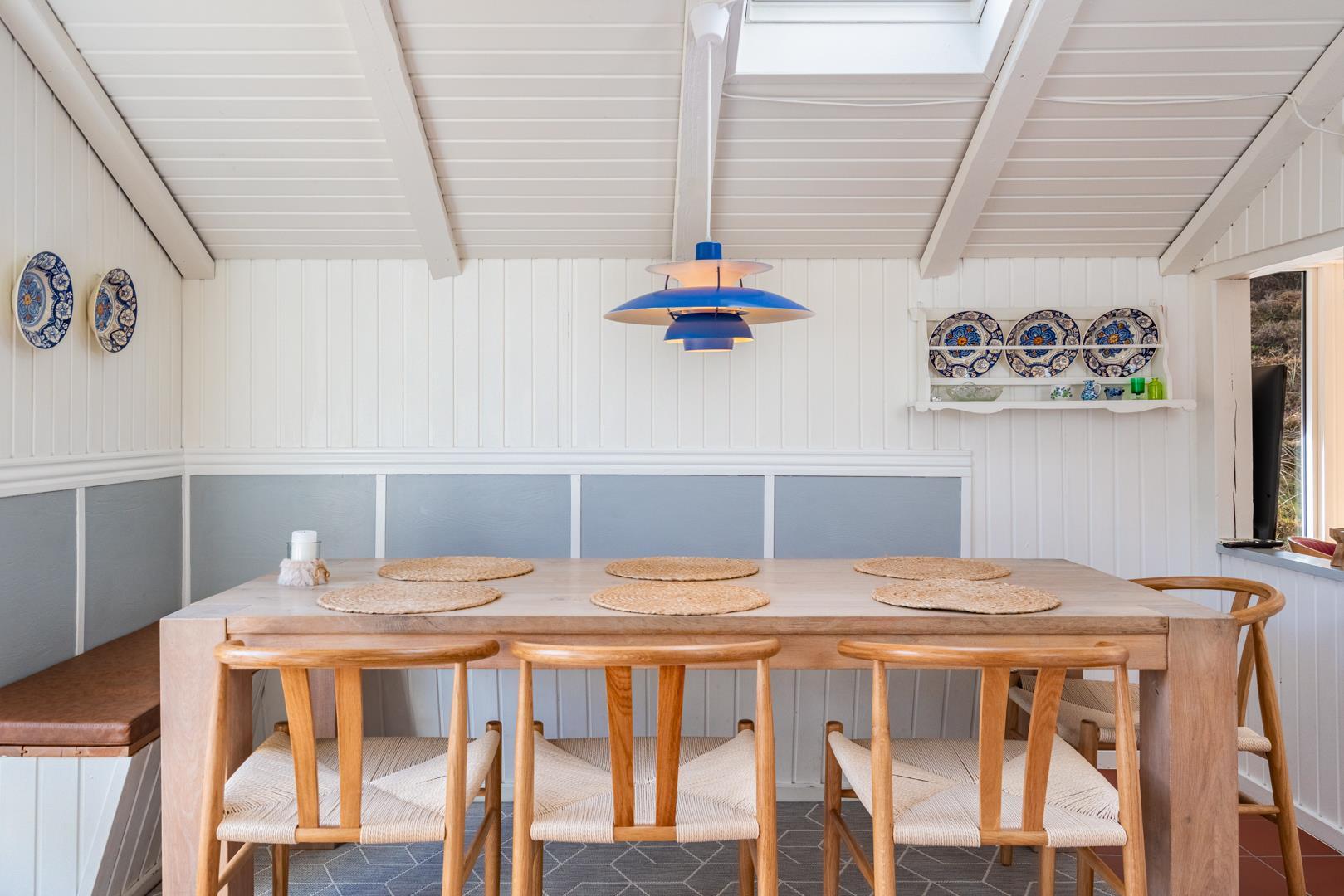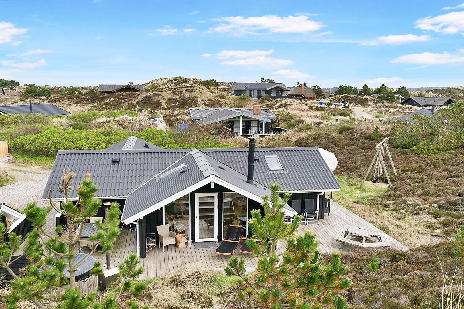 Dette dejlige sommerhus i Henne Strand er en sand perle, placeret for enden af en blind vej og omgivet af lyng, marehalm og klitter, hvilket skaber den perfekte ramme for en afslappende ferieoplevelse.