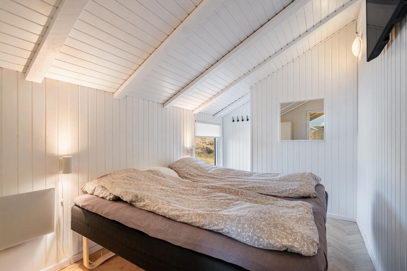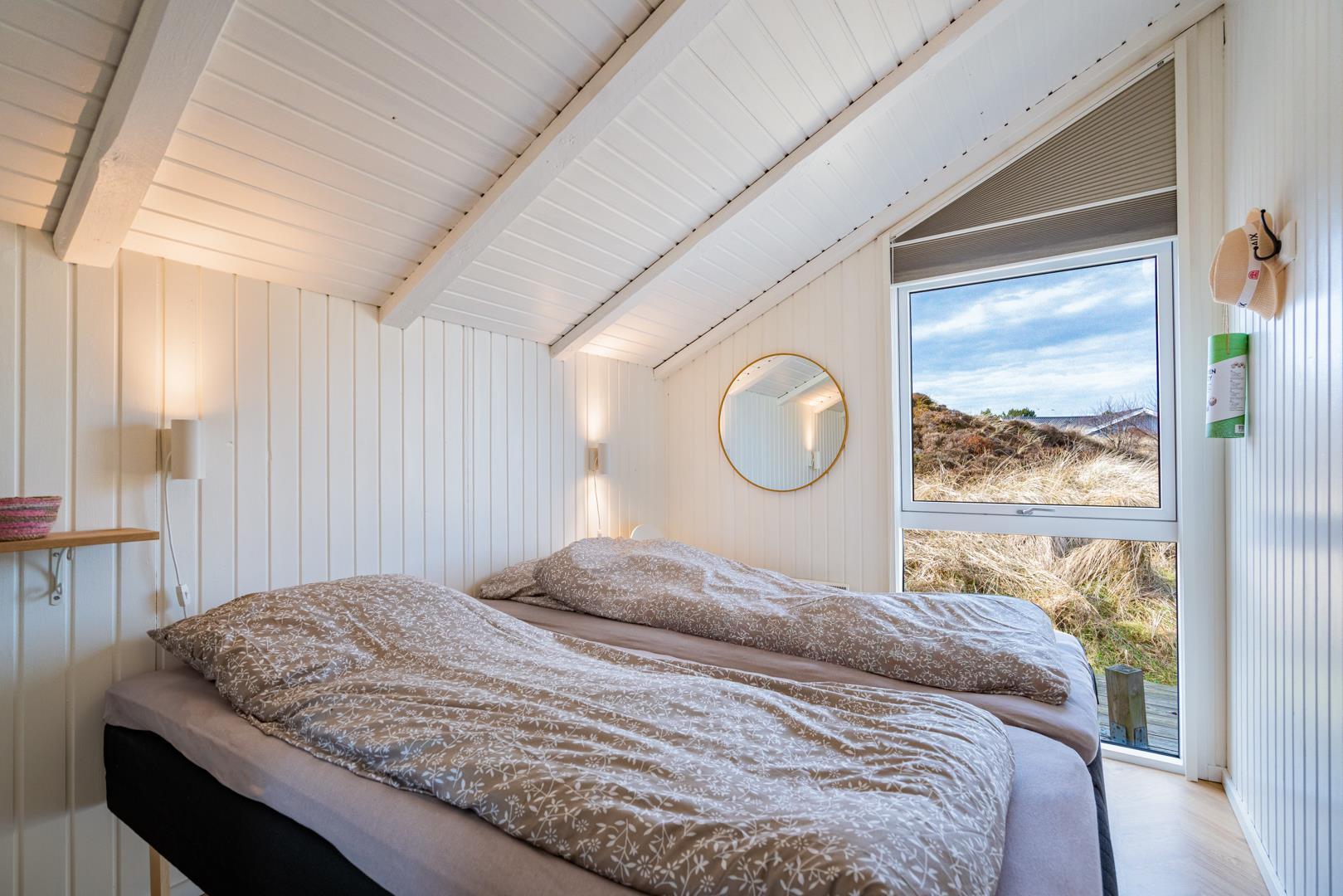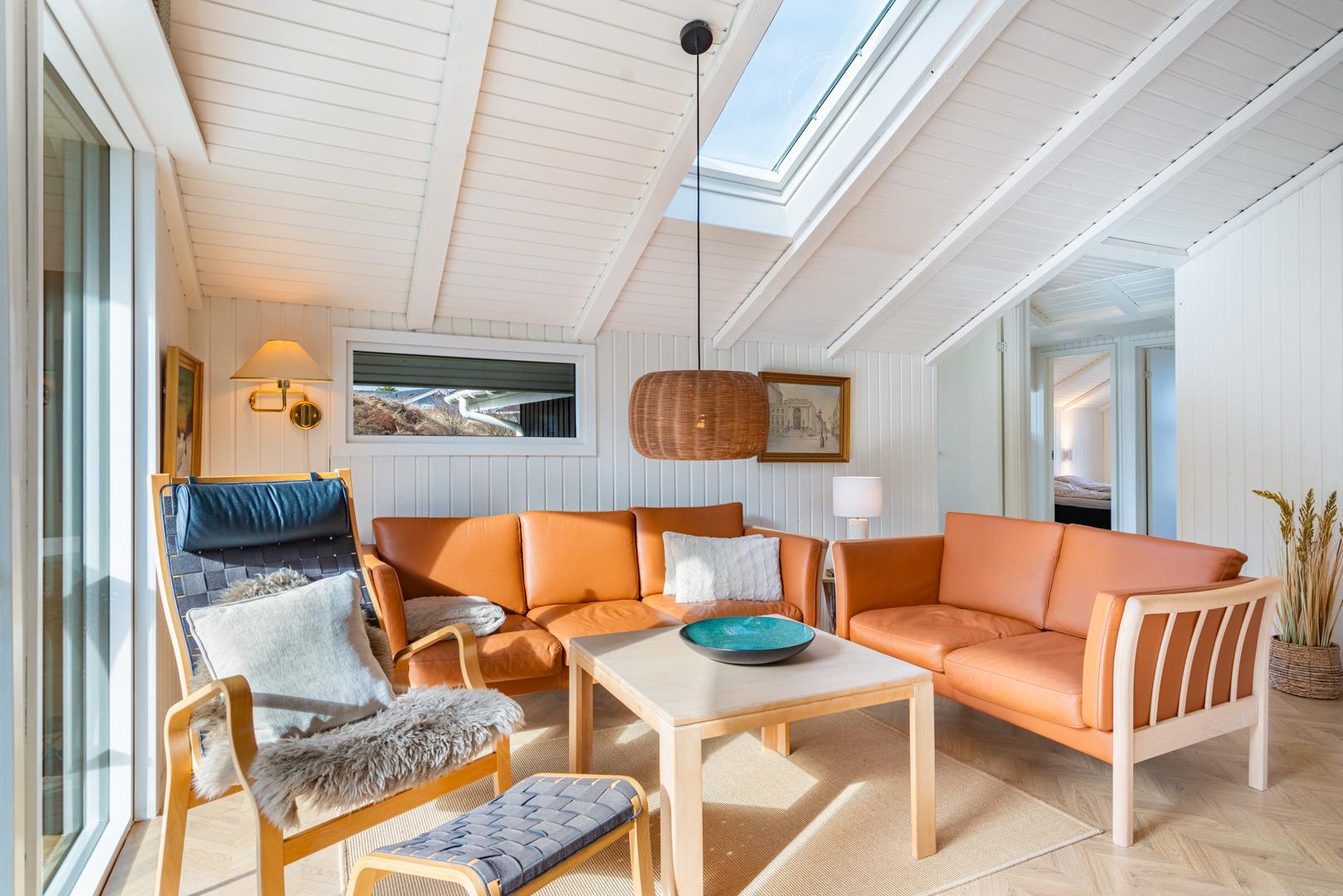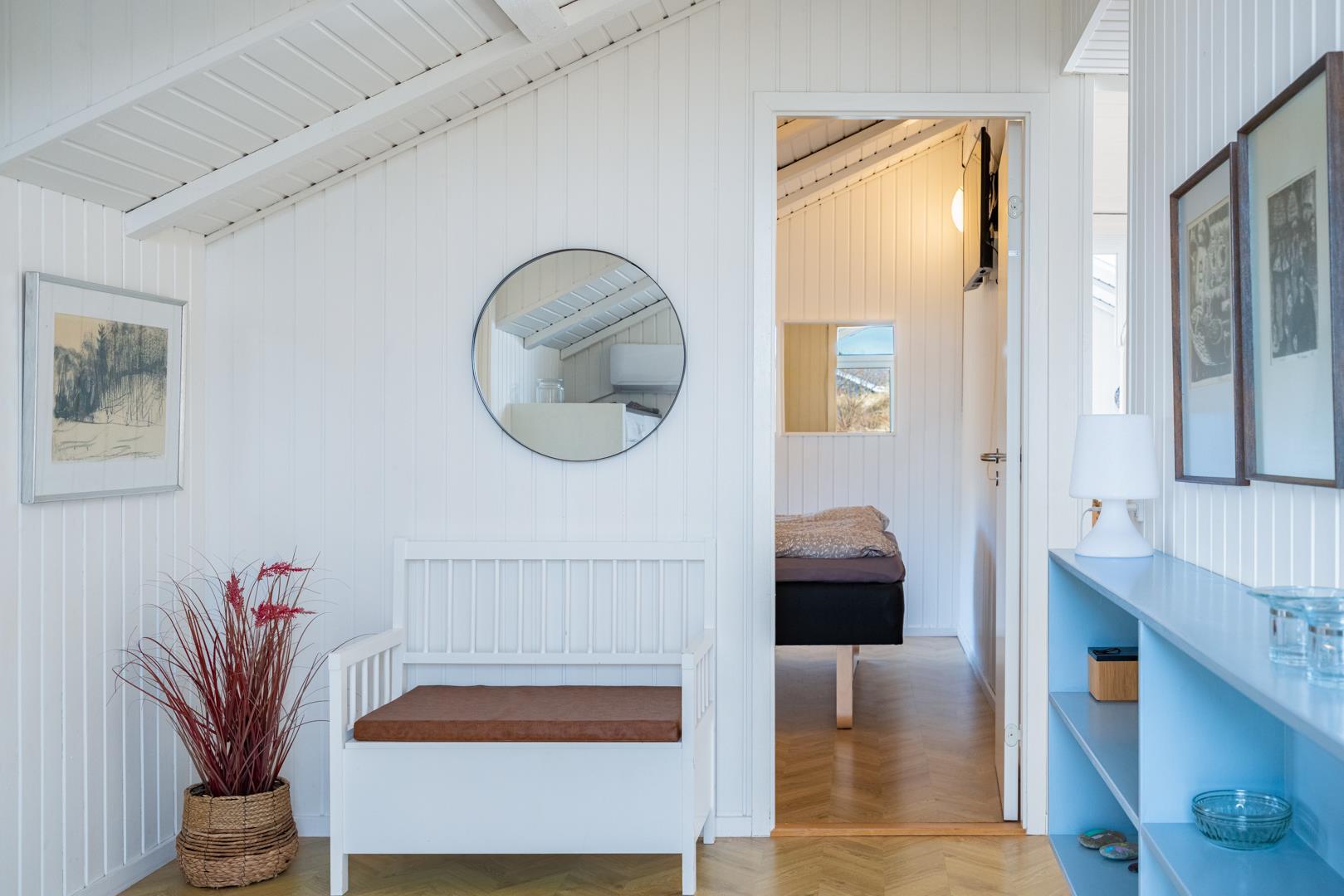 Dette dejlige sommerhus i Henne Strand er en sand perle, placeret for enden af en blind vej og omgivet af lyng, marehalm og klitter, hvilket skaber den perfekte ramme for en afslappende ferieoplevelse.