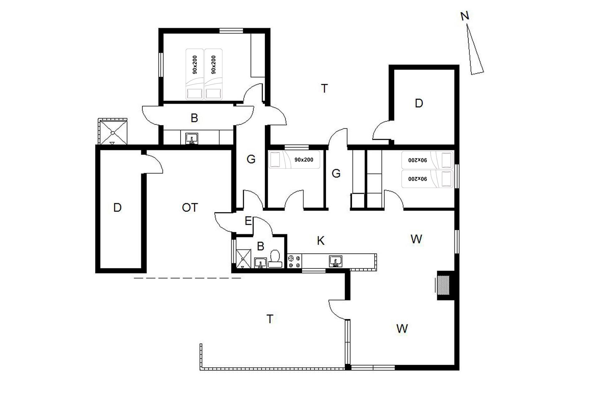 Sengestørrelse: 2 dobbeltsenge med 2 madrasser 90 x 200 cm + 1 enkeltseng 90 x 200 cm.