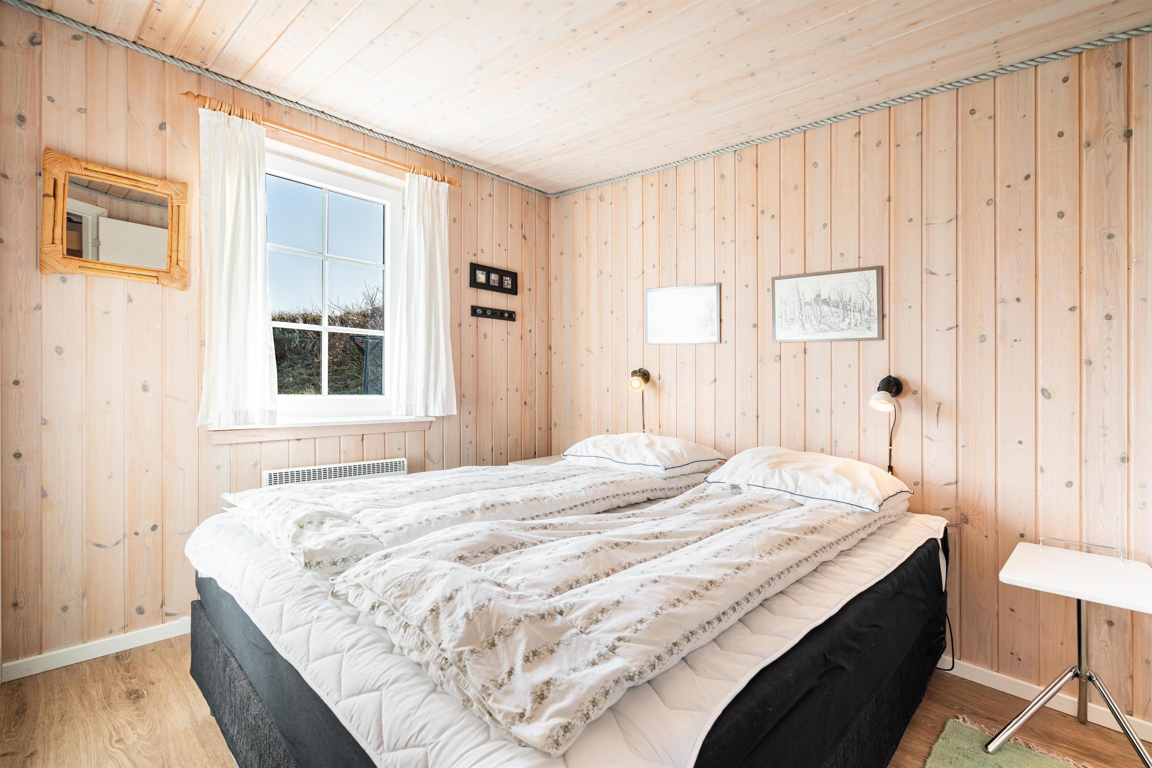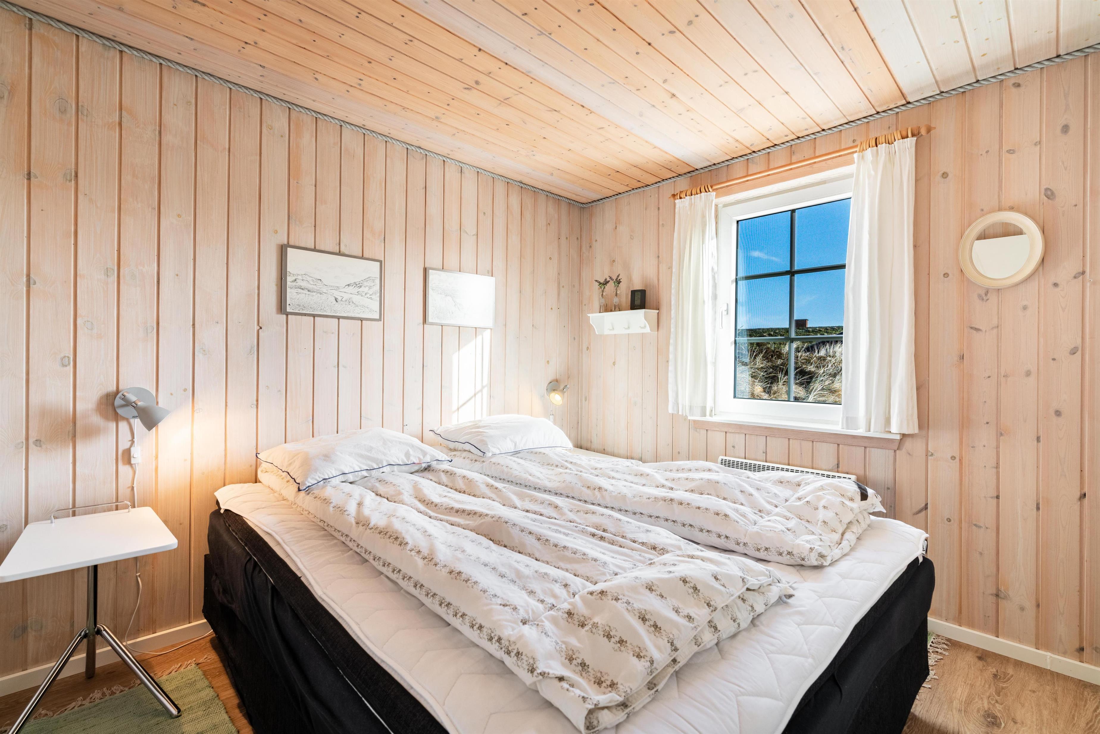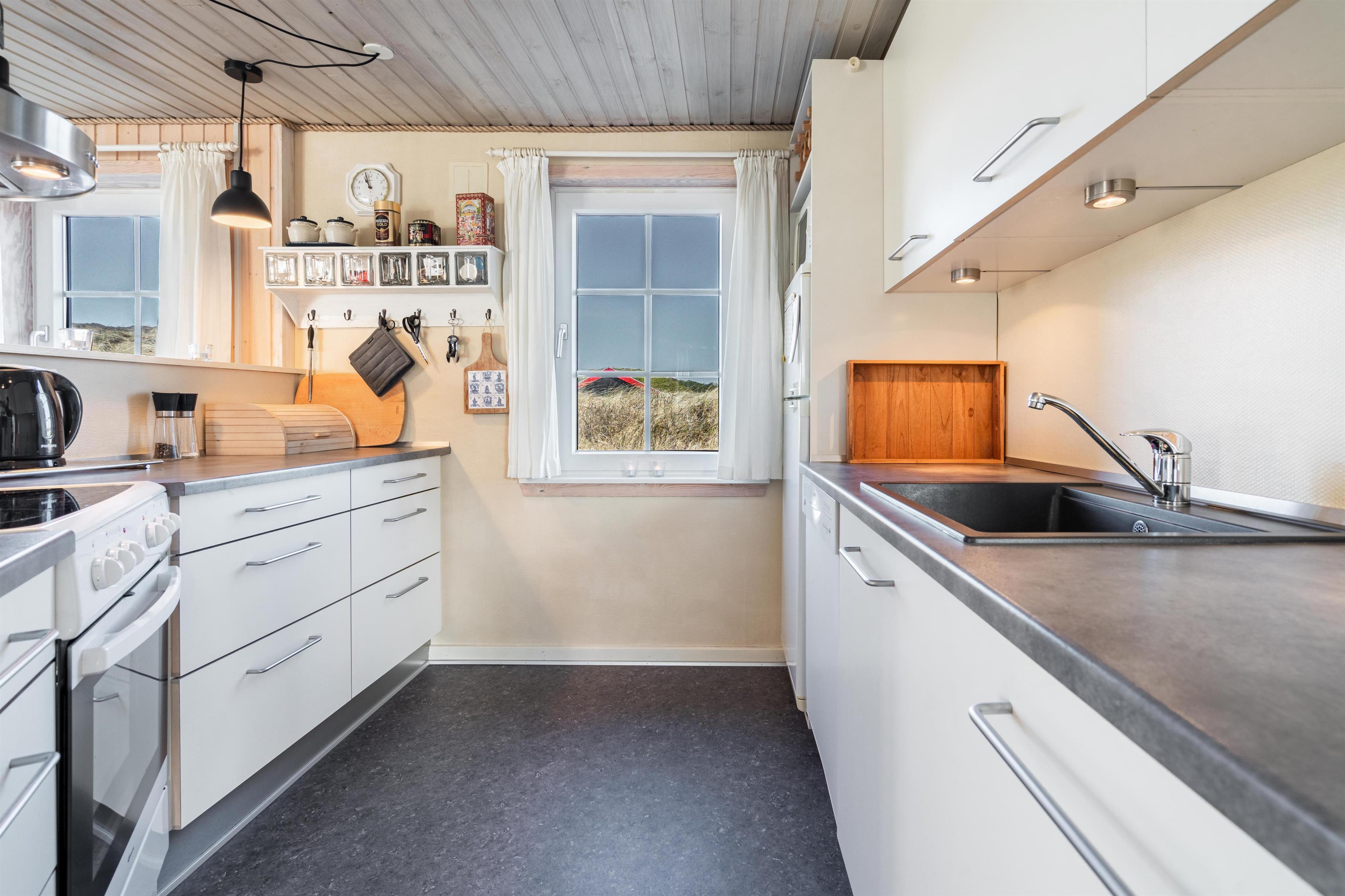 På en pragtfuld, kuperet klitgrund i rolige og flotte omgivelser, ligger dette velpassede og flotte feriehus. Dejlig, lys stue med brændeovn, som er indrettet med pæne kvalitets møbler. Det dejlige køkken ligger i åben forbindelse med stuen. Der er to ugenerede træterrasser, hvorfra solen og den flotte natur kan nydes. Nyt flot badeværelse, her finder I også vaskemaskine og tørretumbler.
