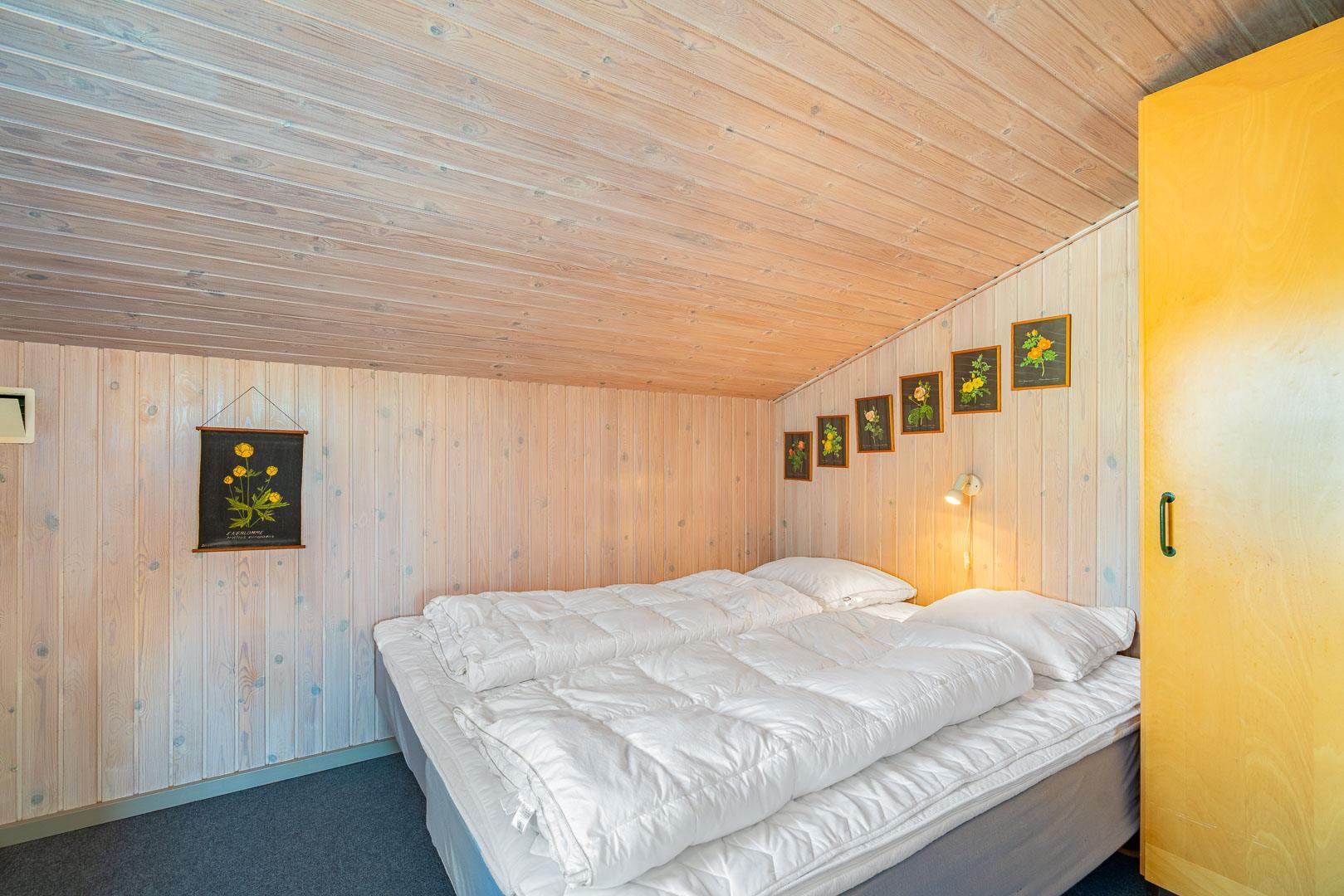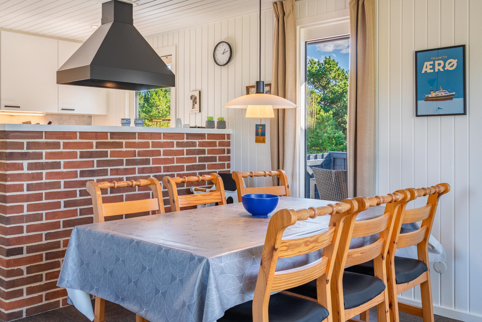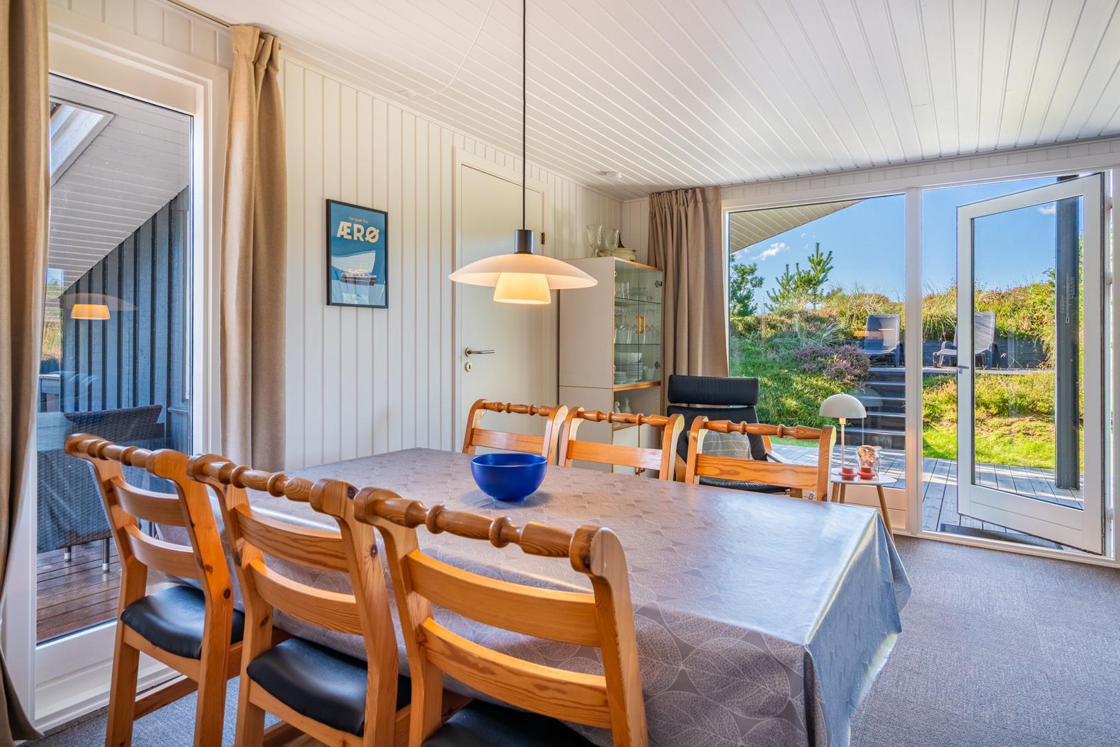 I rolige omgivelser på en flot og kuperet naturgrund ligger dette meget velholdte og løbende renoverede feriehus. Til huset hører stor, lukket samt en mindre overdækket terrasse. Flot nyere badeværelse. Det nye køkken (2025) er kombineret med stuen. Den hyggelige opholdsstue er indrettet med gode møbler. 3 værelser 2 med dobbeltseng og 1 med 2 enkeltsenge. Til børnene findes der barneseng og høj barnestol samt gynge på grunden. Skur til bl.a. cykler.