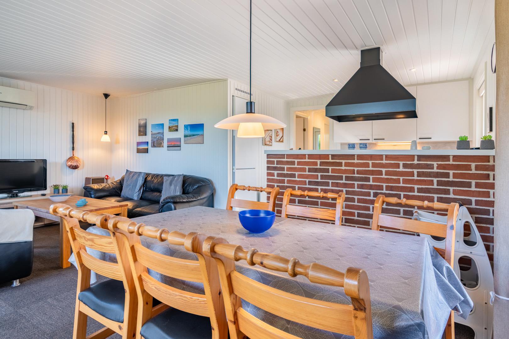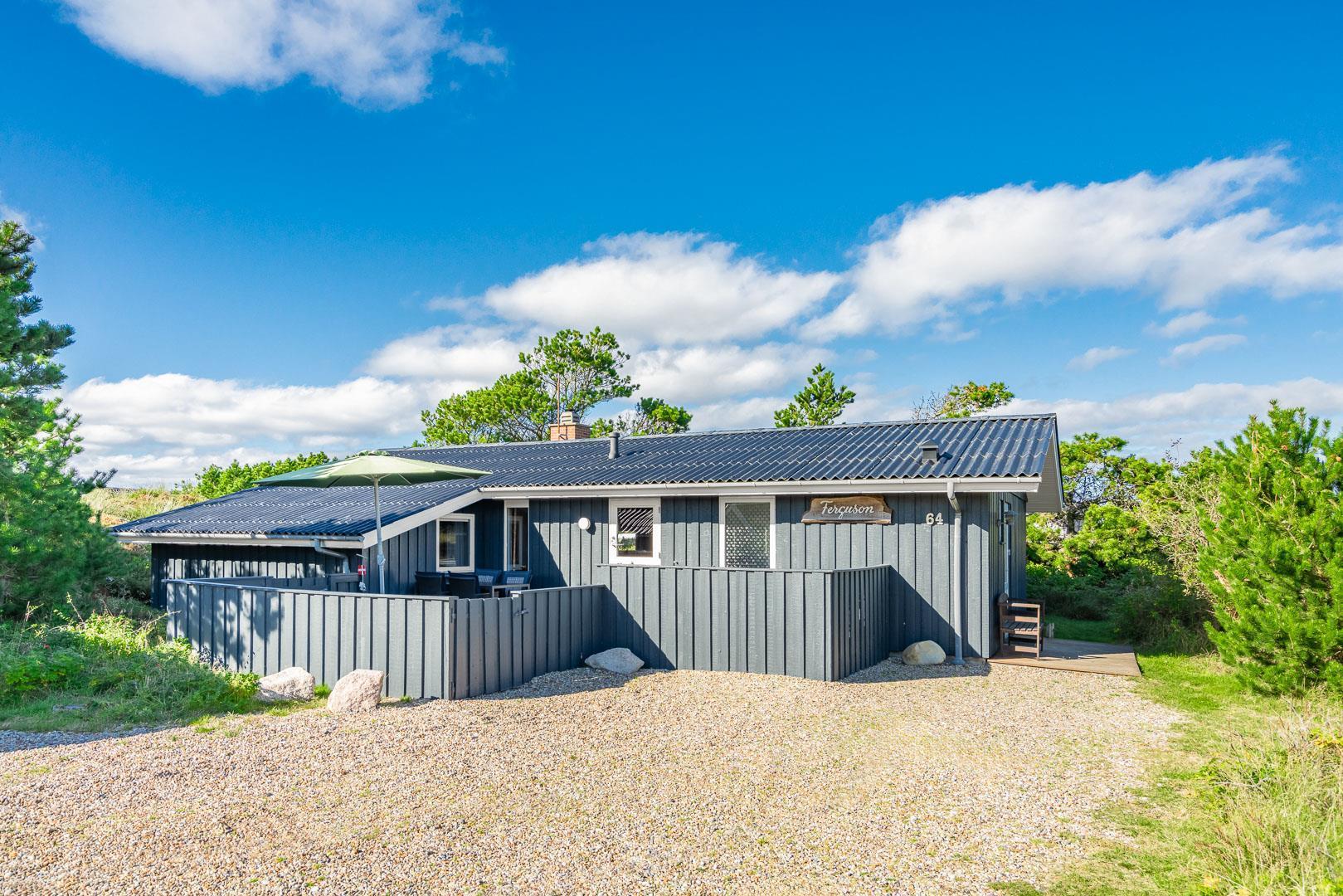 Hyggeligt og velholdt feriehus i Henne Strand med stor lukket terrasse, nyt køkken og børnevenlige faciliteter.